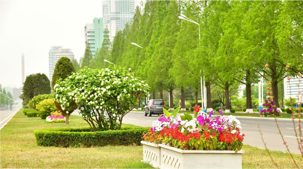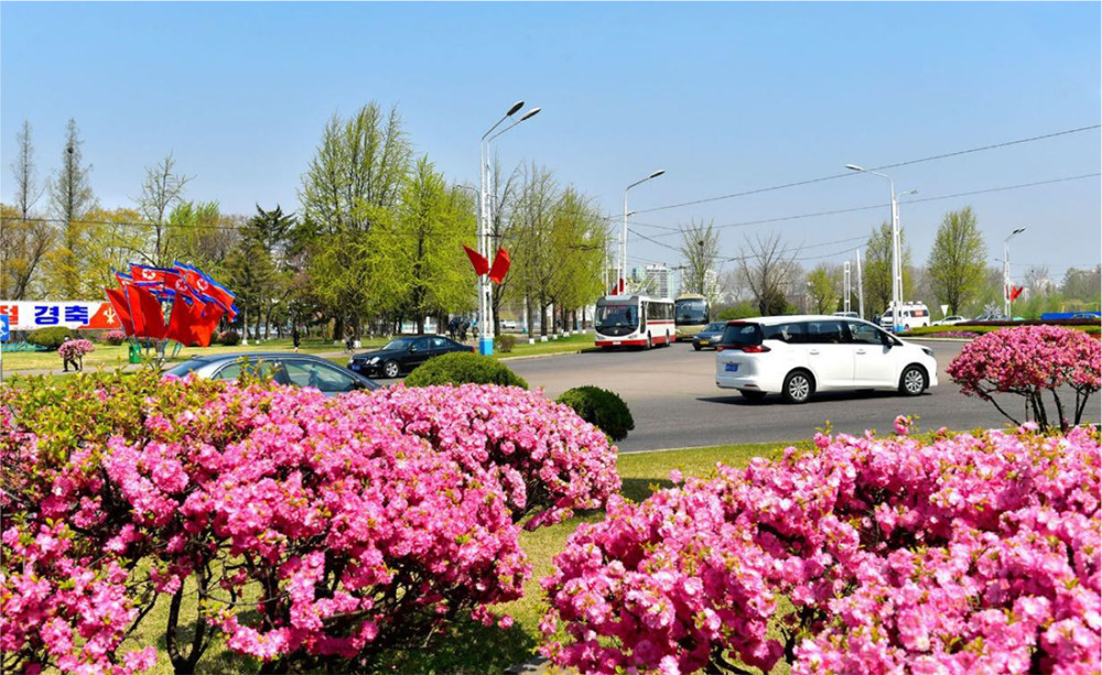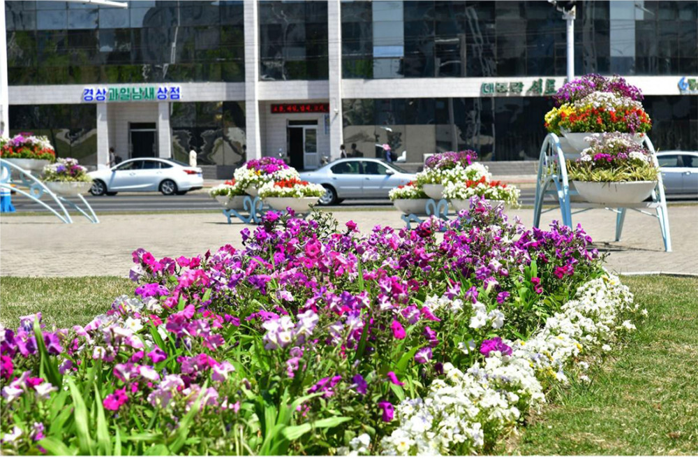 AKP ភ្នំពេញ ថ្ងៃទី១០ ខែឧសភា ឆ្នាំ២០២៥ --ផ្លូវនានានៃរដ្ឋធានីព្យុងយ៉ាង នៃសាធារណរដ្ឋប្រជាមានិតប្រជាធិបតេយ្យកូរ៉េ ត្រូវបានតុបតែងលម្អដោយផ្កាដ៏ស្រស់ស្អាត។
