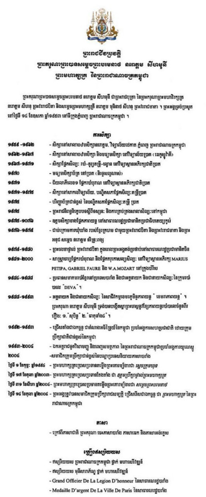 ព្រះរាជជីវប្រវត្តិ និងព្រះរាជសកម្មភាព ព្រះករុណា ព្រះមហាក្សត្រ
