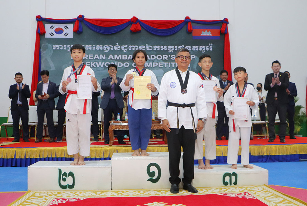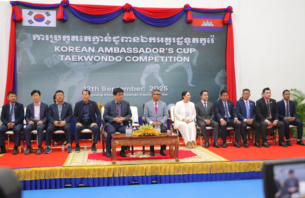 AKP ភ្នំពេញ ថ្ងៃទី១៣ ខែកញ្ញា ឆ្នាំ២០២៥--ការប្រកួតតេក្វាន់ដូពានរង្វាន់ឯកអគ្គរដ្ឋទូតសាធារណរដ្ឋកូរ៉េ ឆ្នាំ២០២៥ (KOREAN AMBASSADOR’S CUP 2025) បានធ្វើឡើងដើម្បីវាស់ស្ទង់កម្រិតបច្ចេកទេស និងសមត្ថភាព ក្នុងការត្រៀមជ្រើសរើសប្រមូលផ្តុំហ្វឹកហាត់ជាមួយក្រុមជម្រើសជាតិគោលដៅឆ្ពោះទៅការប្រកួតកីឡាយុវជនអាស៊ី (Asian Youth Games) ឆ្នាំ២០២៩ ដែលកម្ពុជានឹងធ្វើជាម្ចាស់ផ្ទះ រួមទាំងត្រៀមសម្រាប់ប្រកួតជាលក្ខណៈអន្តរជាតិនានា។