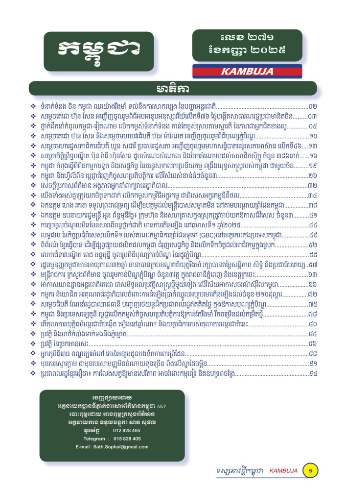 ទស្សនាវដ្តីកម្ពុជាចេញផ្សាយសម្រាប់ «ខែកញ្ញា» ឆ្នាំ២០២៥