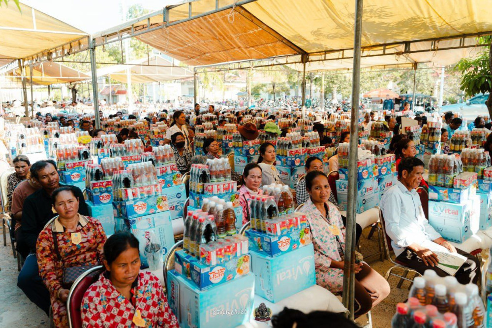 សូមបញ្ជាក់ថាអំណោយរបស់គណៈកម្មាធិការគ្រប់គ្រងប្រព័ន្ធស្បៀងបម្រុងកម្ពុជា ដែលផ្ដល់ជូនដល់ប្រជាពលរដ្ឋដែលរងផលប៉ះពាល់ដោយគ្រោះទឹកជំនន់ នៅស្រុកសន្ទុកគ្រួសារ និងក្រុងស្ទឹងសែនសរុបចំនួន១៣៨២គ្រួសារក្នុងមួយគ្រួសារទទួលបានអង្ករ១បាវ ទឹកសុទ្ធ ១កេស មី ១កេសទឹកស៊ីអ៊ីវ ១យួរ ទឹកត្រី ១យួរនិងត្រីខ១យួរ៕