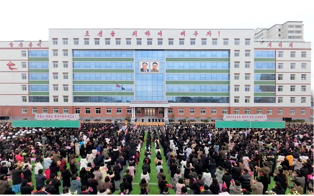 AKP ភ្នំពេញ ថ្ងៃទី០៨ ខែមករា ឆ្នាំ២០២៦-- រូបថតបង្ហាញពីវិទ្យាល័យ Jonjin Senior Middle School នៅក្នុងសង្កាត់ Rangang ក្រុងព្យុងយ៉ាង រាជធានីនៃប្រទេសកូរ៉េ។ នេះគឺជាសាលារួមបញ្ចូលគ្នា ដែលប្រទេសនេះទើបនឹងសាងសង់ឡើងជាគំរូមួយ ដែលជាផ្នែកមួយនៃកិច្ចខិតខំប្រឹងប្រែងបន្តរបស់ខ្លួន ដើម្បីលើកកម្ពស់ការអភិវឌ្ឍវិស័យអប់រំ។ ជាមួយនឹងទំហំជាន់សរុបជាង 19 300 ម៉ែត្រការ៉េ សាលានេះមានថ្នាក់មត្តេយ្យ សាលាបឋមសិក្សា អនុវិទ្យាល័យ និងមធ្យមសិក្សាជាន់ខ្ពស់។ កូរ៉េខាងជើងអនុវត្តការអប់រំជាសកលដោយឥតគិតថ្លៃរយៈពេល 12 ឆ្នាំ រួមទាំងវគ្គសិក្សាមត្តេយ្យសិក្សាមួយឆ្នាំផងដែរ។