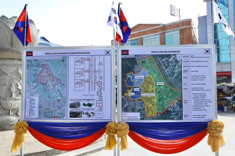 គម្រោងអភិវឌ្ឍន៍ប្រព័ន្ធចម្រោះទឹកកខ្វក់ក្នុងក្រុងតាខ្មៅ (Sewerage System Development in Ta Khmau Town Project) សម្រេចបាន ស្មើនឹង២០,២៧% ហើយ