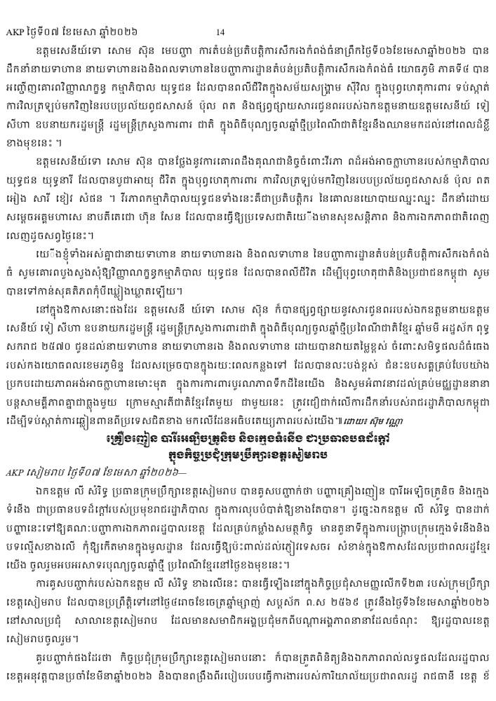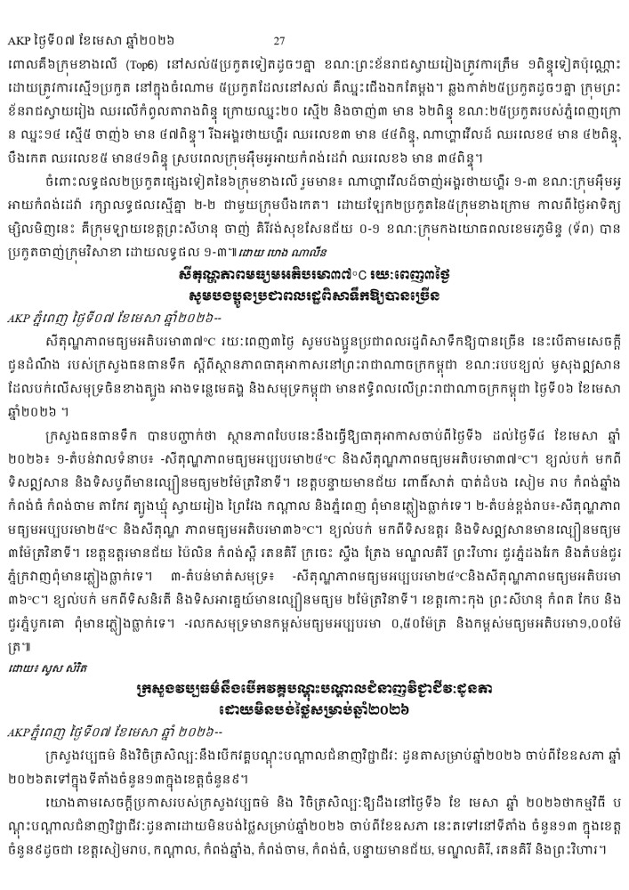AKP ភ្នំពេញ ថ្ងៃទី០៧ ខែមេសា ឆ្នាំ២០២៦ -