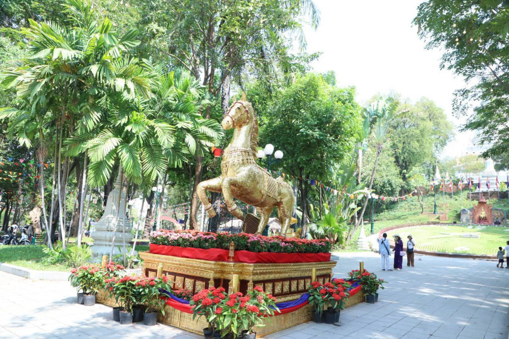 ទាក់ទងនឹងការរៀបចំតុបតែងលម្អសោភណភាពក្នុងព្រឹត្ដិការណ៍ “នគរសង្ក្រាន្ដ” និងពិធីបុណ្យចូលឆ្នាំថ្មីប្រពៃណីជាតិខ្មែរនេះដែរ មន្ត្រីជំនាញ នៃ មន្ទីរវប្បធម៌ និងចិត្រសិល្បៈបានឱ្យដឹងថា រូបសំណាកសេះពណ៌មាសដ៏ធំអង់អាចក្លាហានតំណាងឱ្យ ឆ្នាំ មមី ធ្វើពីឬស្សី មានកម្ពស់ ៣,៨៩ ម៉ែត្រ រចនាឡើងក្រោមស្នាដៃជាង ដ៏ចំណាន ត្រូវបានក្រុមការងាររបស់រដ្ឋបាលរាជធានីភ្នំពេញ ដែលបានដំឡើងរួចរាល់នៅលើបល្ល័ង្គកម្ពស់ ៣ម៉ែត្រ ទទឹង ៣ម៉ែត្រ ខាងមុខ នាឡិកាធំ នៃរមណីយដ្ឋានវប្បធម៌ ប្រវត្តិសាស្ត្រ វត្តភ្នំ ដើម្បីរង់ចាំទទួលស្វាគមន៍បងប្អូន មកទស្សនា នៅទីនេះ។
