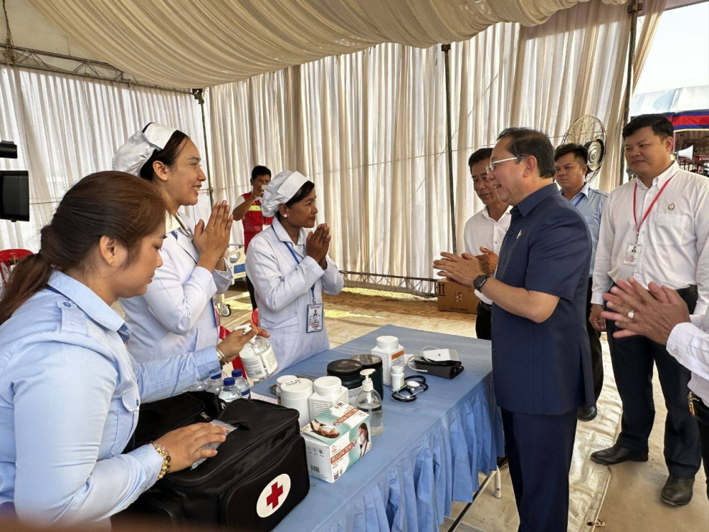AKP ភ្នំពេញ ថ្ងៃទី១១ ខែមេសា ឆ្នាំ២០២៦-- ក្នុងឱកាសចូលរួមក្នុងពិធីបើកការដ្ឋានសាងសង់គម្រោងគ្រប់គ្រងធនធានទឹកចម្រុះហ្វូណនតេជោ កំណាត់ទី២ ឯកឧត្តមសាស្រាចារ្យ ឈាង រ៉ា រដ្ឋមន្រ្តីក្រសួងសុខាភិបាល នាថ្ងៃទី១១ ខែមេសា ឆ្នាំ២០២៦ បានឆ្លៀតចុះពិនិត្យការបម្រើសេវាសុខាភិបាល និងសំណេះសំណាល សួរសុខទុក្ខដល់ក្រុមគ្រូពេទ្យដែលកំពុងប្រចាំការ និងកំពុងបម្រើសេវាសុខាភិបាលជូនប្រជាពលរដ្ឋ ប្រកបដោយការទទួលខុសត្រូវខ្ពស់។