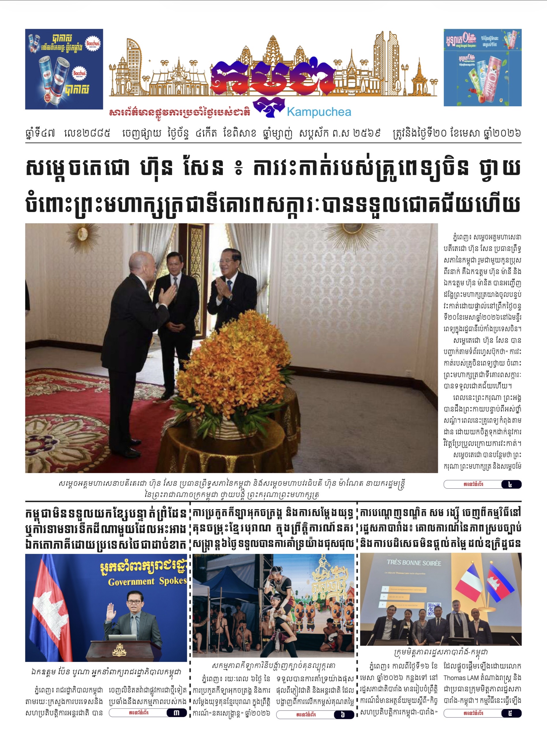 សូមបញ្ជាក់ថា ច្បាប់ស្តីពីការប្រឆាំងការឆបោកតាមប្រព័ន្ធបច្ចេកវិទ្យាបានចូលជាធរមានកាលពីម៉ោង ០០:០១ ថ្ងៃទី០៧ ខែមេសា ឆ្នាំ២០២៦ ក្រោយការចុះហត្ថលេខាដោយសម្តេចអគ្គមហាសេនាបតីតេជោ ហ៊ុន សែន ប្រមុខរដ្ឋស្តីទី នៅថ្ងៃទី០៦ ខែមេសា ឆ្នាំ២០២៦។