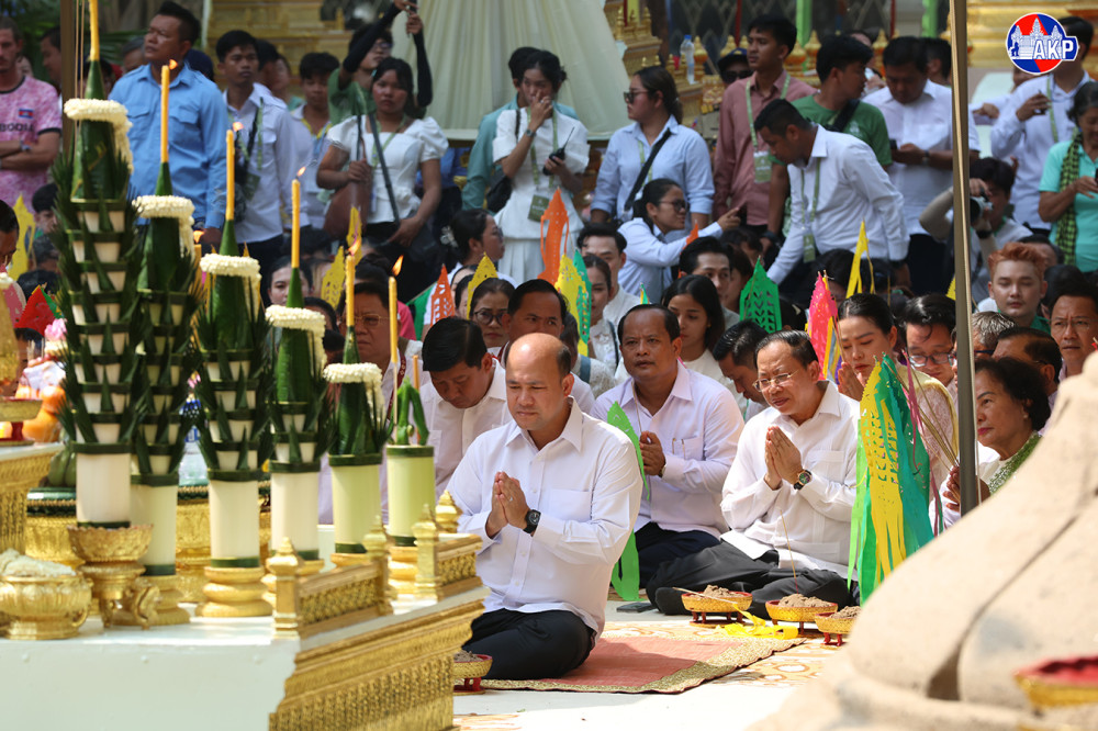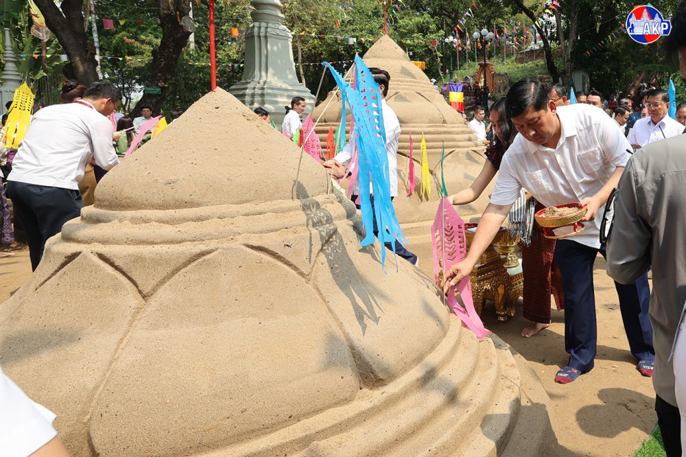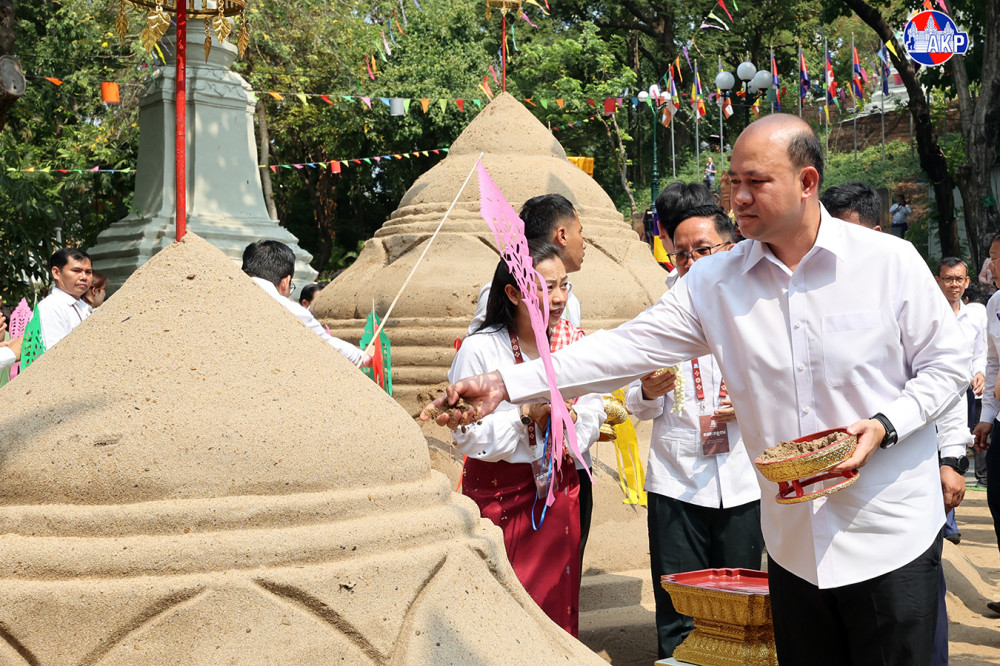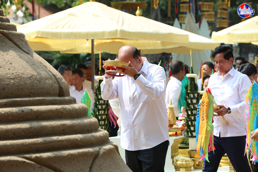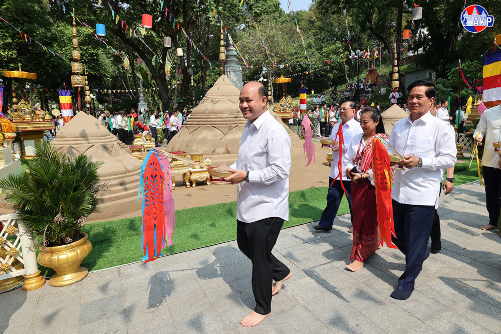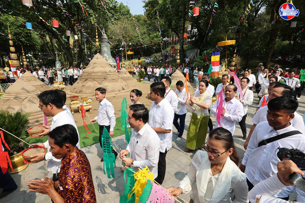 ឯកឧត្តមឧបនាយករដ្ឋមន្ត្រី ហ៊ុន ម៉ានី រដ្ឋមន្ត្រីក្រសួងមុខងារសាធារណៈ និងជាប្រធានសហភាពសហព័ន្ធយុវជនកម្ពុជា (ស.ស.យ.ក.) អញ្ជើញជាធិបតី ក្នុងពិធីវេរភត្តប្រគេនព្រះសង្ឃ និងវាលុកចេតិយ (ពូនភ្នំខ្សាច់) ថ្ងៃទី២ នៃពិធីបុណ្យចូលឆ្នាំខ្មែរ ត្រូវជាថ្ងៃ វីរៈវ័នបត នៅបរិវេណរមណីដ្ឋានប្រវត្តិសាស្ត្រ វត្តភ្នំ នាព្រឹកថ្ងៃទី១៥ ខែមេសា ឆ្នាំ២០២៦។