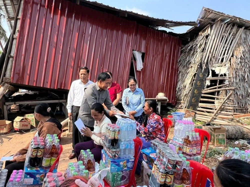 AKP តាកែវ ថ្ងៃទី១៧ ខែមេសា ឆ្នាំ២០២៦--ដើម្បីជួយសម្រួលដល់ការលំបាក និងសង្គ្រោះបន្ទាន់ ដល់ប្រជាពលរដ្ឋរងគ្រោះដោយខ្យល់កន្ត្រាក់ចំនួន៨គ្រួសារ ដែលស្ថិតនៅក្នុងភូមិណងស្រាយ ភូមិត្រពាំងកប្បាស និងភូមិតាគាំ ស្រុកត្រាំកក់ ខេត្តតាកែវ។លោក កេត ម៉ៅ អភិបាលនៃគណៈអភិបាលស្រុកត្រាំកក់ និងជាប្រធានកិត្តិយសអនុសាខាកាកបាទក្រហមកម្ពុជាស្រុកត្រាំកក់ រួមនឹងមន្ត្រីអនុសាខា និងអាជ្ញាធរមូលដ្ឋានឃុំ-ភូមិ បានអញ្ជើញចុះសួរសុខទុក្ខ និងនាំយកអំណោយមនុស្សធម៌កាកបាទក្រហមកម្ពុជា ចែកជូនប្រជាពលរដ្ឋរងផលប៉ះពាល់ដោយសារខ្យល់កន្ត្រាក់។ពិធីនេះរៀបចំឡើងនៅភូមិណងស្រាយឃុំតាភេមស្រុកត្រាំកក់ខេត្តតាកែវ កាលពីព្រឹកថ្ងៃព្រហស្បតិ៍១៤ រោច ខែចេត្រ ឆ្នាំមមី អដ្ឋស័កព.ស២៥៦៩ ត្រូវនឹងថ្ងៃទី១៦ ខែមេសា ឆ្នាំ២០២៦។