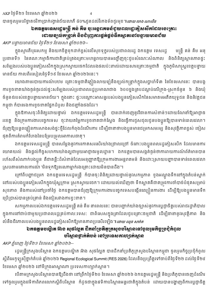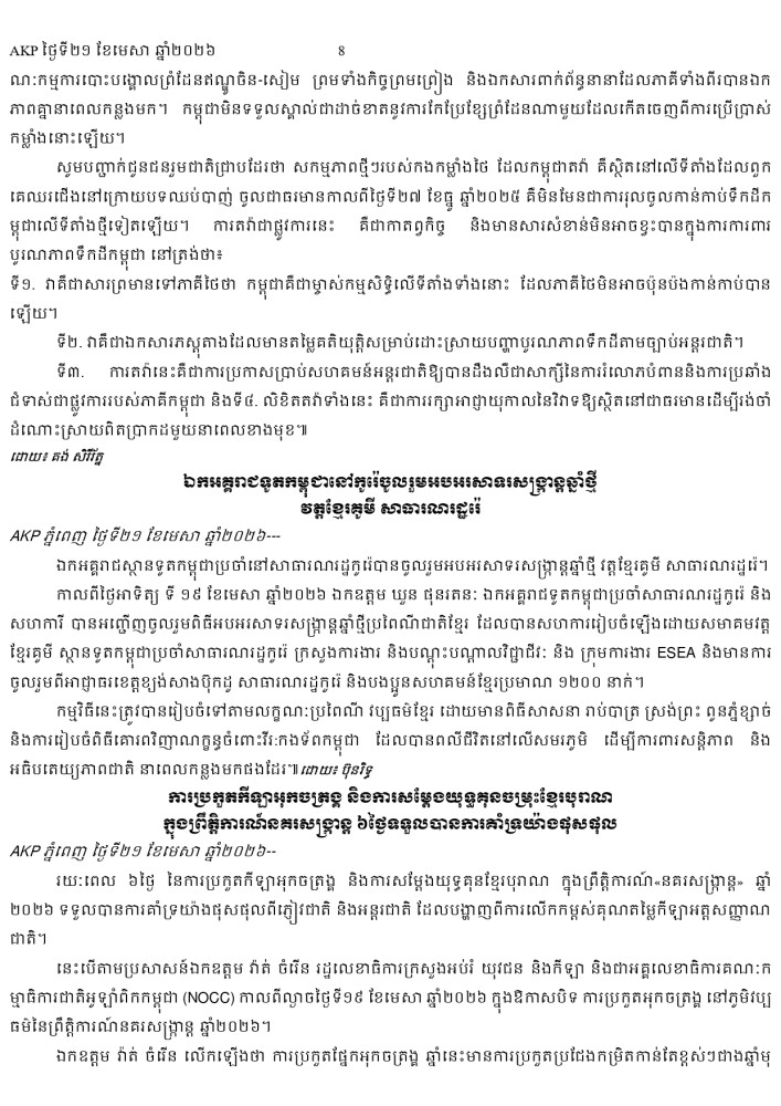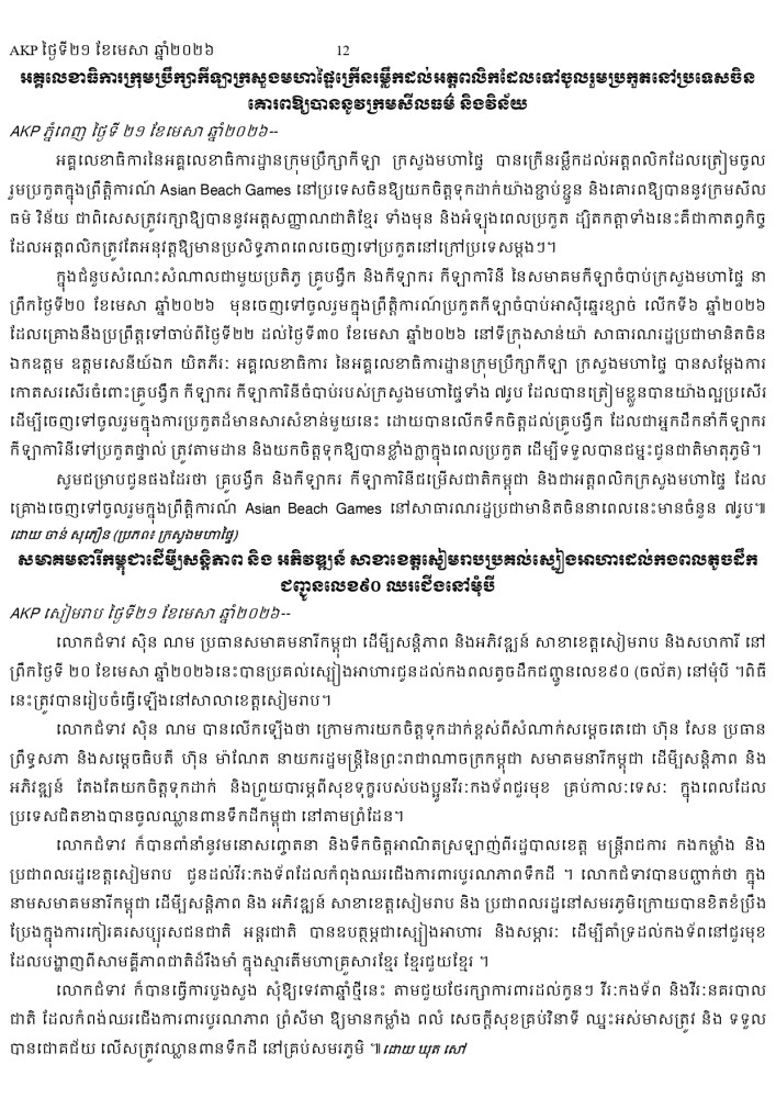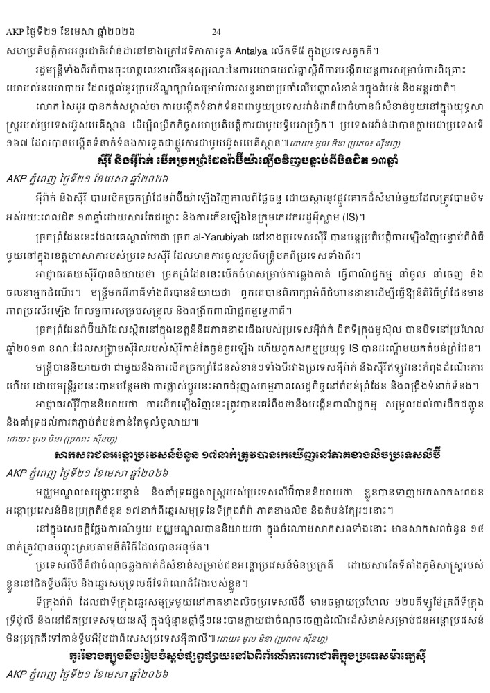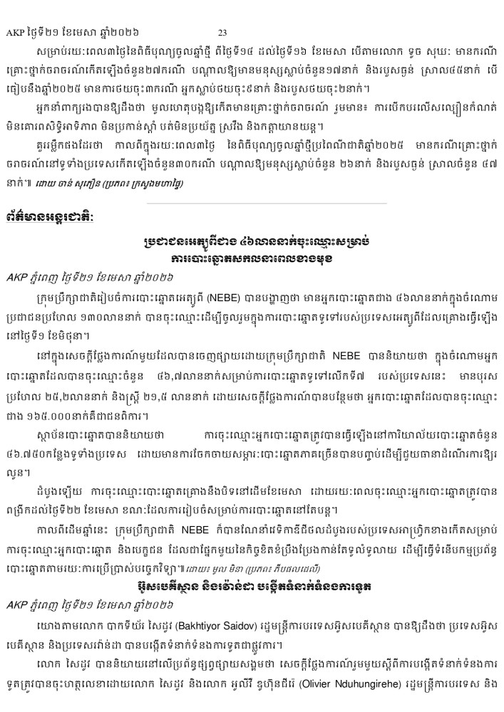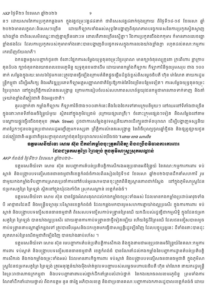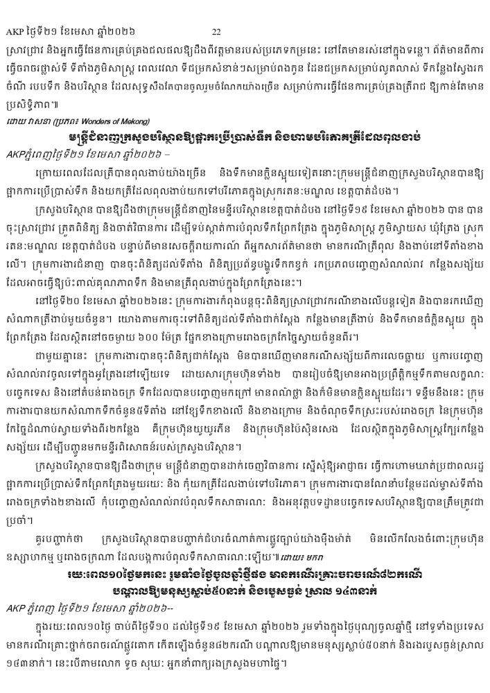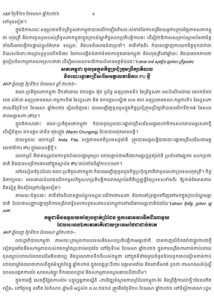 AKP ភ្នំពេញ ថ្ងៃទី២១ ខែមេសា ឆ្នាំ២០២៦ -