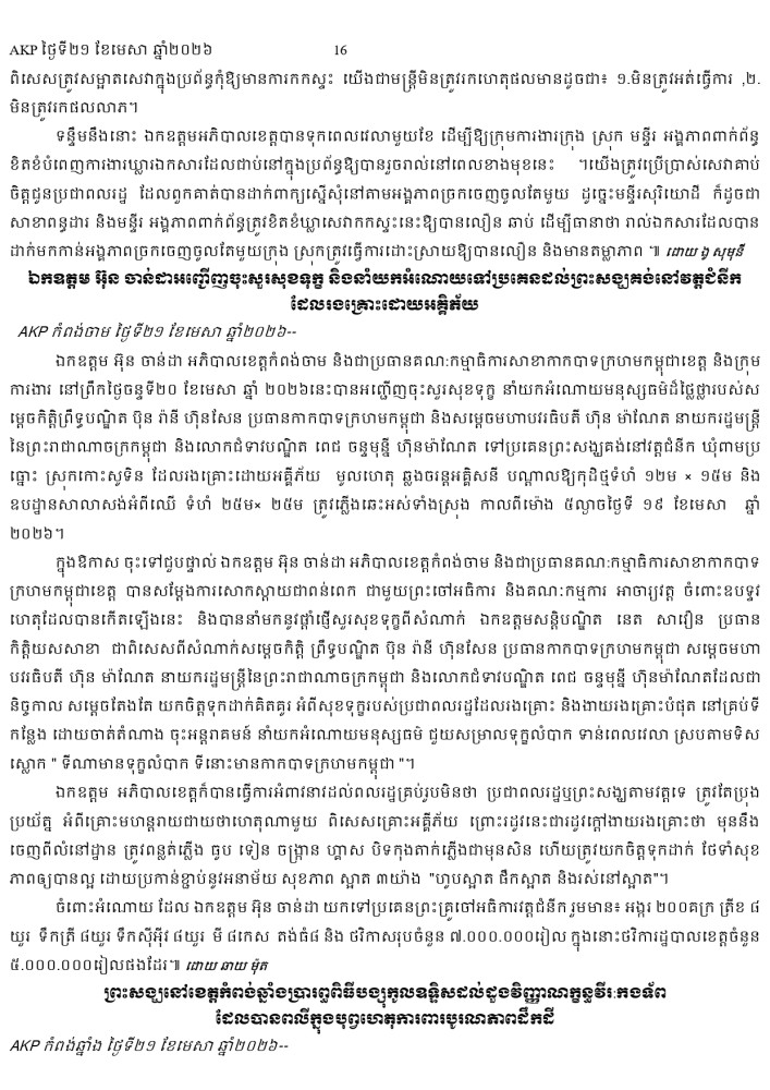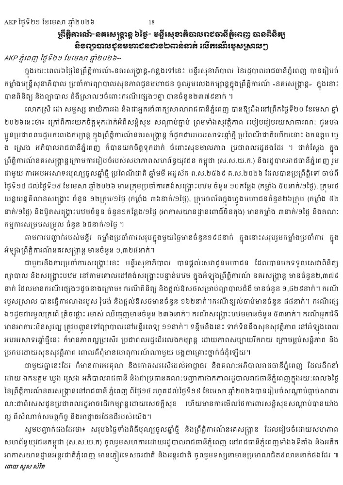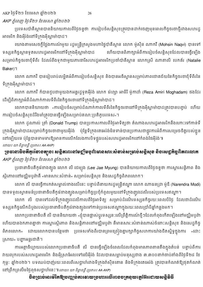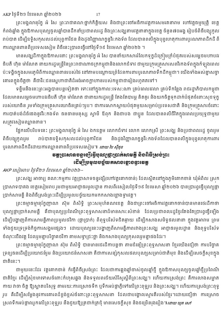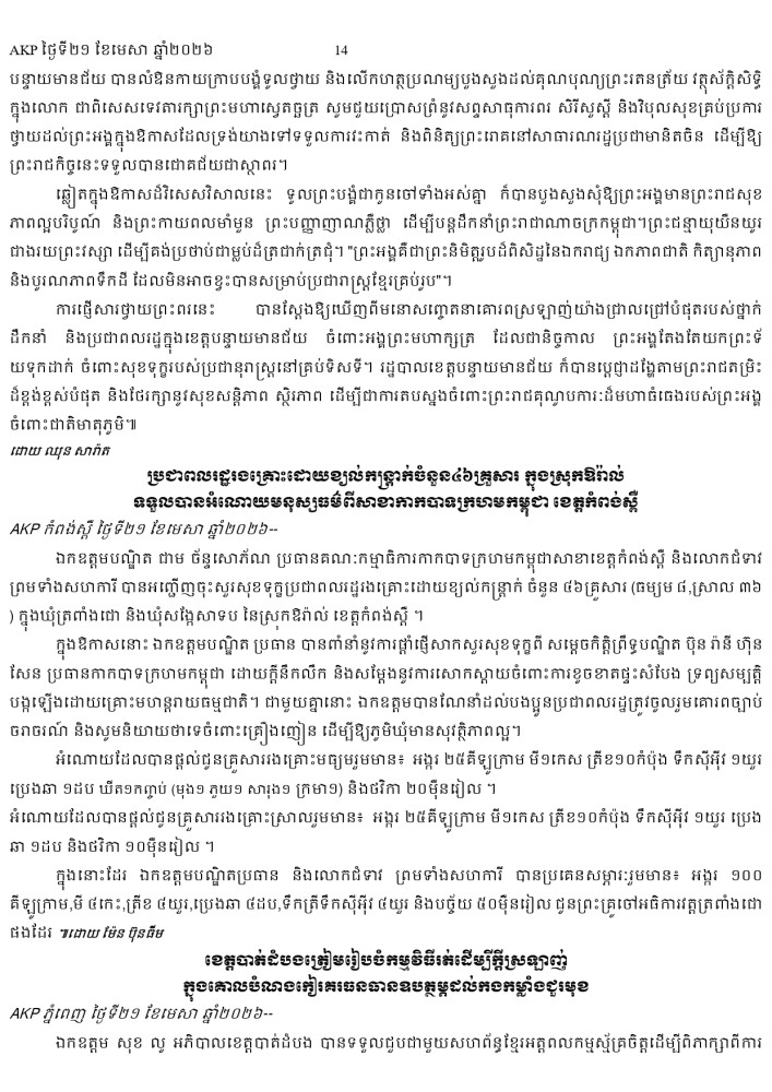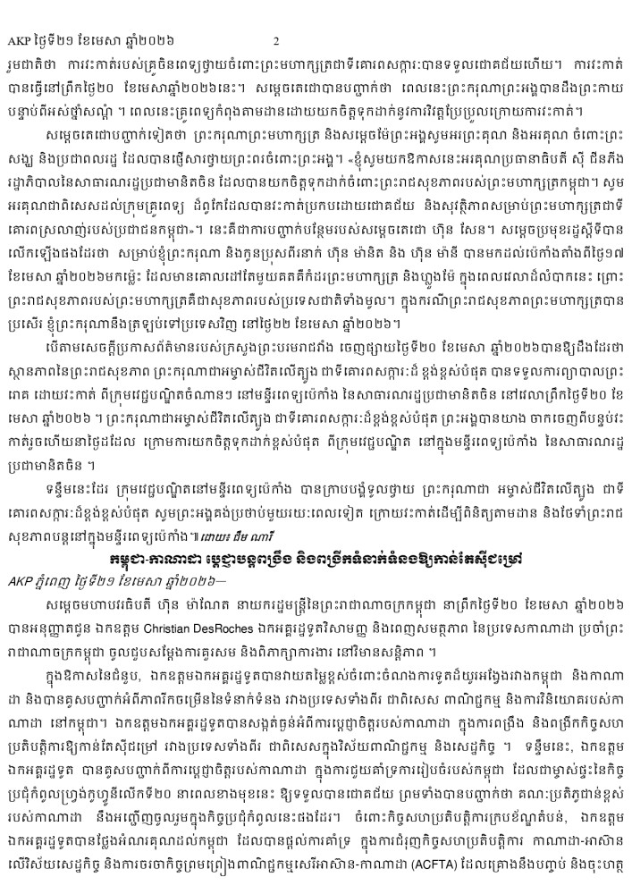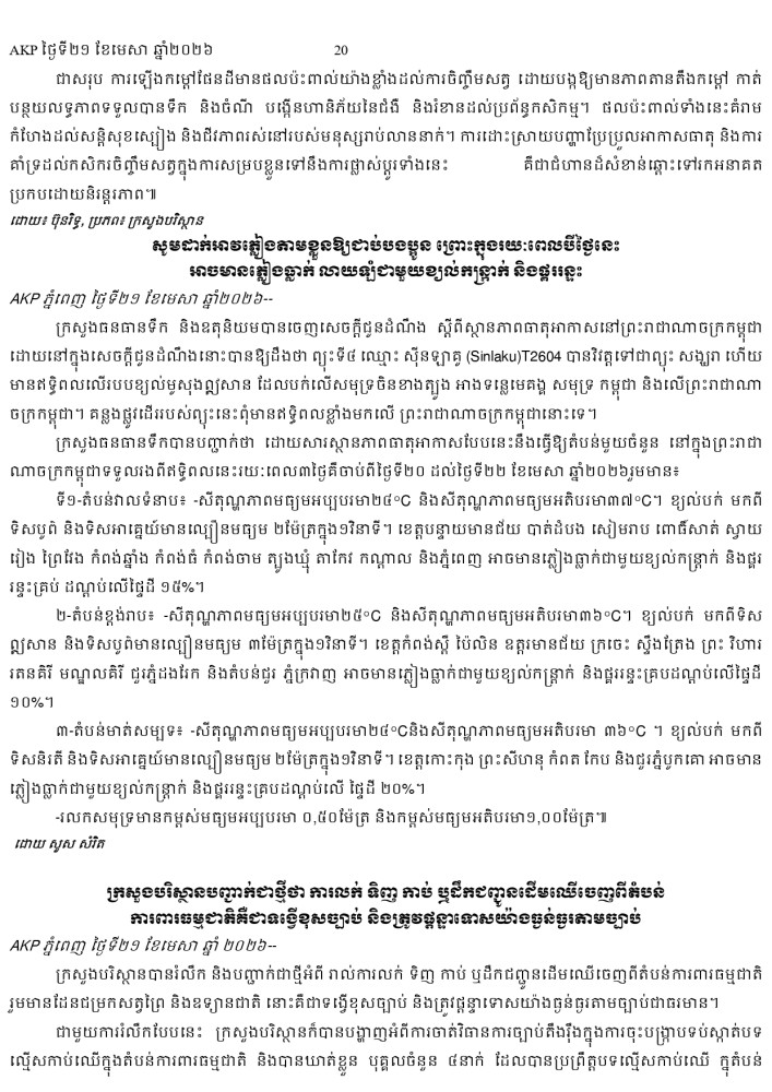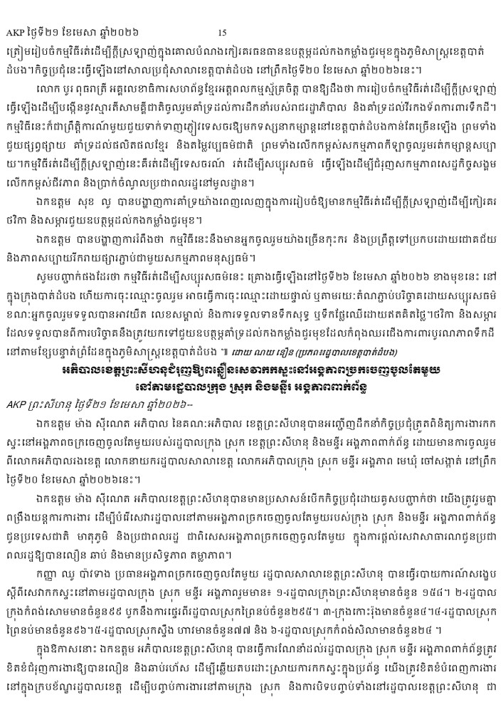 AKP ភ្នំពេញ ថ្ងៃទី២១ ខែមេសា ឆ្នាំ២០២៦ -