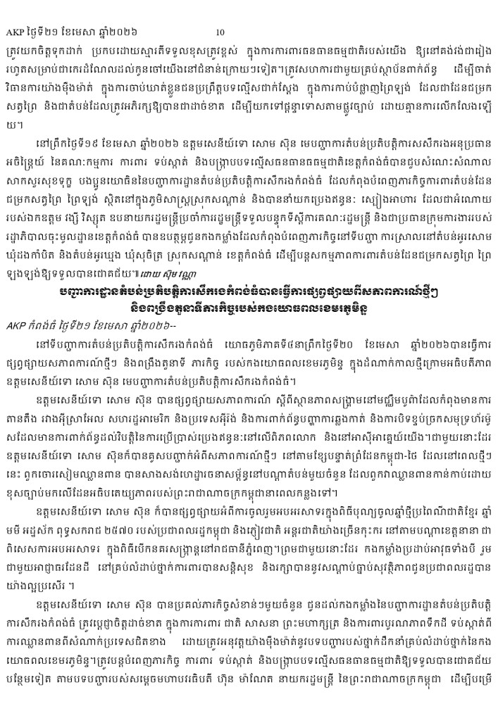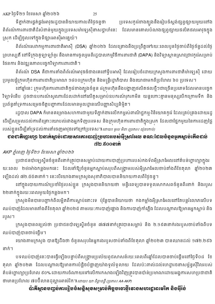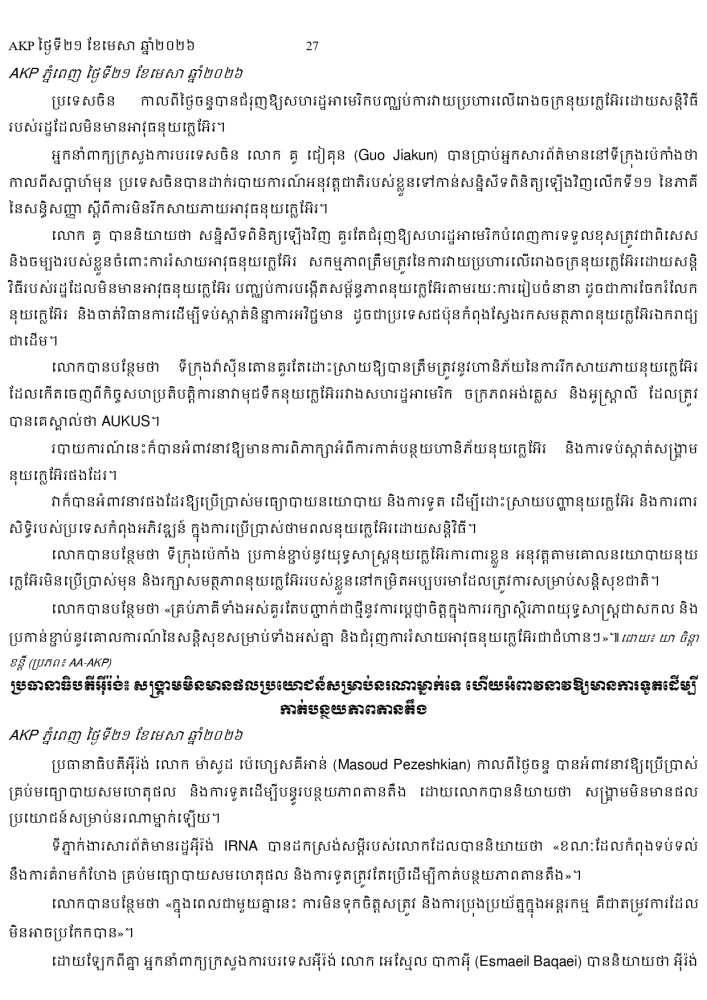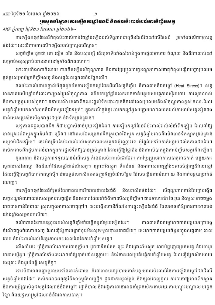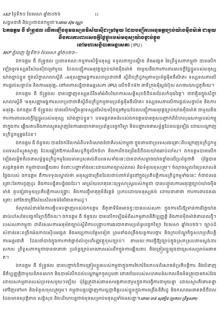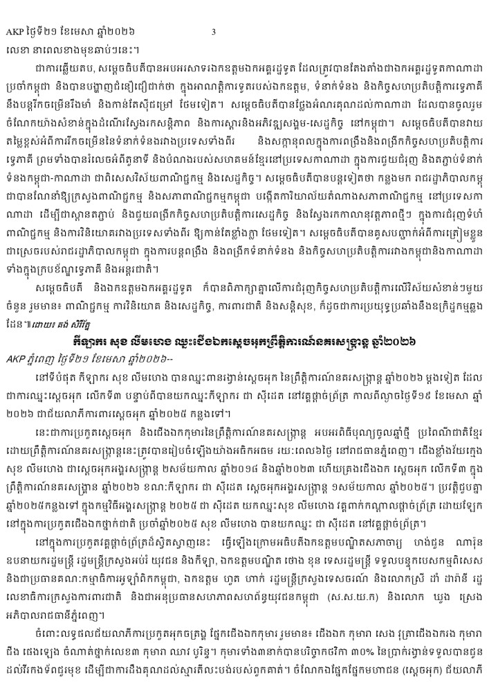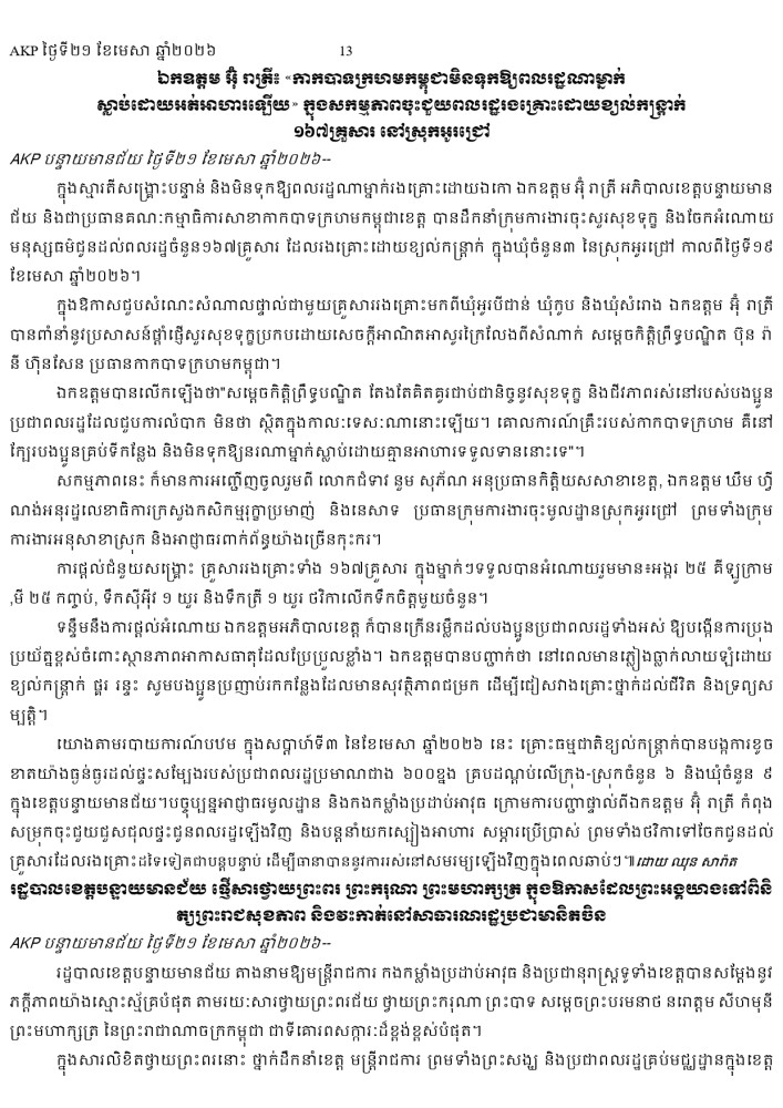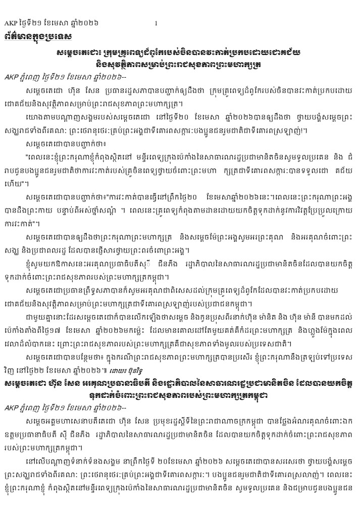AKP ភ្នំពេញ ថ្ងៃទី២១ ខែមេសា ឆ្នាំ២០២៦ -