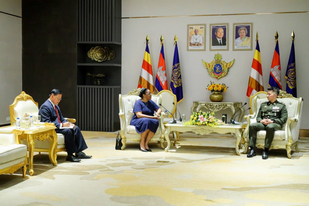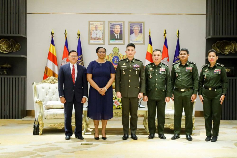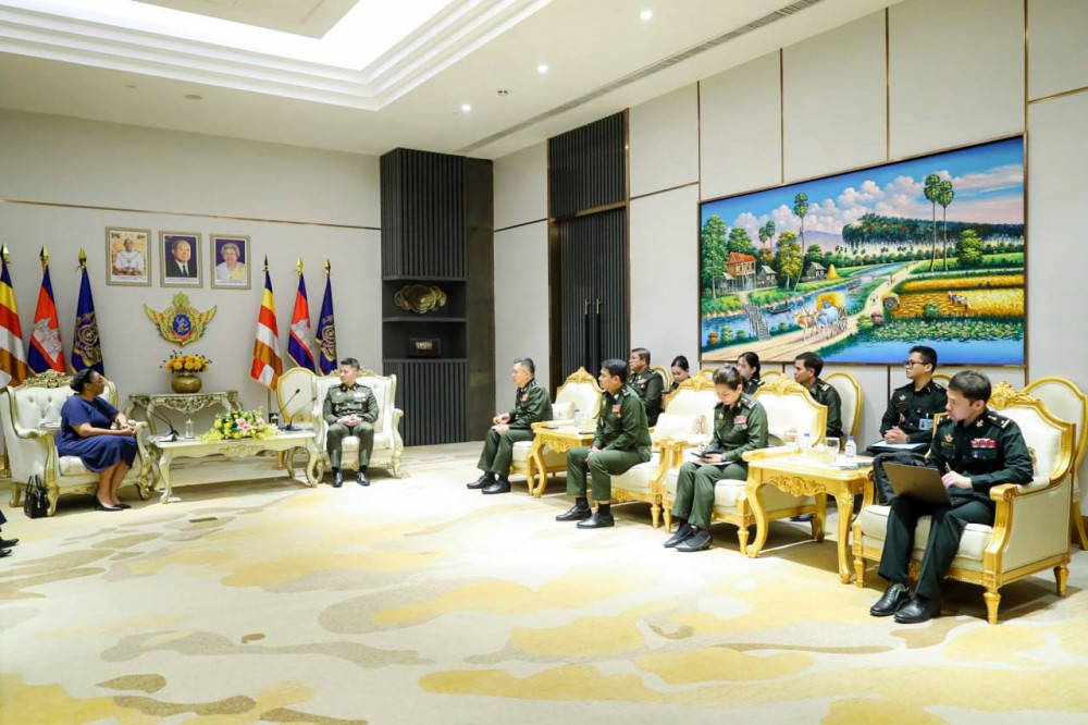 ឯកឧត្តម ឧត្តមសេនីយ៍ឯក រ៉ាត់ ដារ៉ារ័ត្ន រដ្ឋលេខាធិការក្រសួងការពារជាតិ តំណាងឯកឧត្តម នាយឧត្តមសេនីយ៍ ទៀ សីហា ឧបនាយករដ្ឋមន្ត្រី រដ្ឋមន្ត្រីក្រសួងការពារជាតិ ទទួលជួបលោកជំទាវ Milena Caridad Zaldívar Piedra ឯកអគ្គរដ្ឋទូតនៃសាធារណរដ្ឋគុយបា ប្រចាំកម្ពុជា នៅទីស្តីការក្រសួង រាជធានីភ្នំពេញ នាព្រឹកថ្ងៃទី២២ ខែមេសា ឆ្នាំ២០២៦។