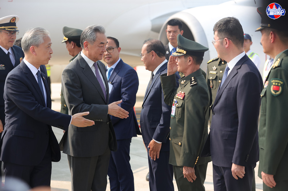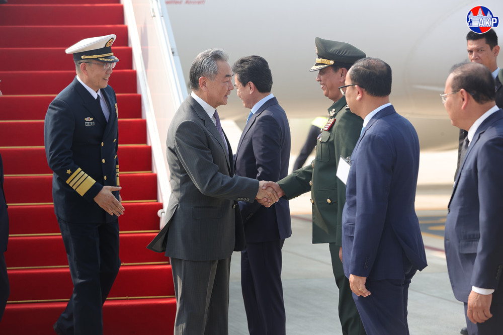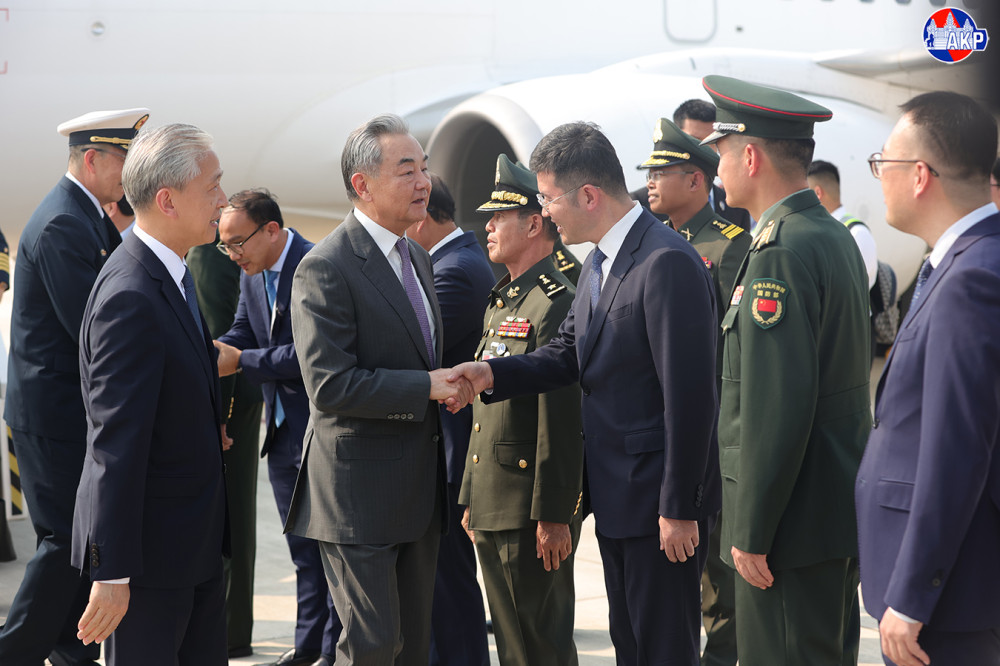 ឯកឧត្តម វ៉ាង យី (Wang Yi) រដ្ឋមន្ត្រីការបរទេស និងឯកឧត្តម តុង ជុន (Dong Jun) រដ្ឋមន្ត្រីការពារជាតិ នៃសាធារណរដ្ឋប្រជាមានិតចិន អញ្ជើញមកដល់អាកាសយានដ្ឋានអន្តរជាតិតេជោ ក្នុងខេត្តកណ្តាល នារសៀលថ្ងៃទី២២ ខែមេសា ឆ្នាំ២០២៦ ដើម្បីអញ្ជើញចូលរួម កិច្ចប្រជុំលើកទី១ នៃកិច្ចសន្ទនាយុទ្ធសាស្ត្រ “២+២” រវាងរដ្ឋមន្ត្រីការបរទេស និងរដ្ឋមន្ត្រីការពារជាតិកម្ពុជា និងចិន។