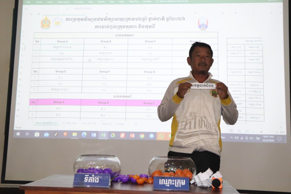 AKP ភ្នំពេញ ថ្ងៃទី២៤ ខែមេសា ឆ្នាំ២០២៦--ឯកឧត្តម ប៊ូ ជុំសេរី អនុរដ្ឋលេខាធិការ ក្រសួងអប់រំ យុវជន និងកីឡាបានផ្តល់អនុសាសន៍ណែនាំនូវគន្លឹះសំខាន់ៗជាច្រើនចំណុច ដើម្បីជំរុញឱ្យអ្នកពាក់ព័ន្ធទាំងអ្នករៀបចំ ប្រតិភូ គ្រូបង្វឹក កីឡាករ កីឡាការិនីវ័យក្មេងចូលរួមប្រកួតកីឡាសិស្សបឋមសិក្សាថ្នាក់ជាតិ ពីថ្ងៃទី០២-០៩ ខែឧសភា ឆ្នាំ២០២៦ នៅរាជធានីភ្នំពេញ ពង្រឹងស្មារតីចូលរួមទទួលខុសត្រូវខ្ពស់ ក្នុងន័យជំរុញឱ្យព្រឹត្តិការណ៍ដ៏ធំមួយនេះដំណើរការដោយរលូន និងជោគជ័យ។