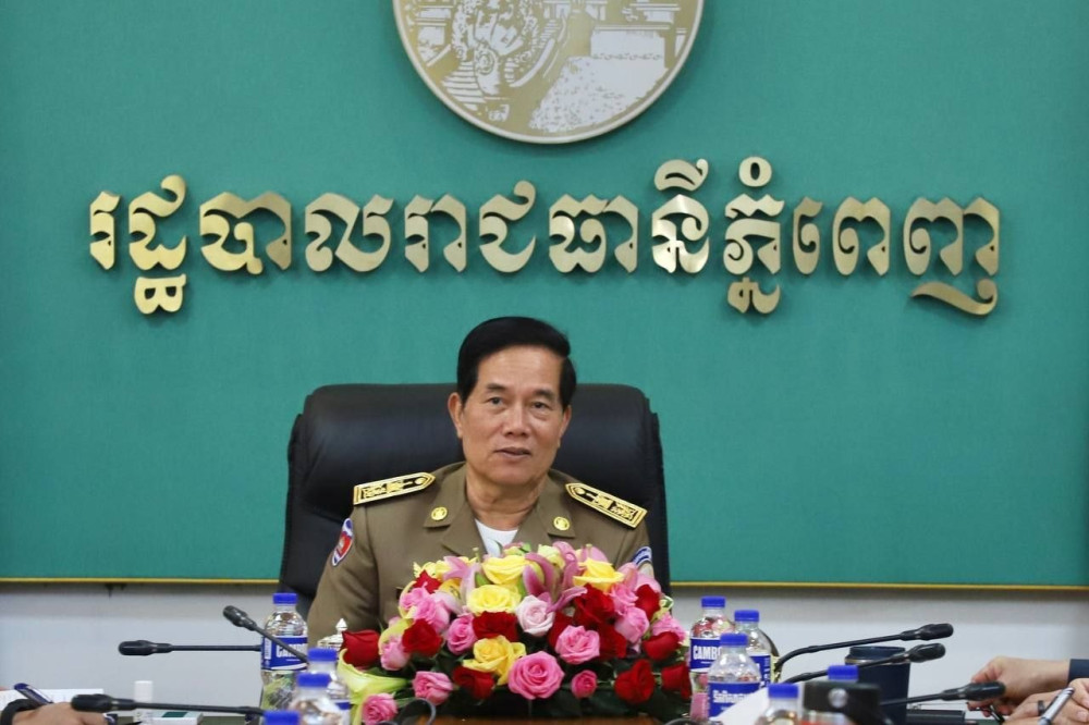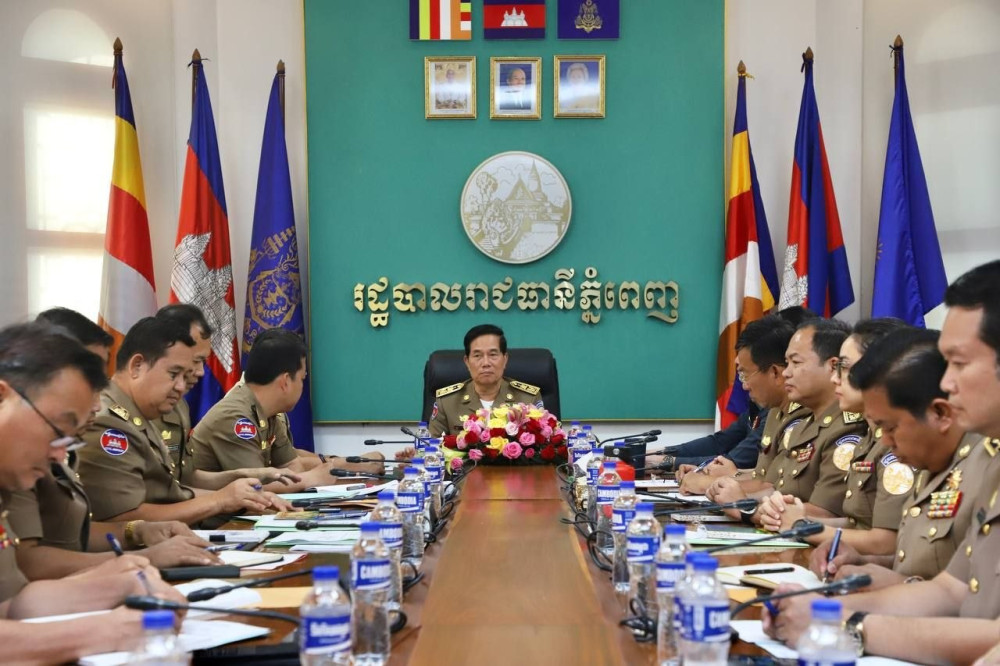 ឯកឧត្ដម ឃួង ស្រេង អភិបាល នៃគណៈអភិបាលរាជធានីភ្នំពេញ និងជាប្រធានគណៈបញ្ជាការឯកភាពរាជធានីភ្នំពេញ អញ្ជើញដឹកនាំកិច្ចប្រជុំប្រជុំស្តីពីវឌ្ឍនភាព ការងារបង្ក្រាបការឆបោកតាមប្រព័ន្ធបច្ចេកវិទ្យា (Online Scams) នារសៀលថ្ងៃទី២៤ ខែមេសា ឆ្នាំ២០២៦ នៅសាលារាជធានីភ្នំពេញ។