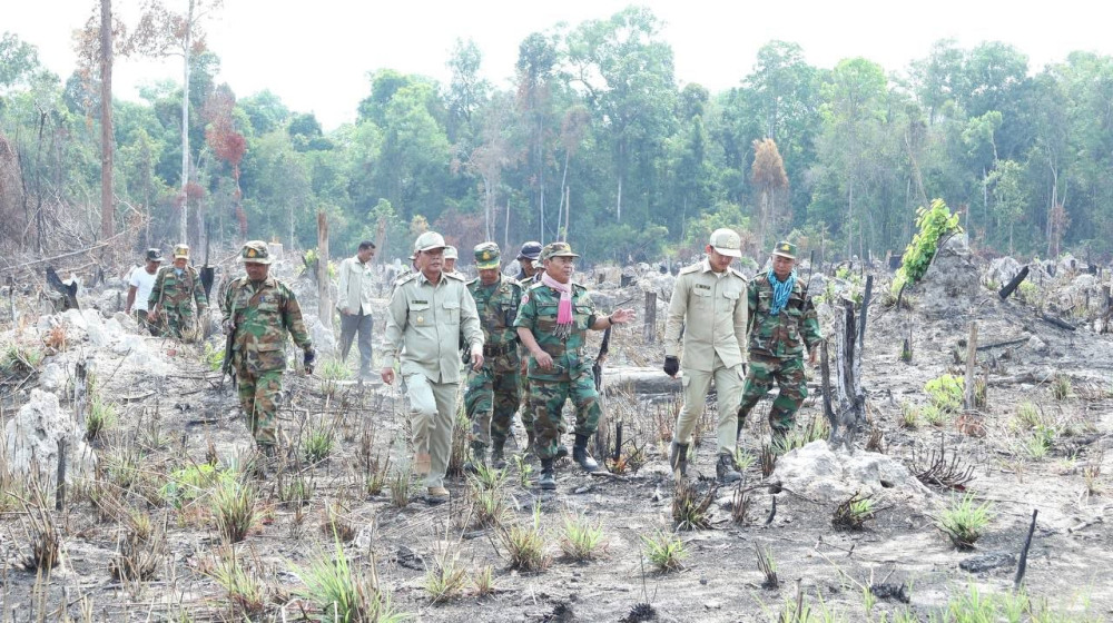 ឧត្តមសេនីយ៍ទោ សោម ស៊ុន ដឹកនាំកម្លាំងចុះត្រួតពិនិត្យវាយតម្លៃអំពីការកាប់ទន្ទ្រានព្រៃឈើនៅសហគមន៍អូរក្រញូងឃុំមានរិទ្ធ