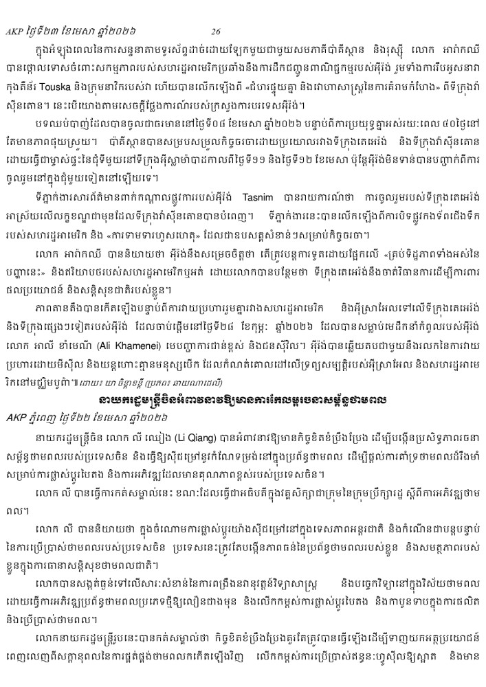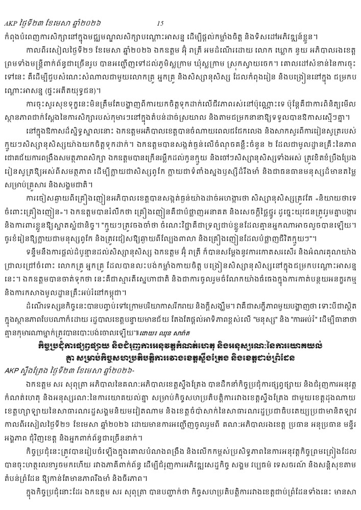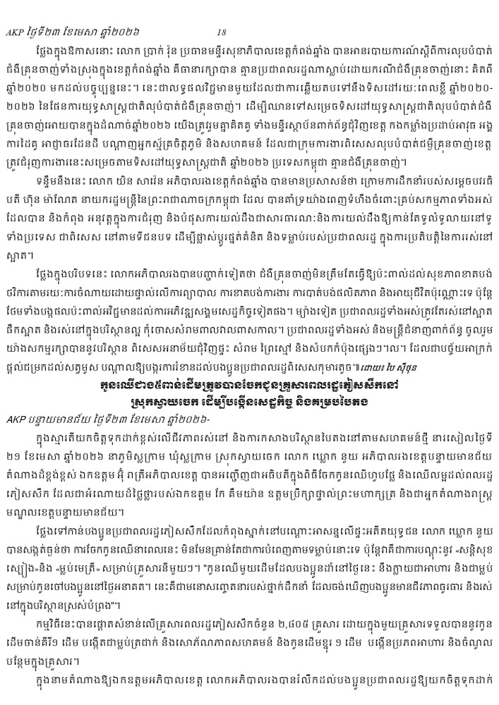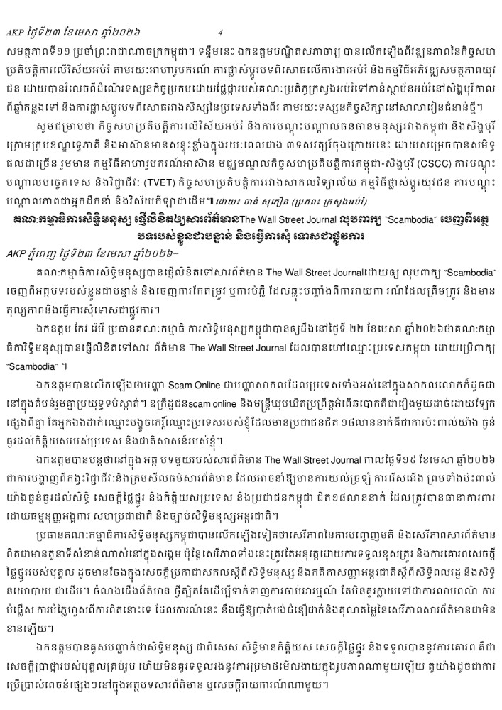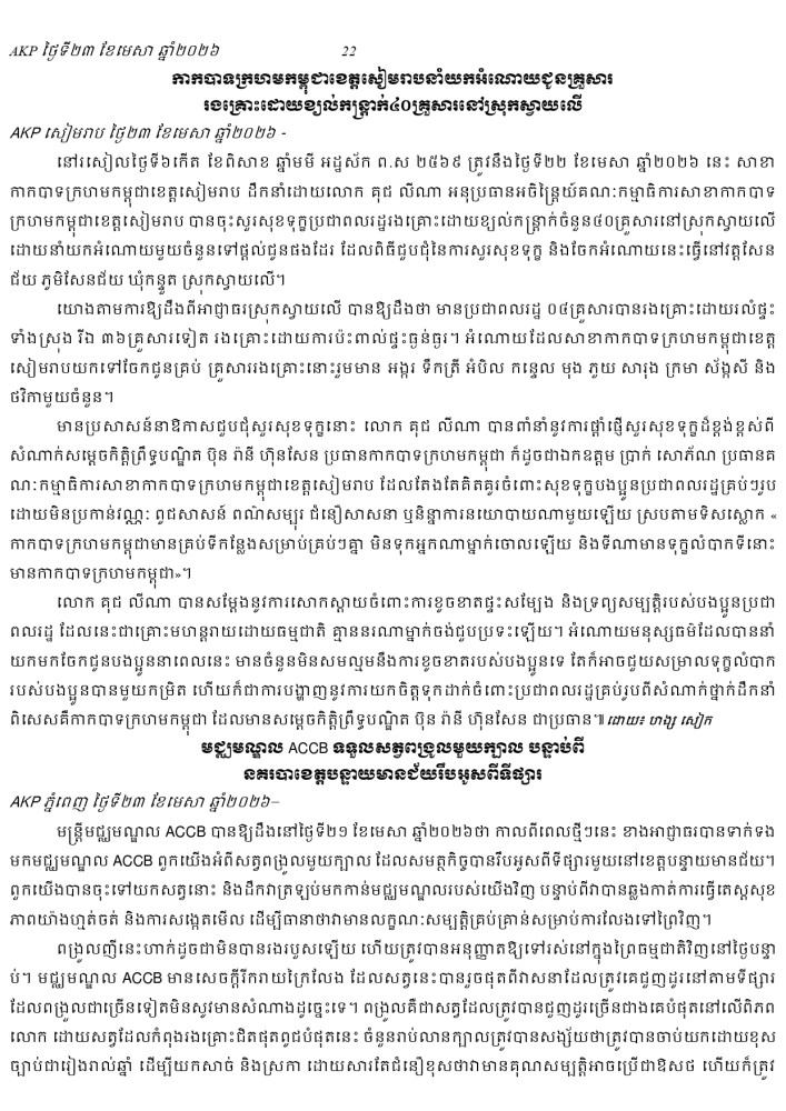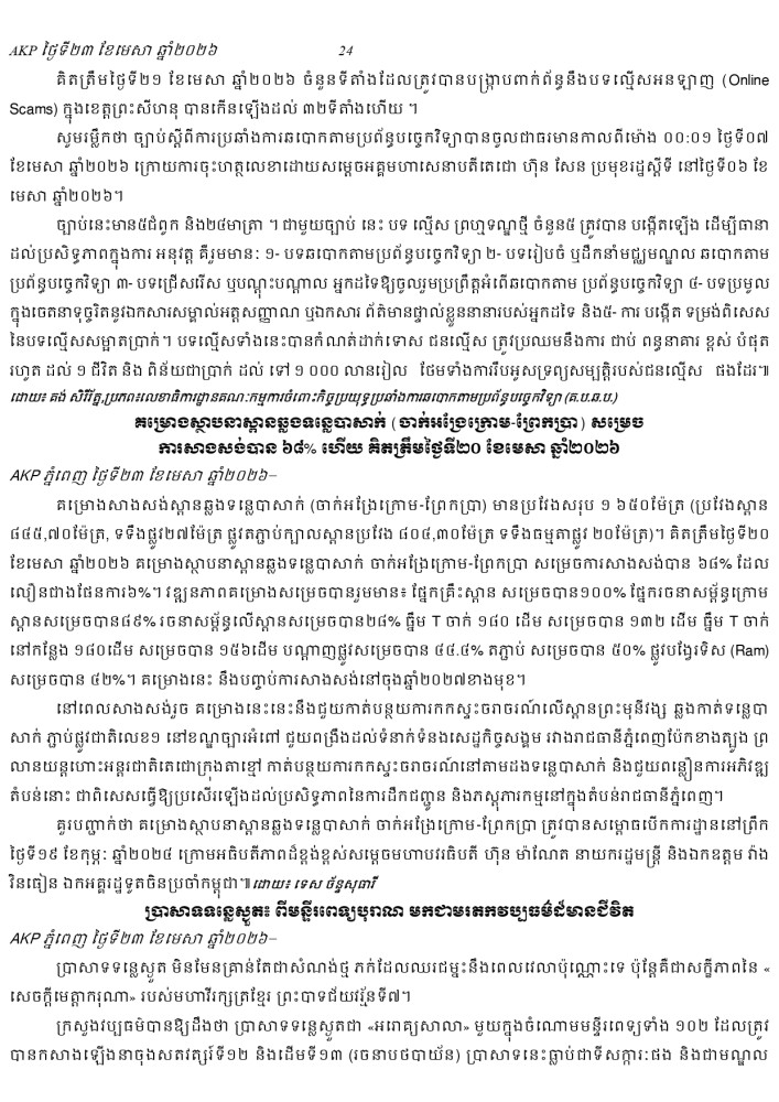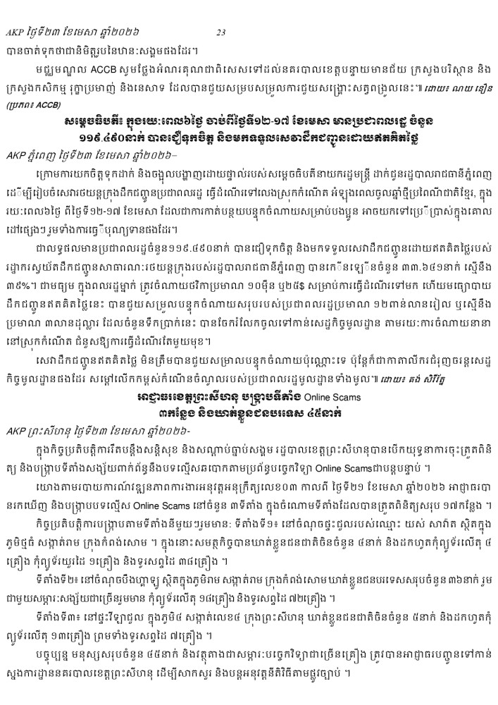 AKP ភ្នំពេញ ថ្ងៃទី២៣ ខែមេសា ឆ្នាំ២០២៦ -