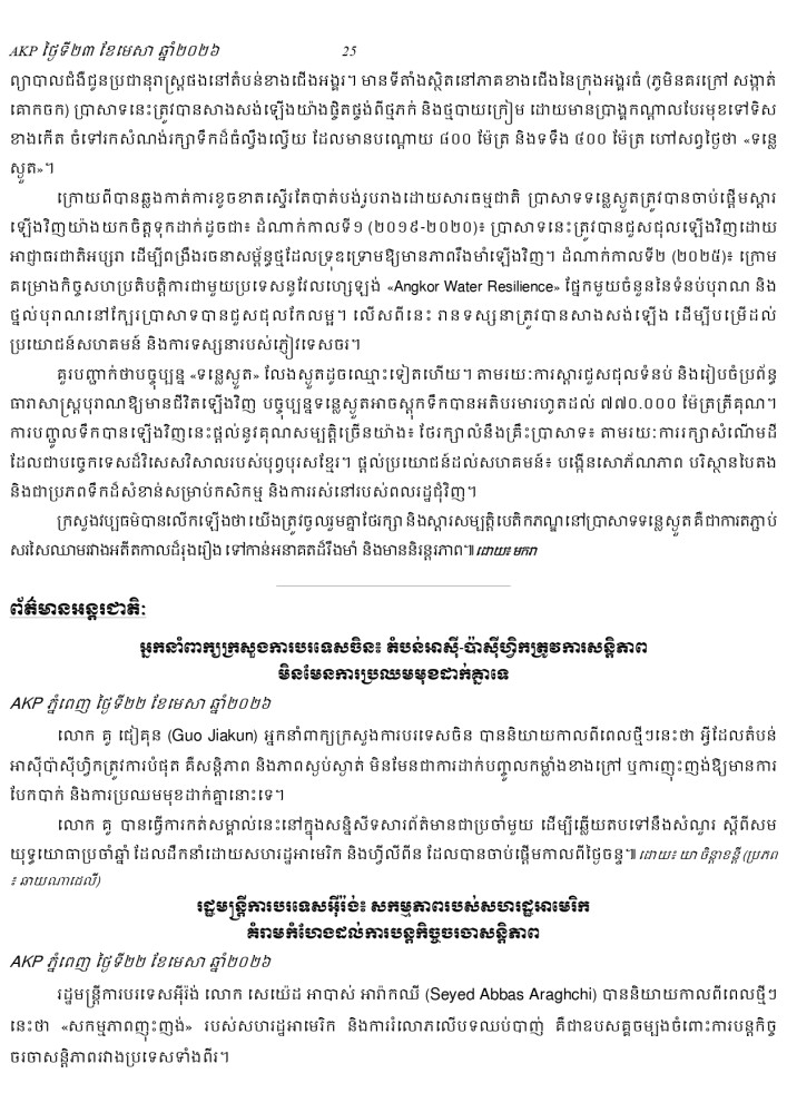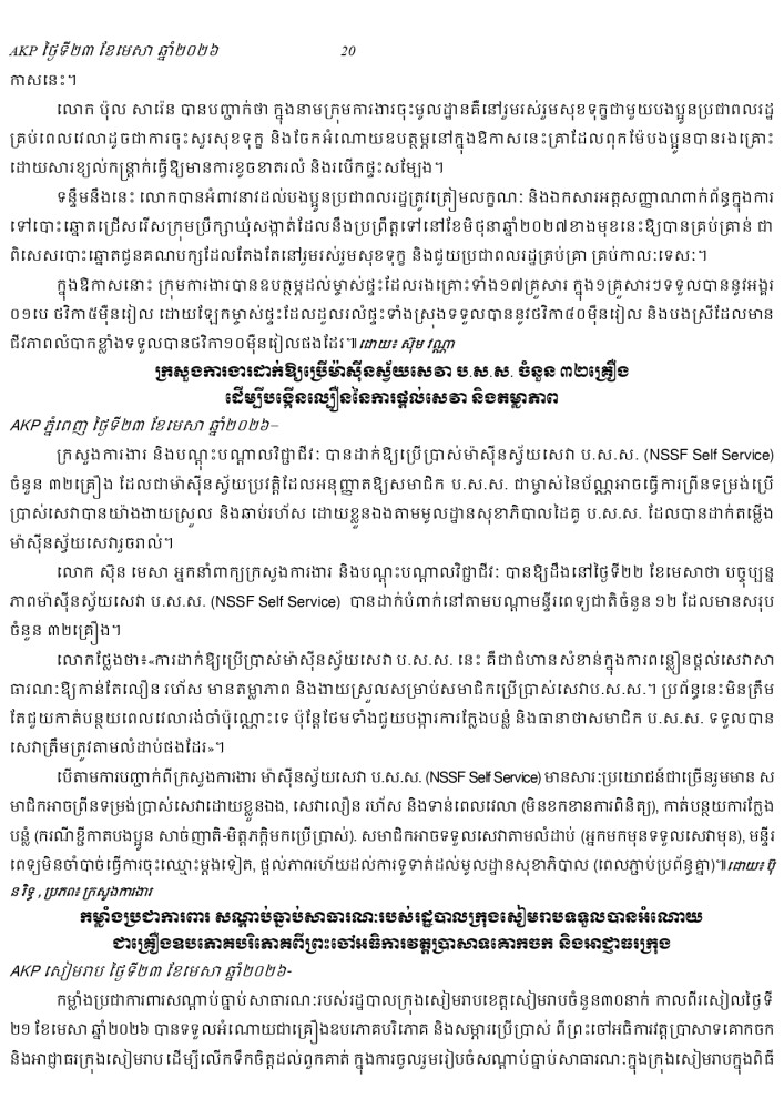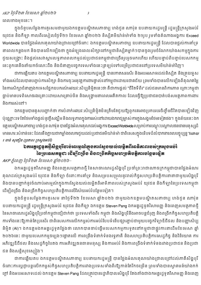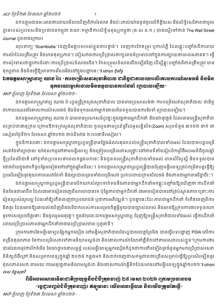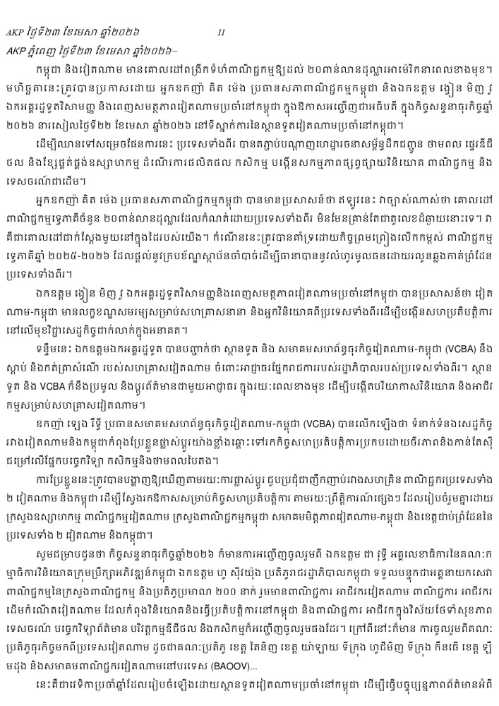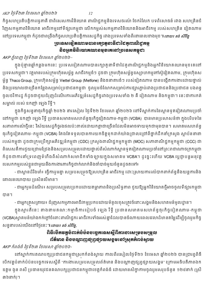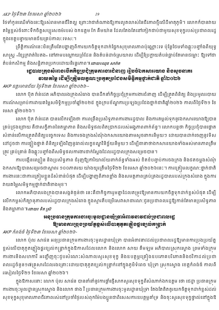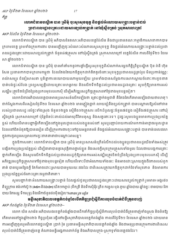 AKP ភ្នំពេញ ថ្ងៃទី២៣ ខែមេសា ឆ្នាំ២០២៦ -