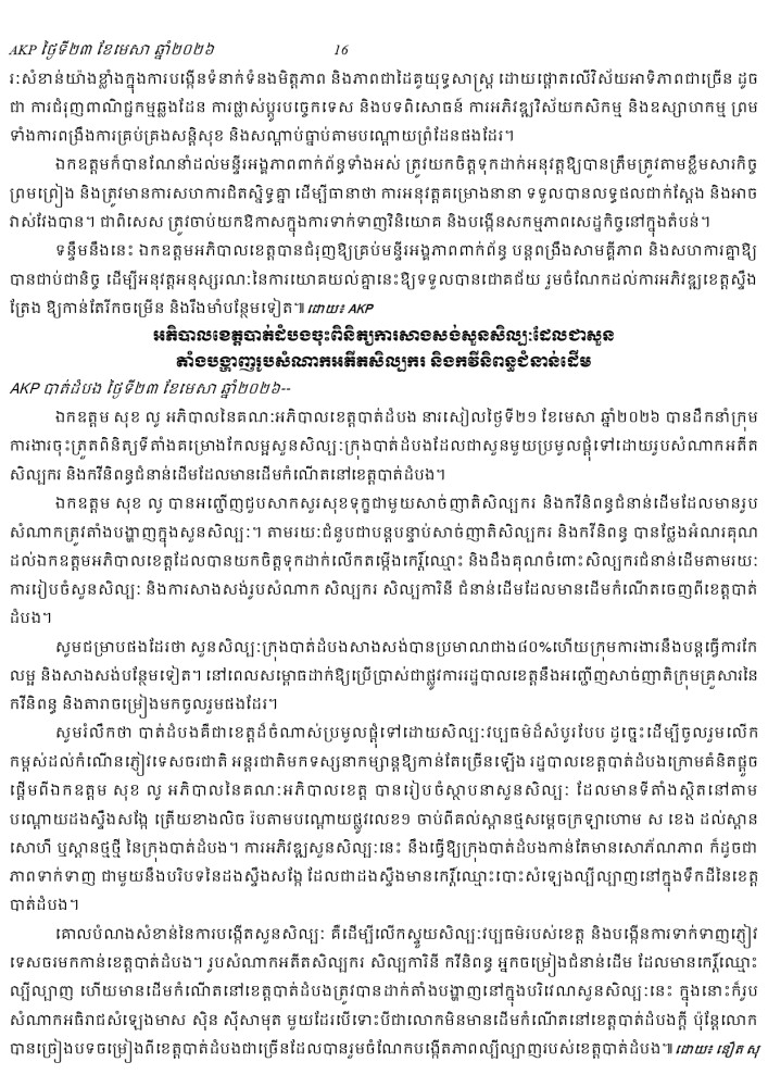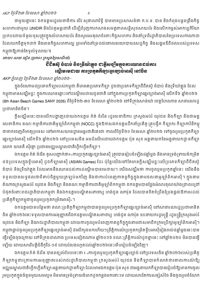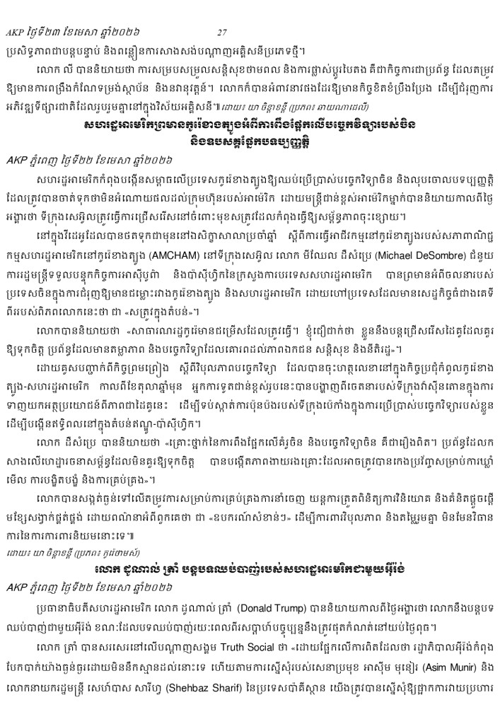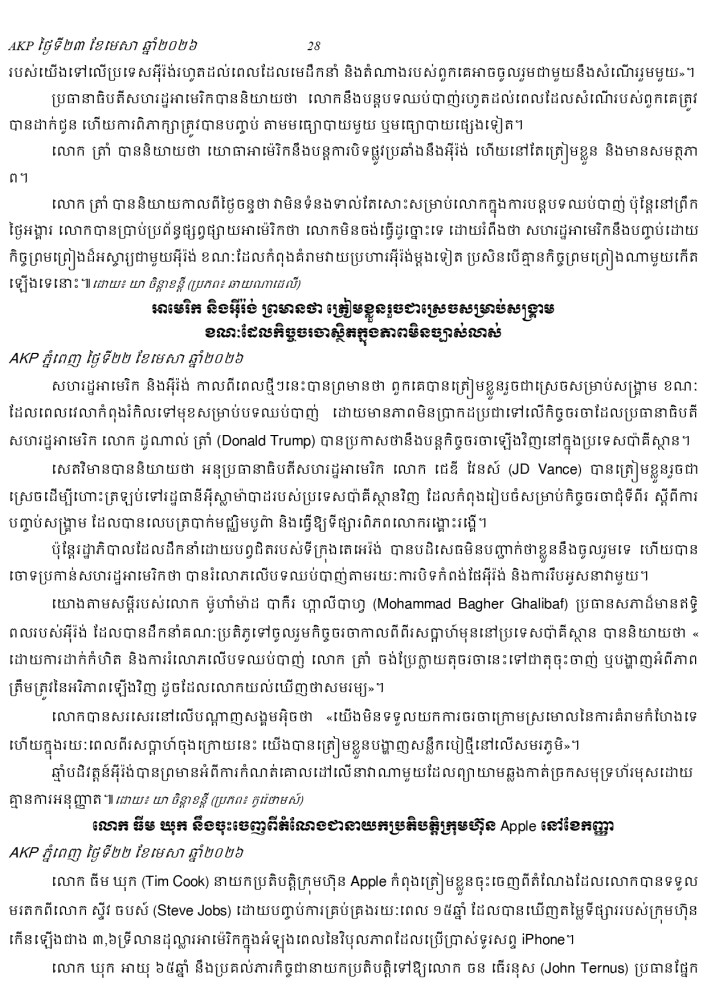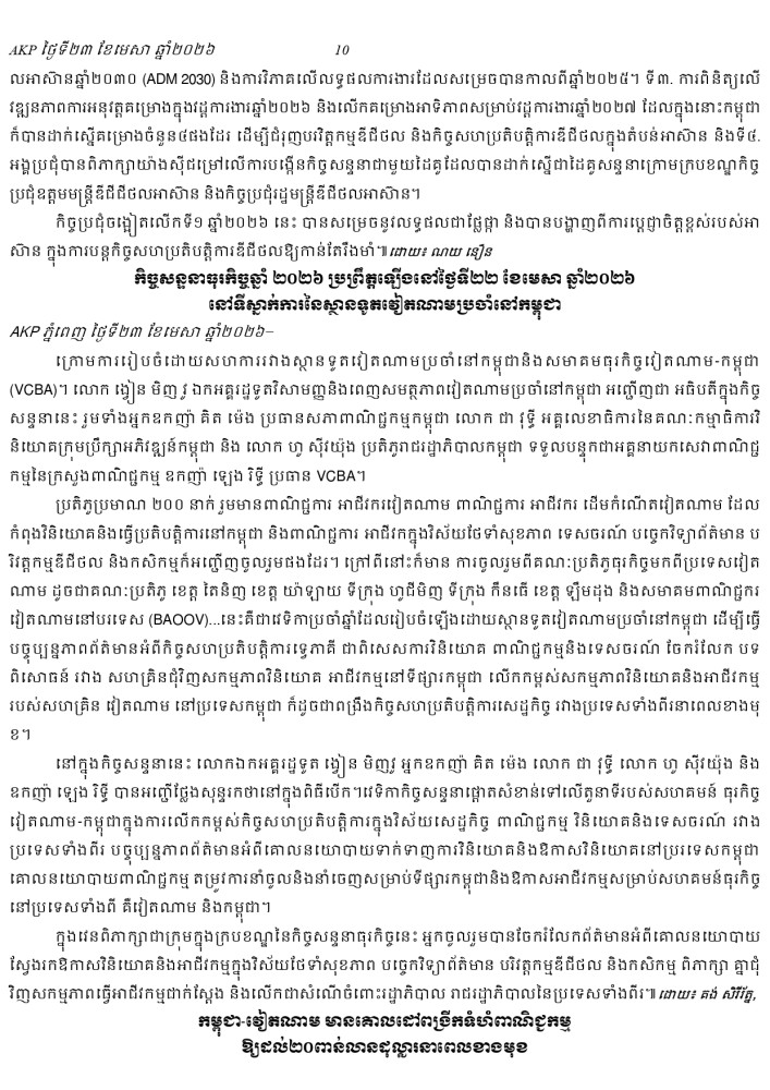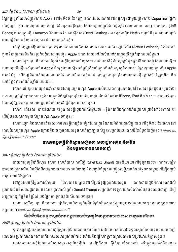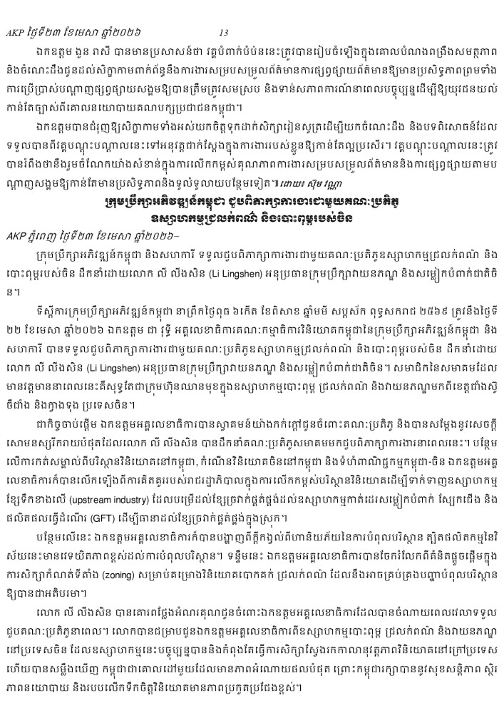 AKP ភ្នំពេញ ថ្ងៃទី២៣ ខែមេសា ឆ្នាំ២០២៦ -