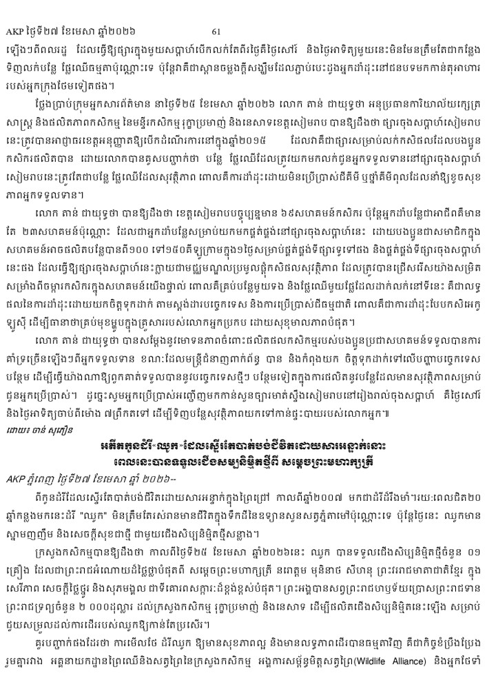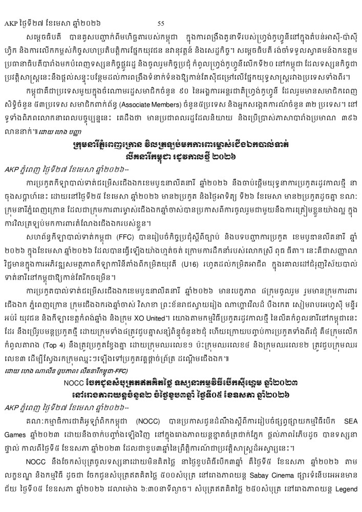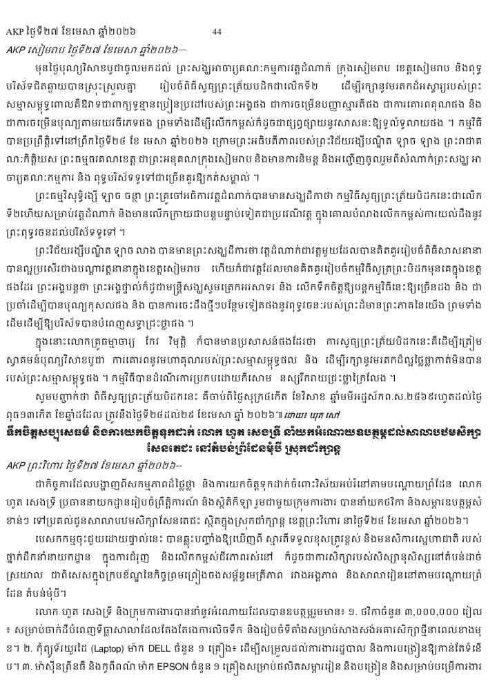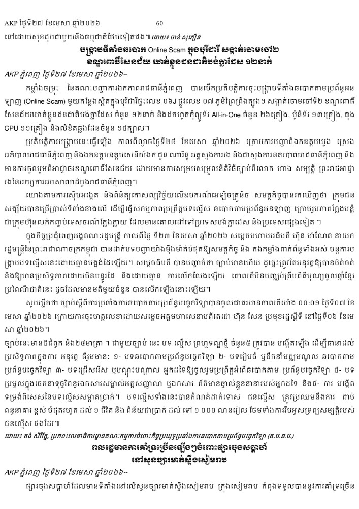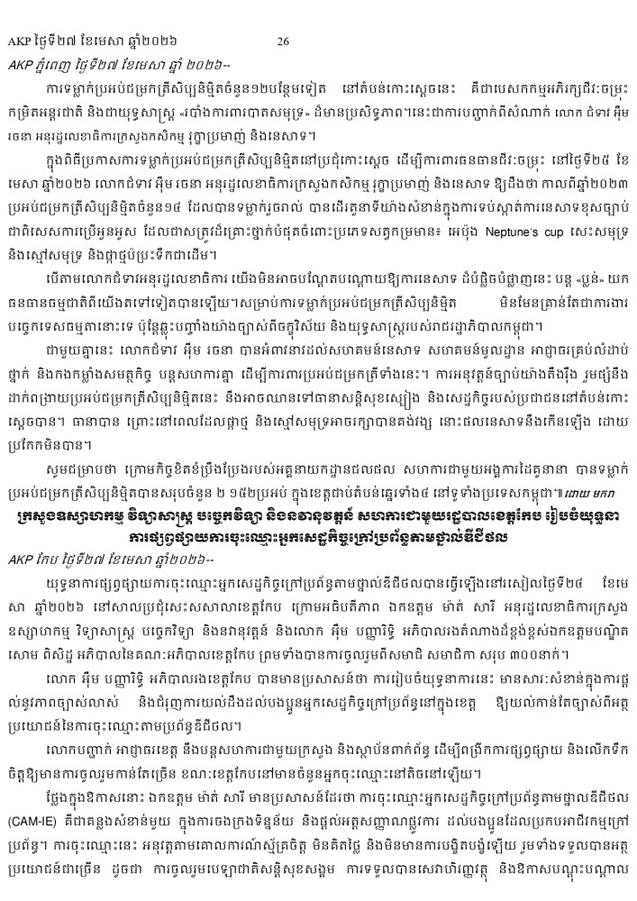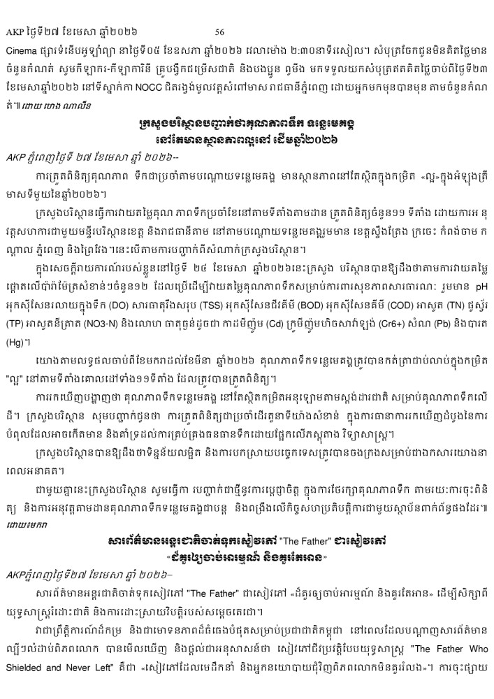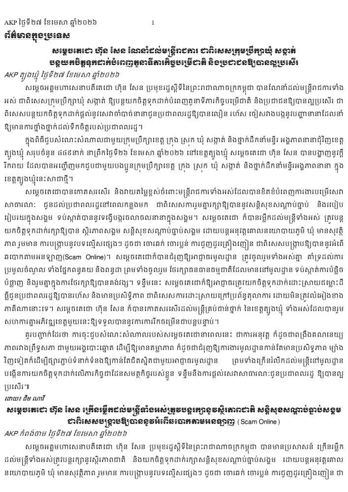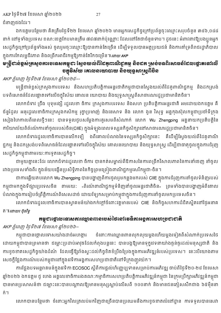 AKP ភ្នំពេញ ថ្ងៃទី២៧ ខែមេសា ឆ្នាំ២០២៦ -