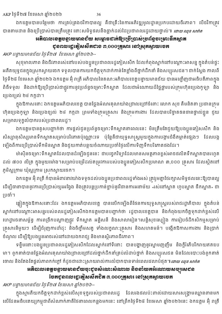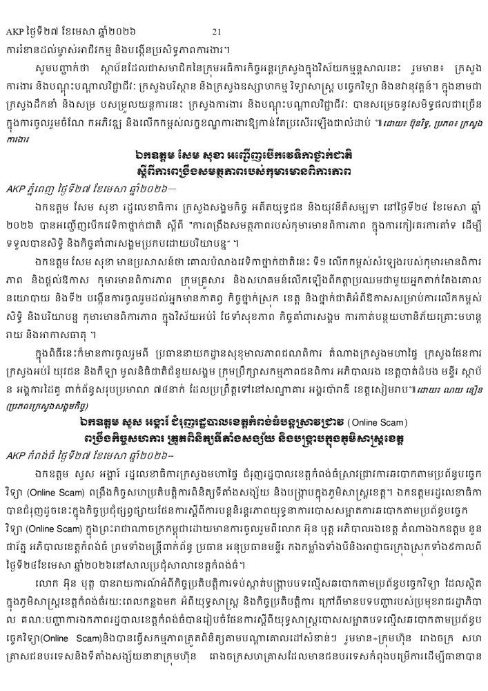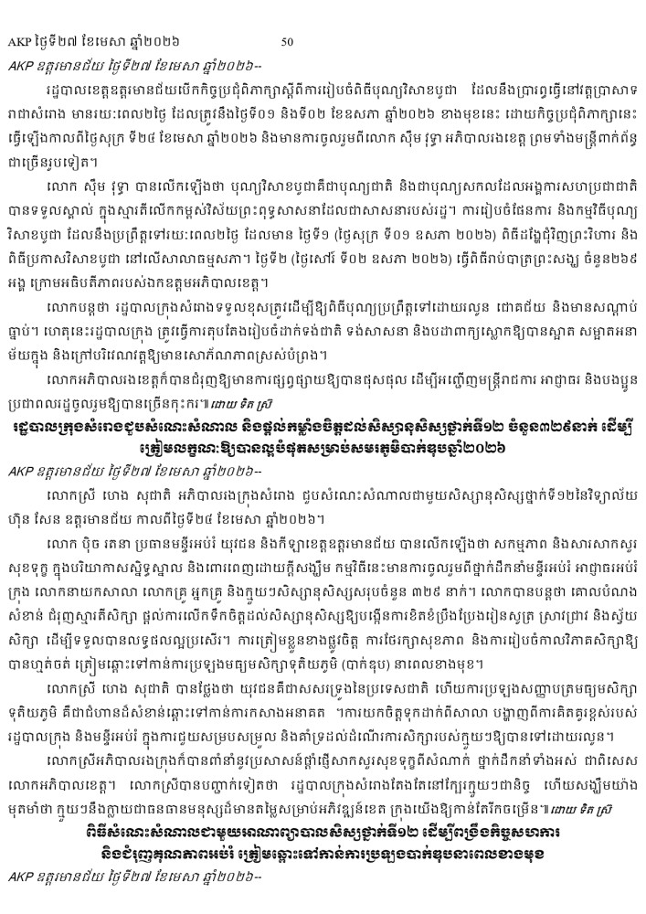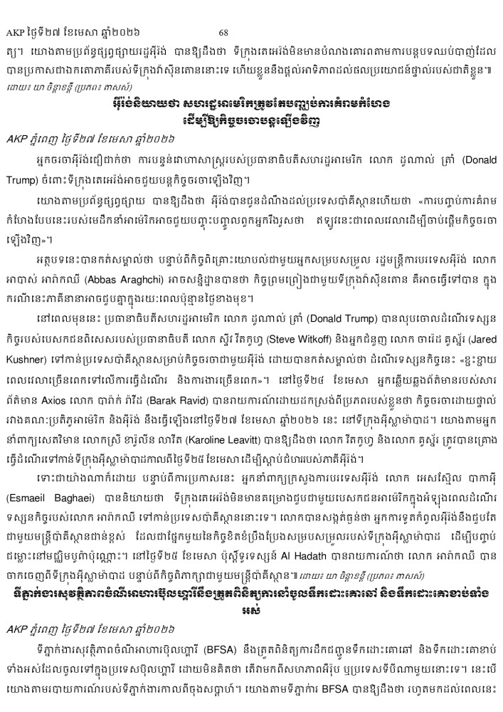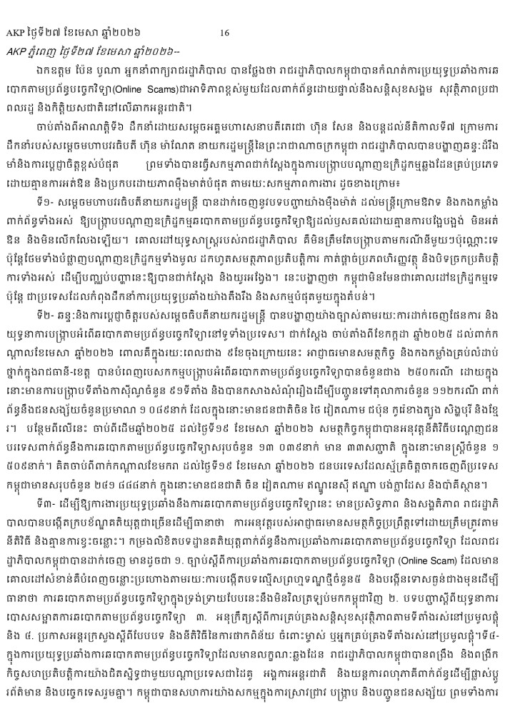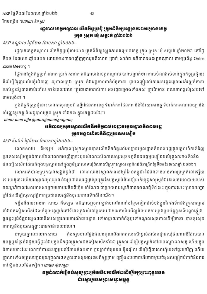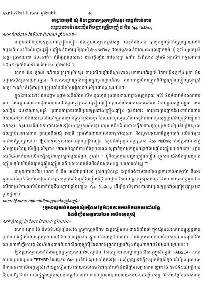 AKP ភ្នំពេញ ថ្ងៃទី២៧ ខែមេសា ឆ្នាំ២០២៦ -