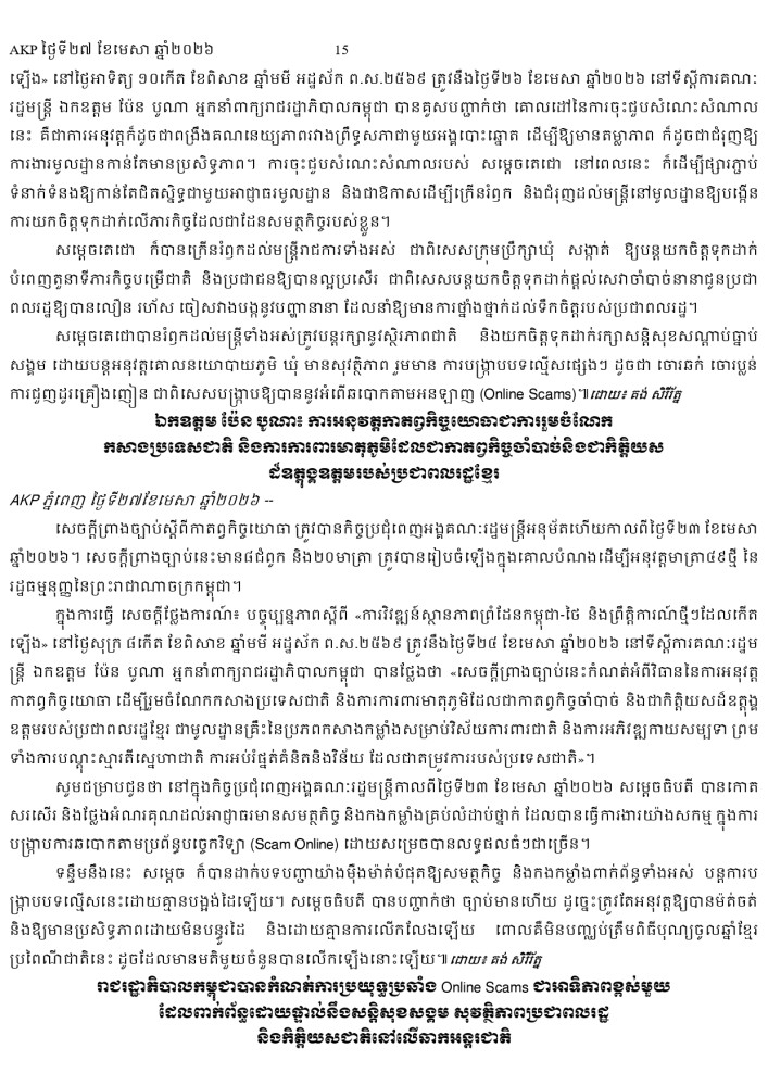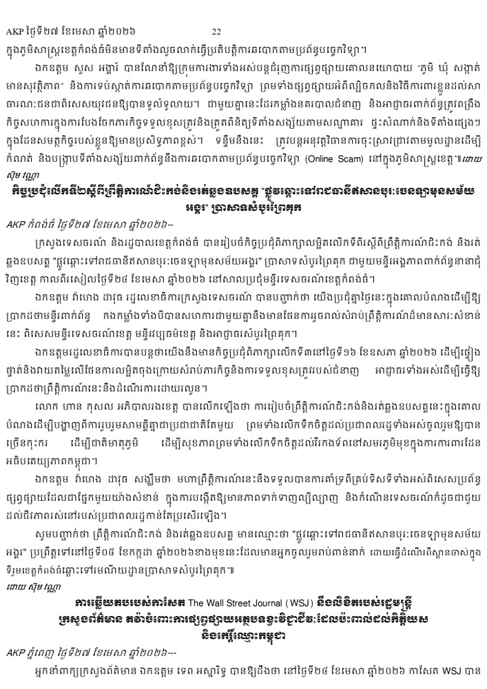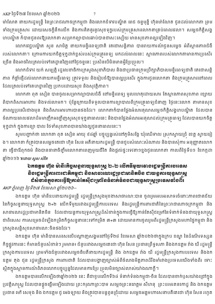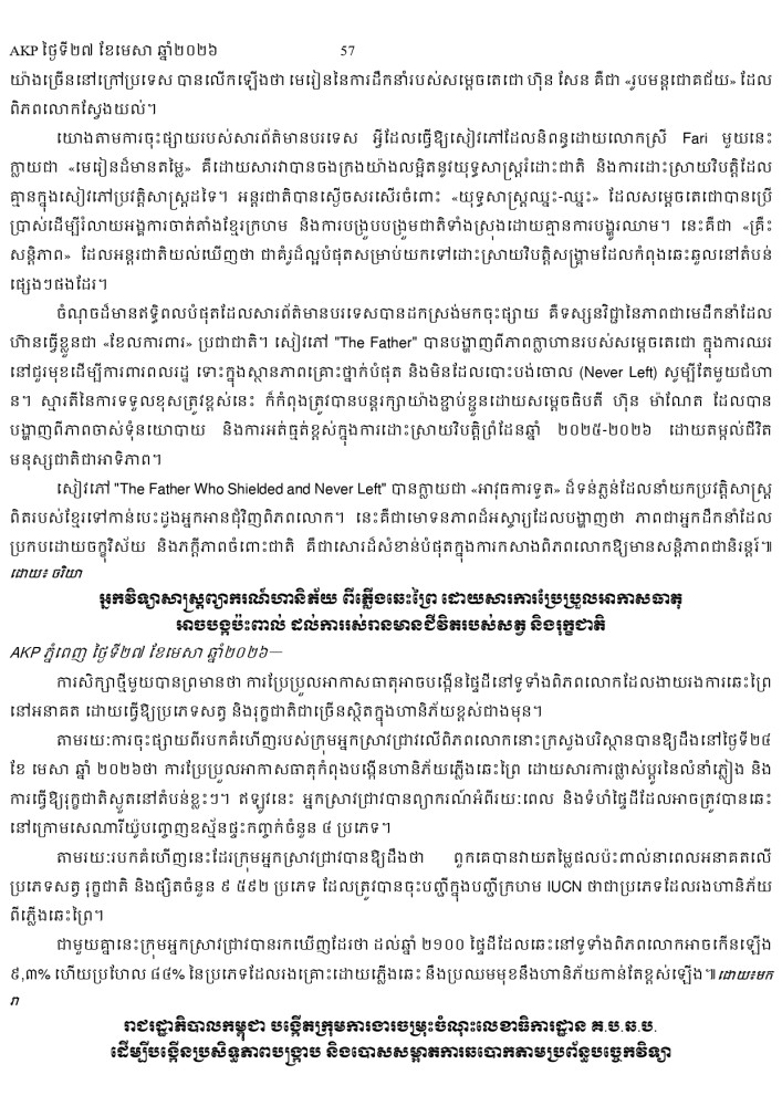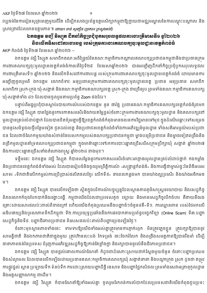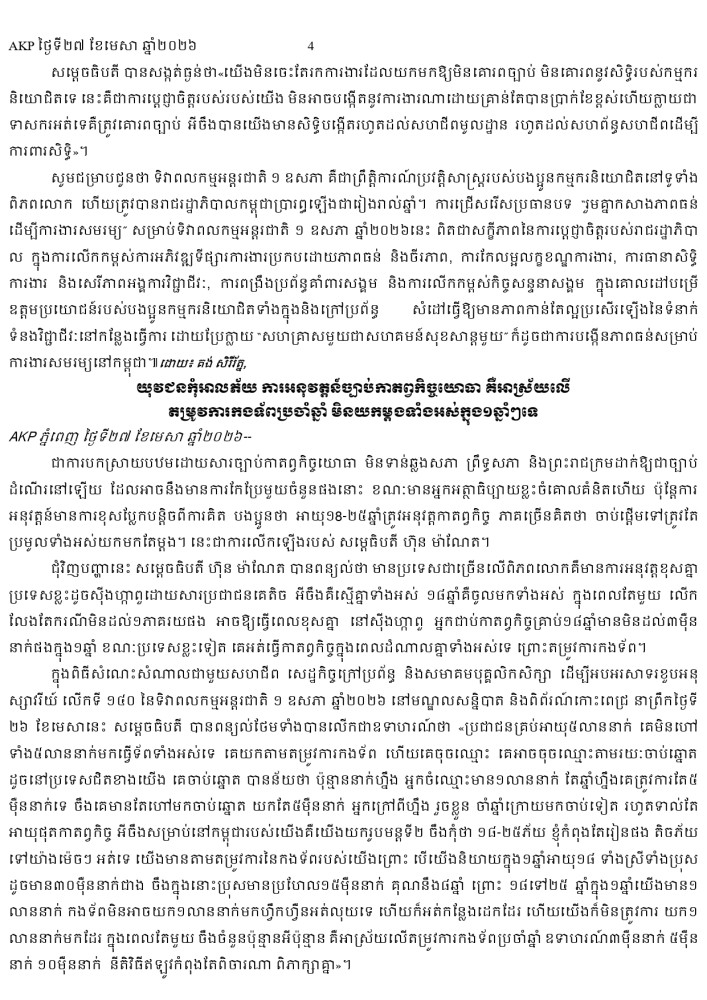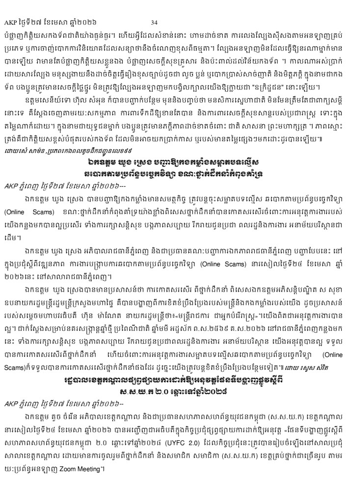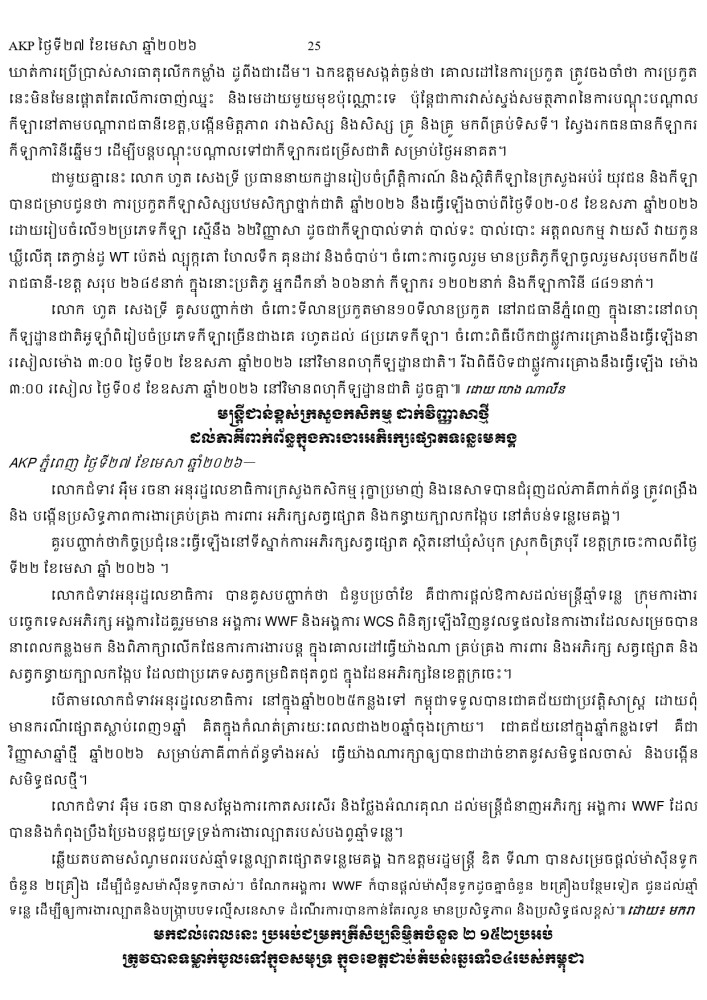 AKP ភ្នំពេញ ថ្ងៃទី២៧ ខែមេសា ឆ្នាំ២០២៦ -