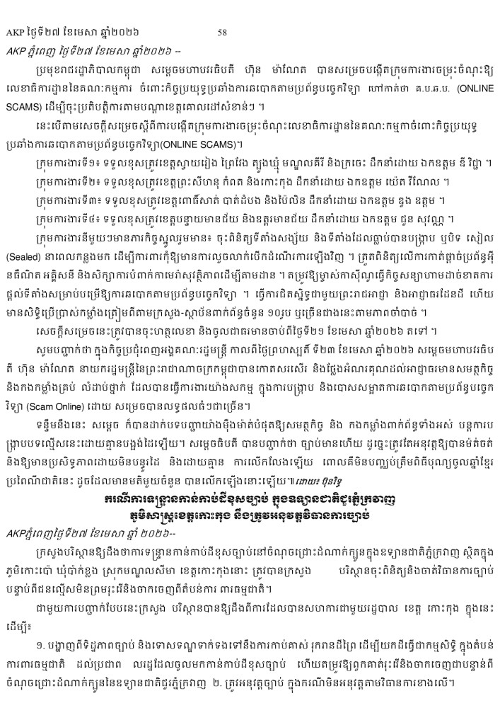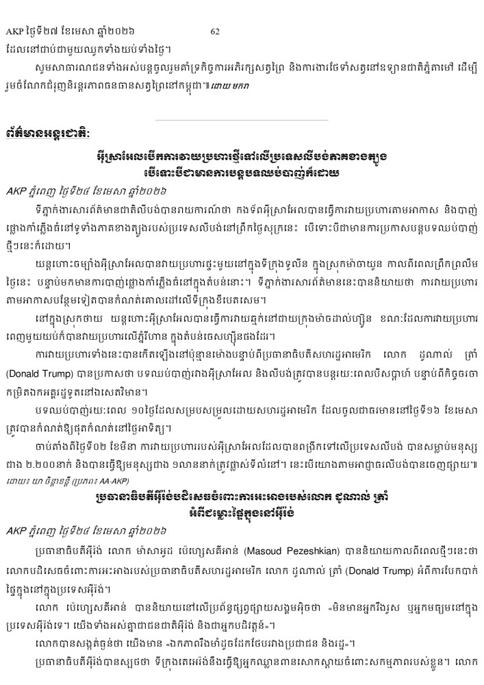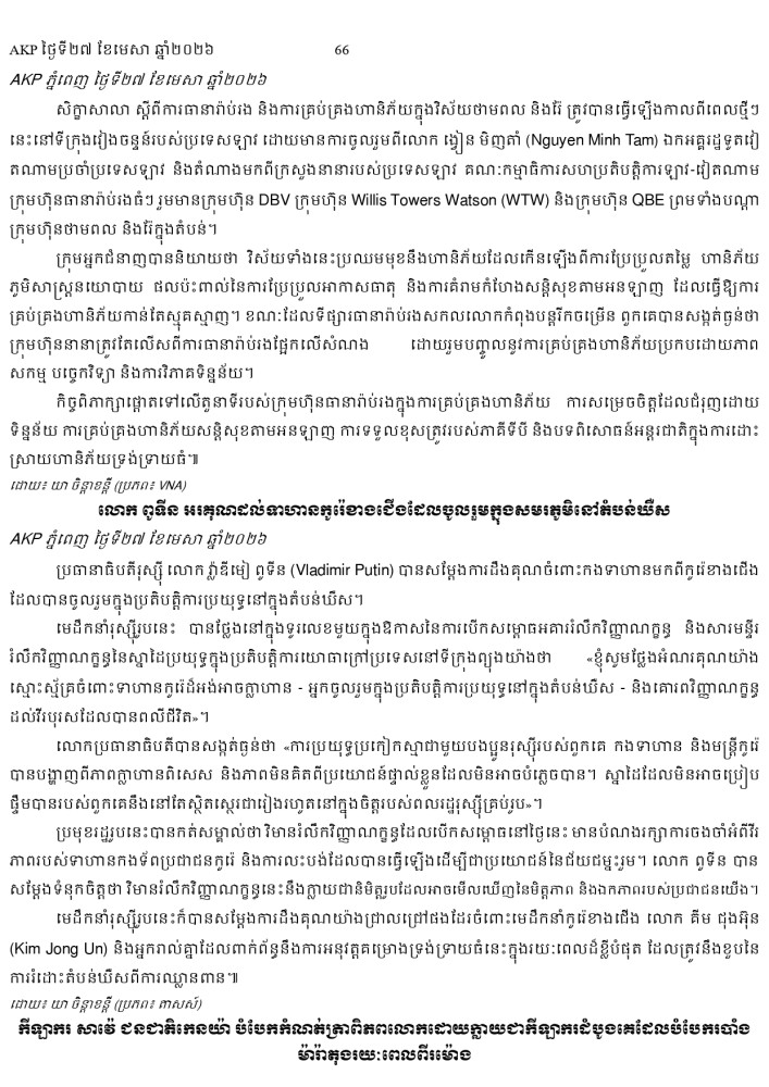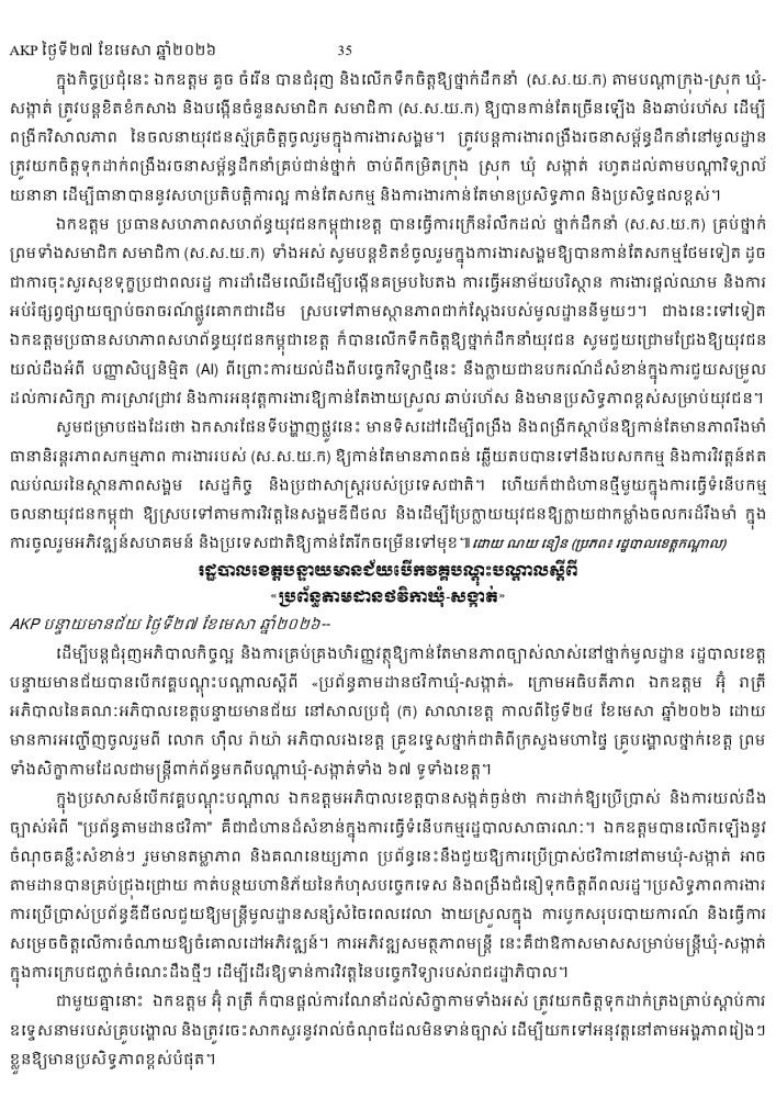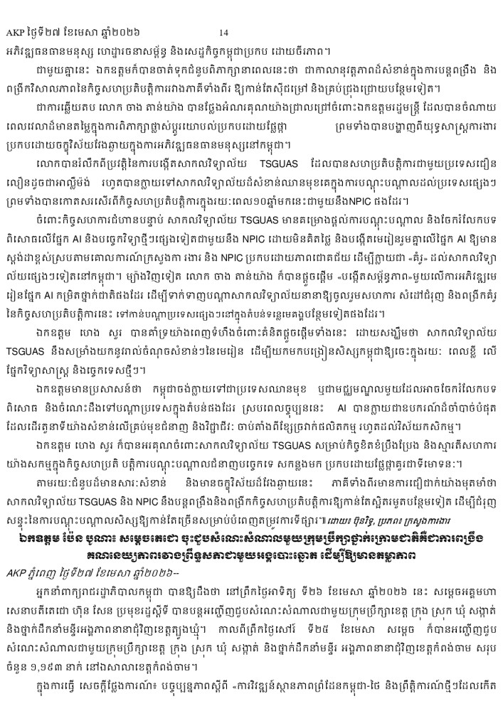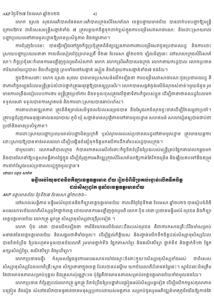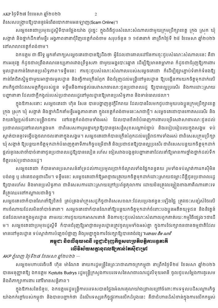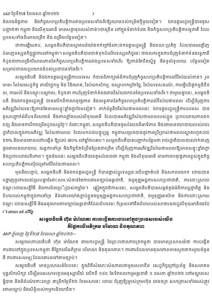 AKP ភ្នំពេញ ថ្ងៃទី២៧ ខែមេសា ឆ្នាំ២០២៦ -