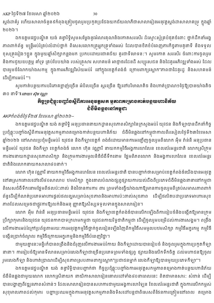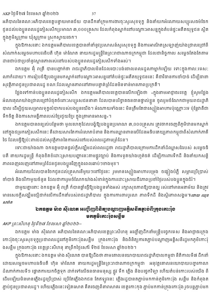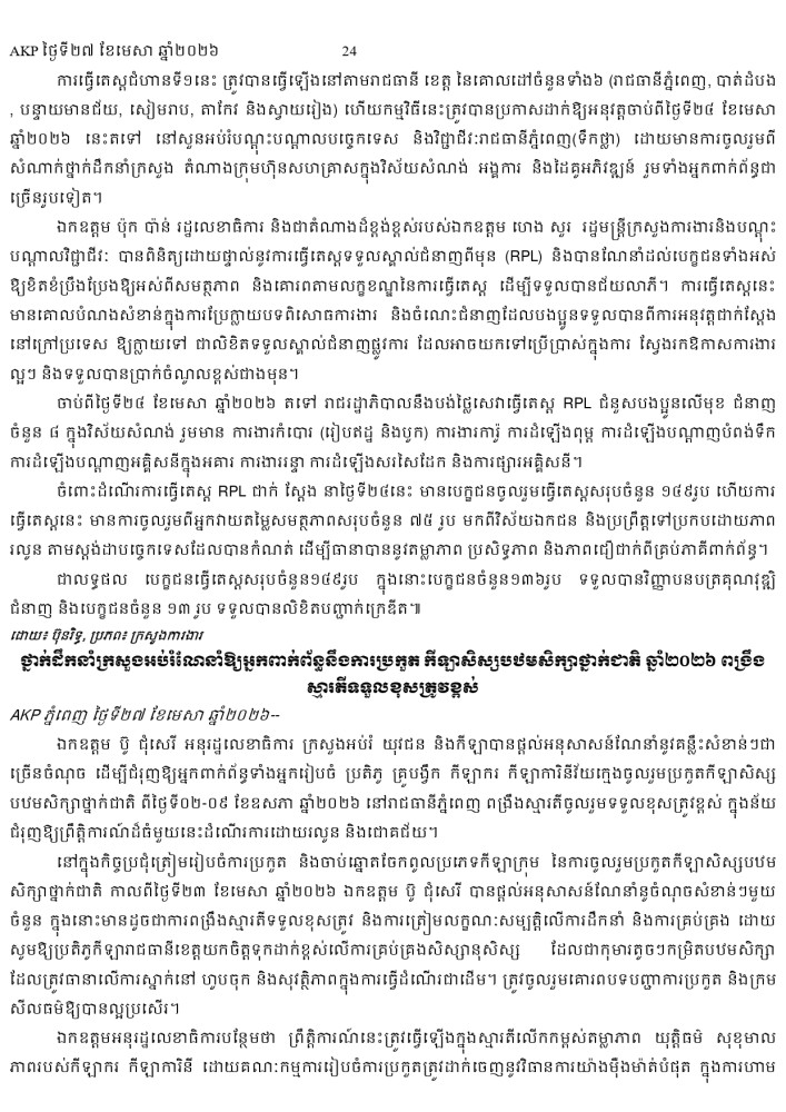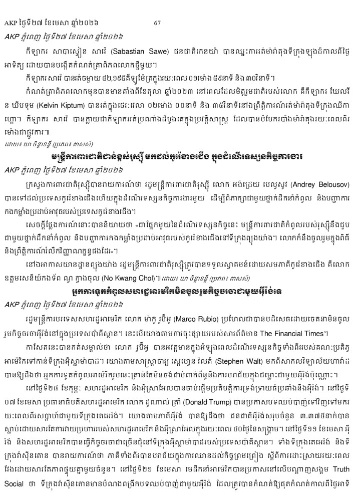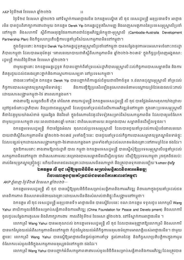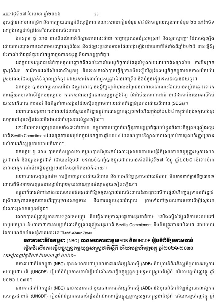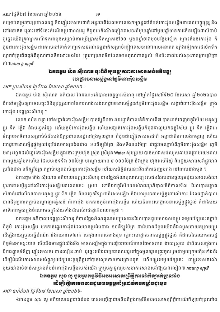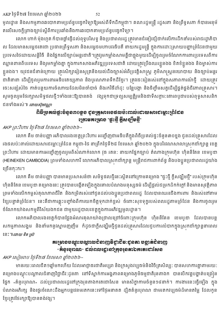 AKP ភ្នំពេញ ថ្ងៃទី២៧ ខែមេសា ឆ្នាំ២០២៦ -
