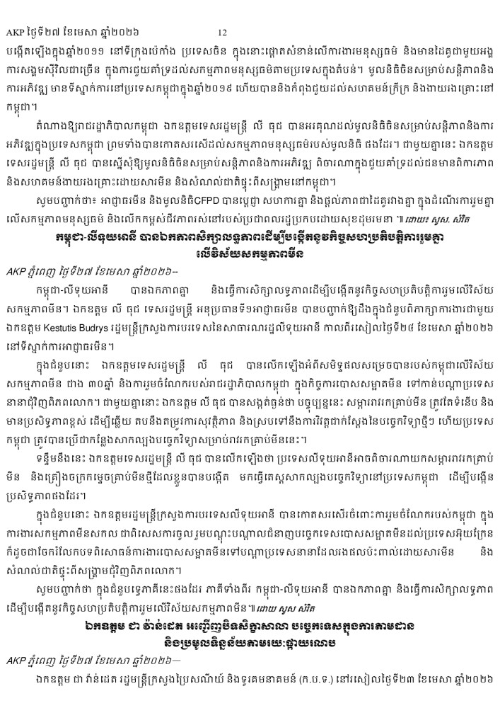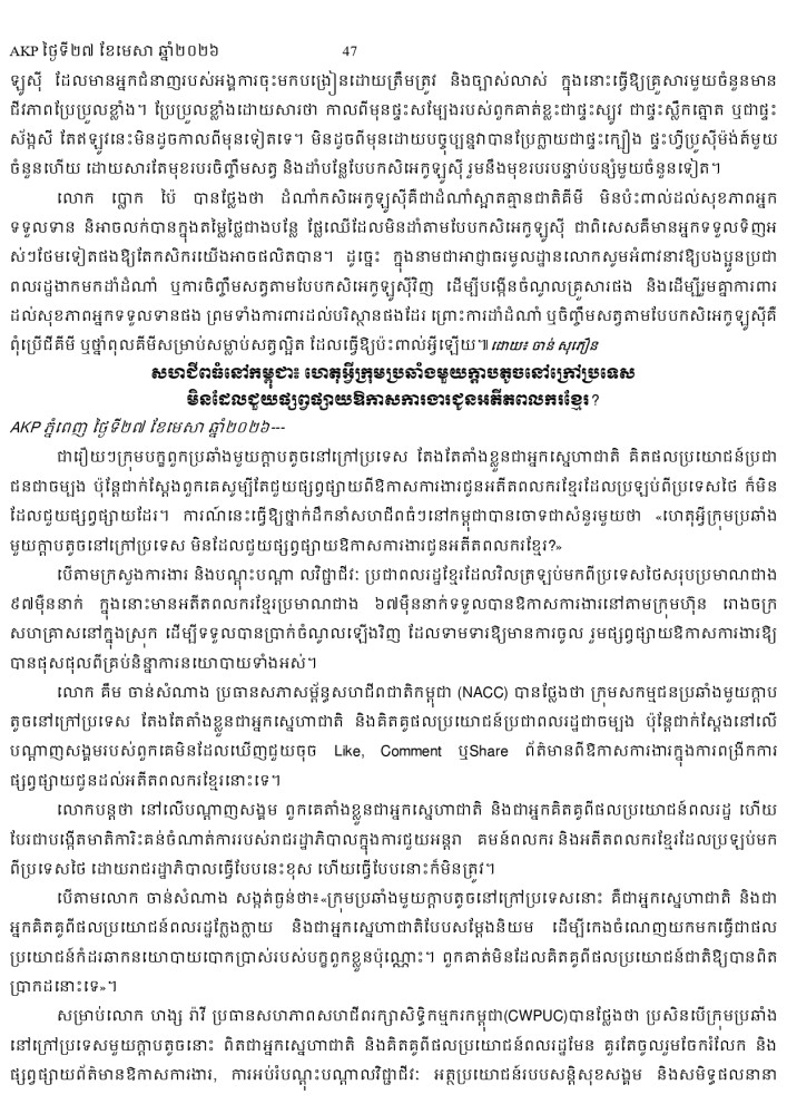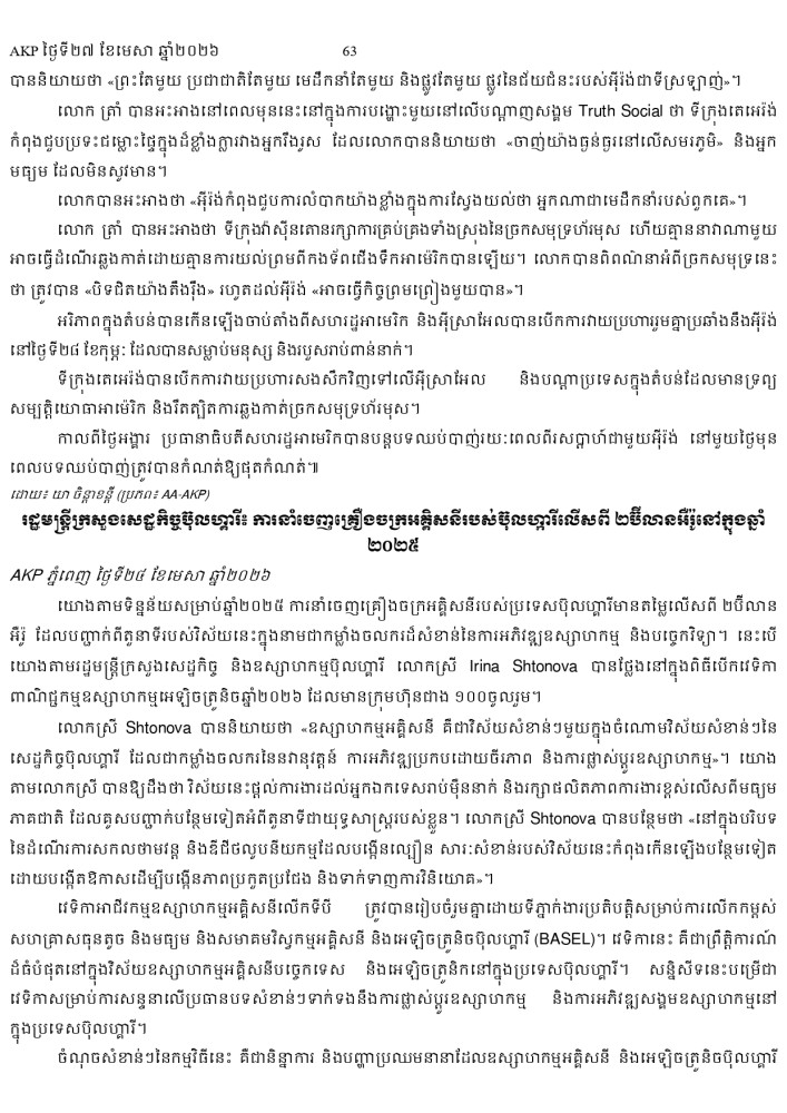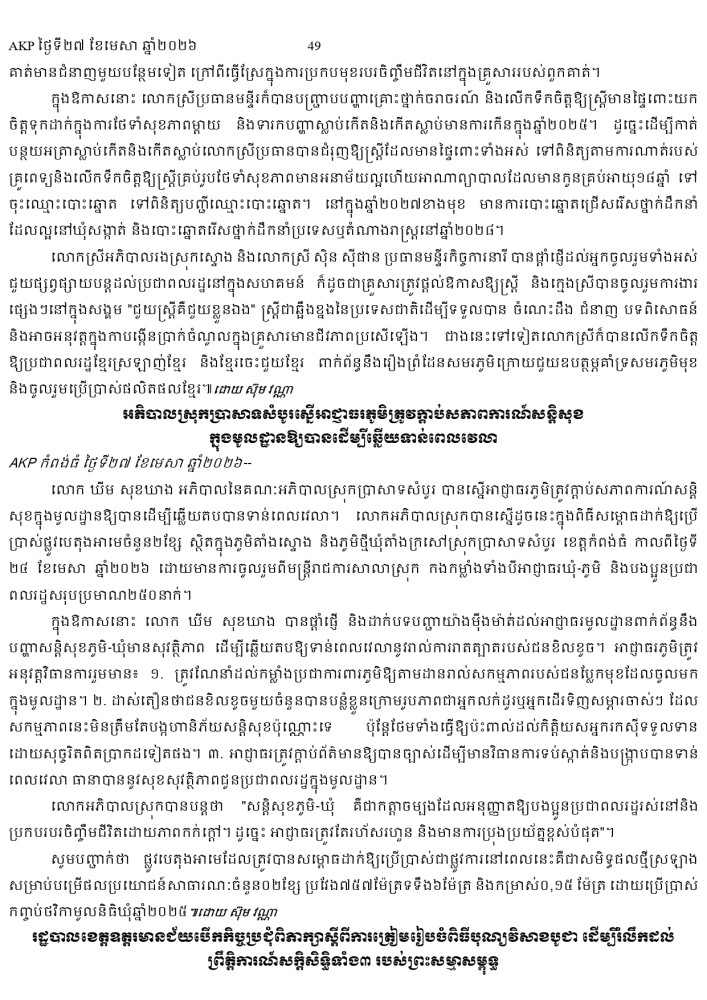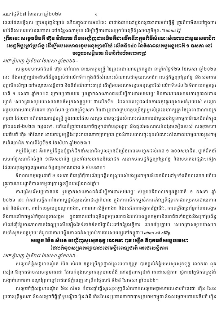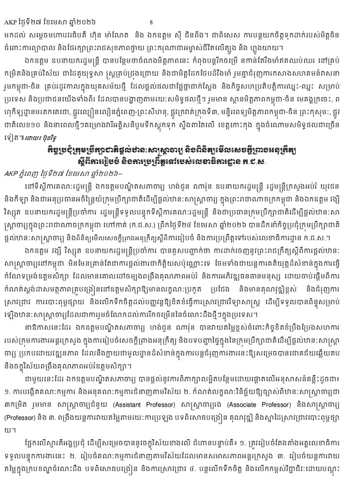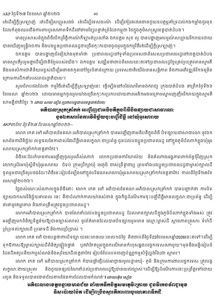 AKP ភ្នំពេញ ថ្ងៃទី២៧ ខែមេសា ឆ្នាំ២០២៦ -
