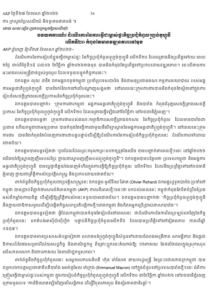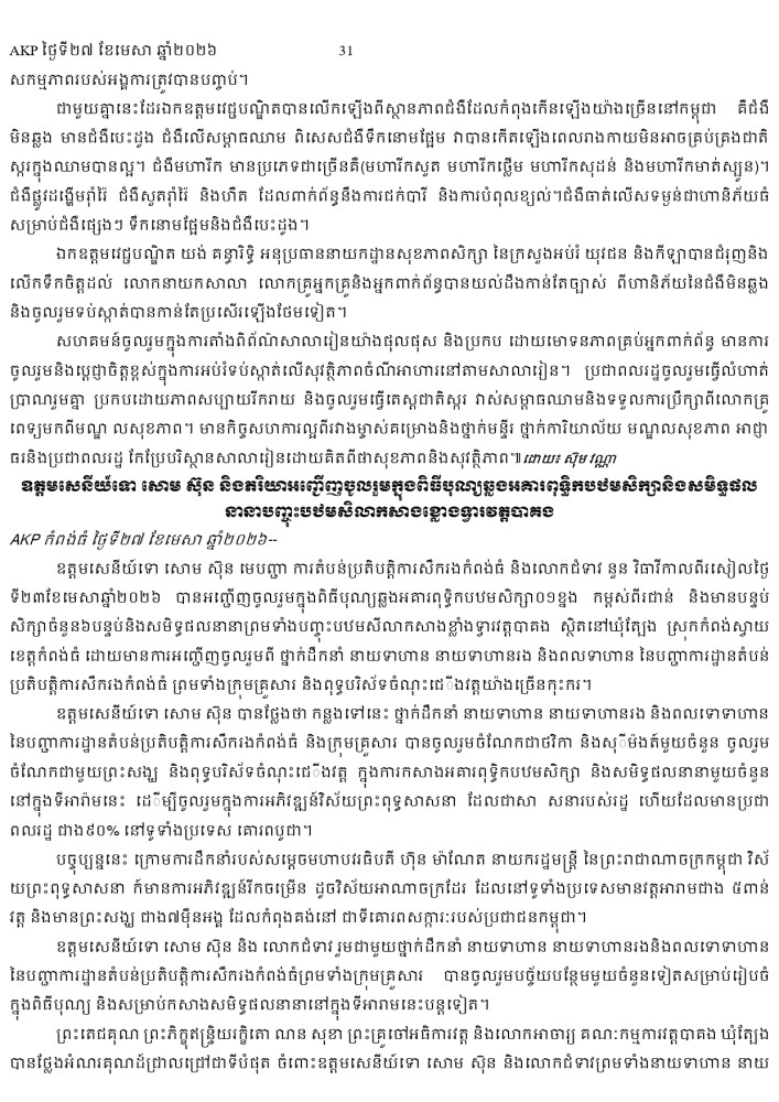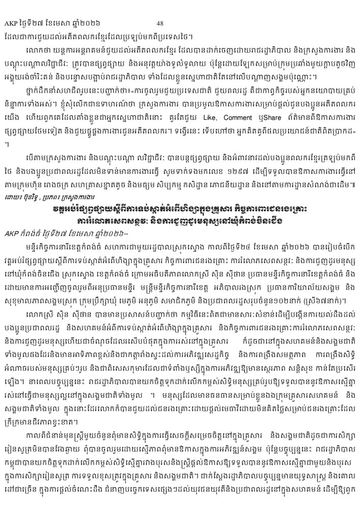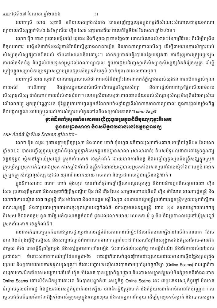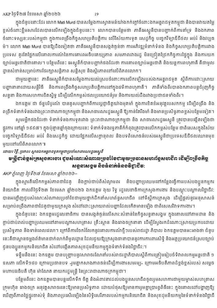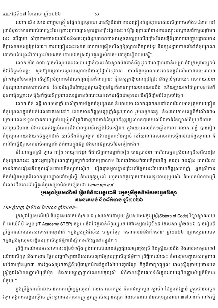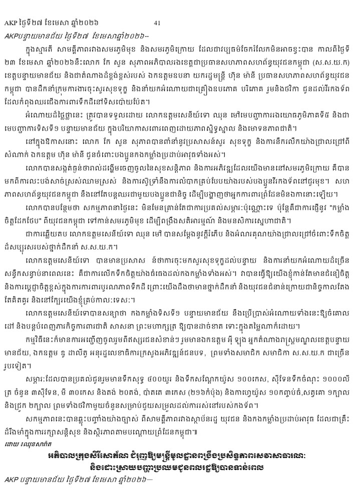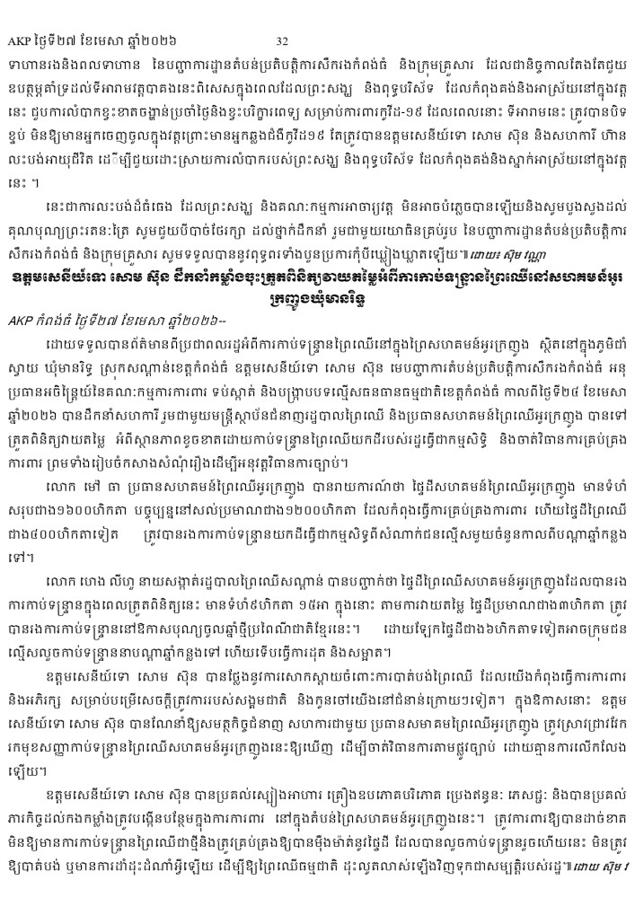 AKP ភ្នំពេញ ថ្ងៃទី២៧ ខែមេសា ឆ្នាំ២០២៦ -