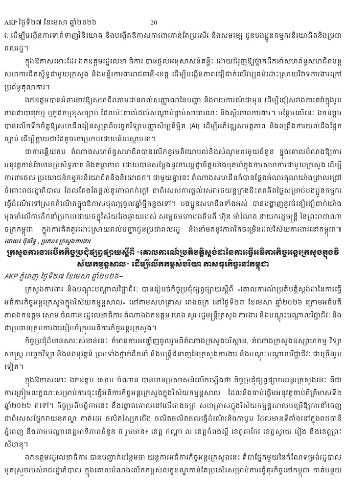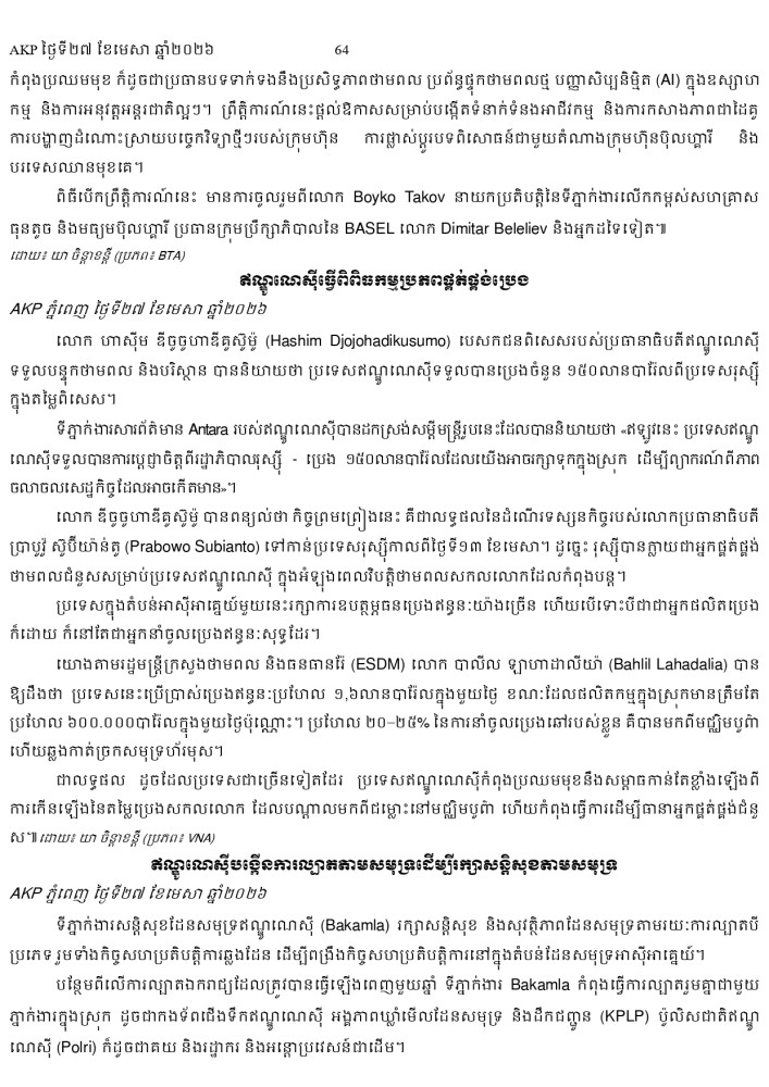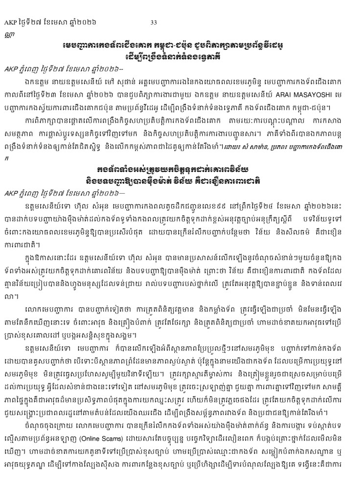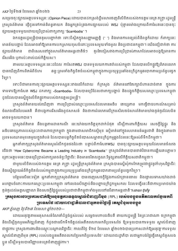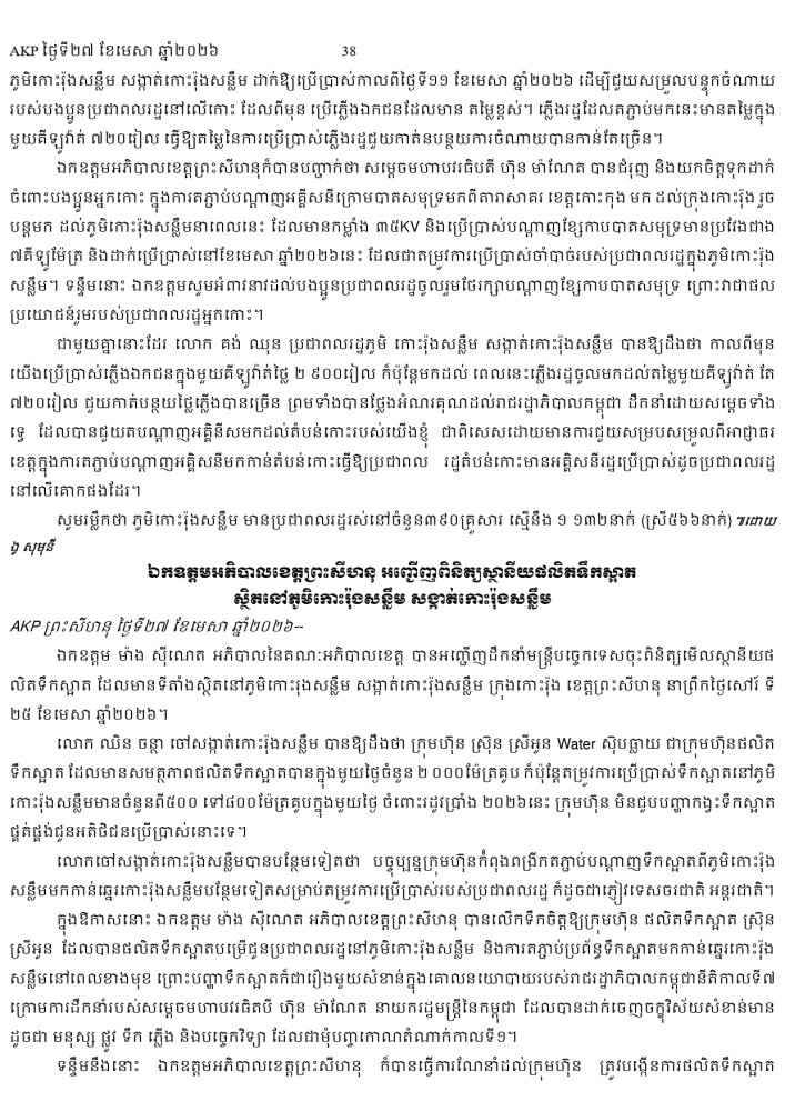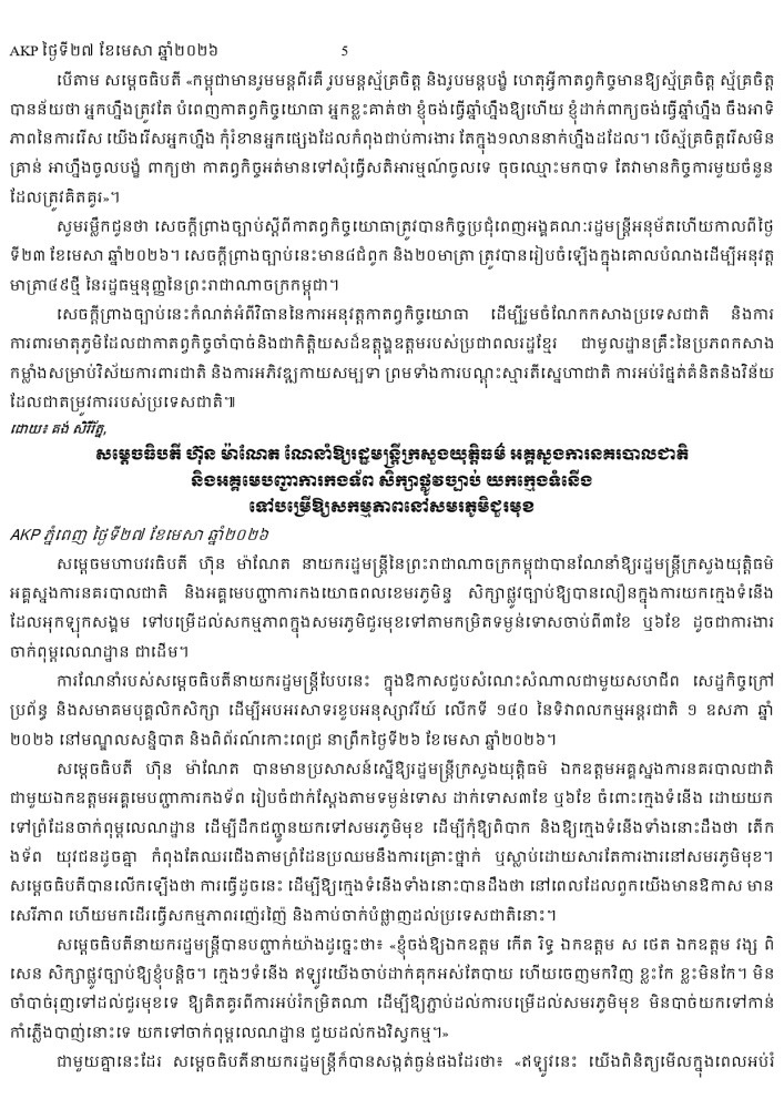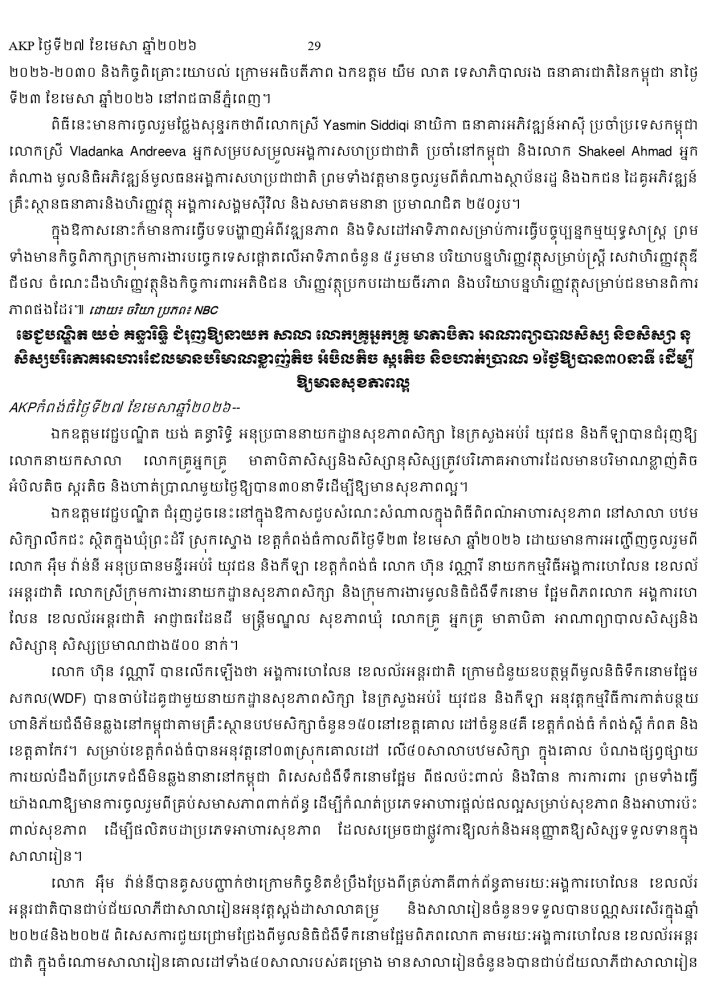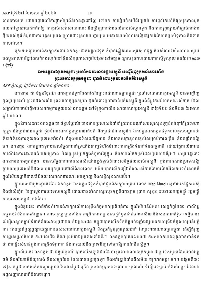 AKP ភ្នំពេញ ថ្ងៃទី២៧ ខែមេសា ឆ្នាំ២០២៦ -