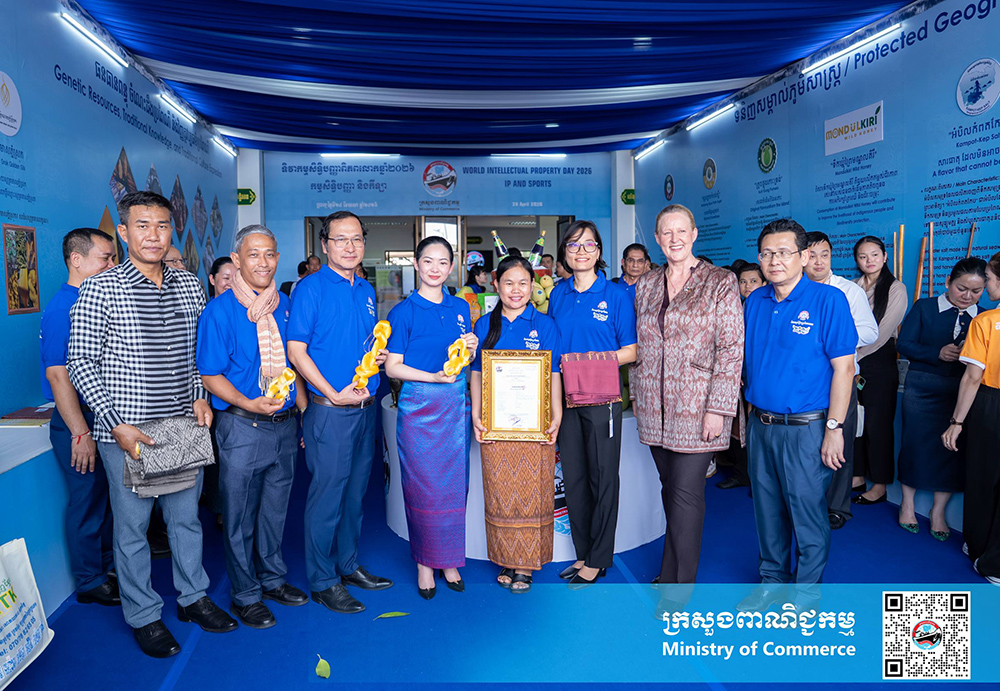 លោកជំទាវ ចម និម្មល រដ្ឋមន្ត្រីក្រសួងពាណិជ្ជកម្ម និងឯកឧត្តម ហែម វណ្ណឌី រដ្ឋមន្ត្រីក្រសួងឧស្សាហកម្ម វិទ្យាសាស្ត្រ បច្ចេកវិទ្យា និងនវានុវត្តន៍ អញ្ជើញជាអធិបតី ពិធីបើកទិវាកម្មសិទ្ធិបញ្ញាពិភពលោក ឆ្នាំ២០២៦ ក្រោមមូលបទ "កម្មសិទ្ធិបញ្ញា និងកីឡា” និងពិធីសម្ពោធគម្រោងកម្មសិទ្ធិបញ្ញា ព្រមទាំងពិធីតាំងពិព័រណ៍ផលិតផល ម៉ាកសម្គាល់ភូមិសាស្រ្តទំនិញ ម៉ាកសមូហភាព និងស្នាដៃចំណេះដឹងប្រពៃណី និងវិញ្ញត្តវប្បធម៌ជាប្រពៃណី នាព្រឹកថ្ងៃទី២៨ ខែមេសា ឆ្នាំ២០២៦ នៅទីស្តីការក្រសួងពាណិជ្ជកម្ម រាជធានីភ្នំពេញ។
