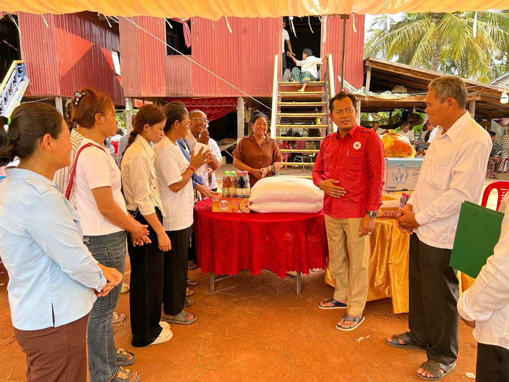 សាខាកាកបាទក្រហមកម្ពុជាខេត្តកំពង់ធំនាំយកអំណោយមនុស្សធម៌ចូលរួមរំលែកទុក្ខដល់គ្រួសារសពដែលរងគ្រោះដោយរន្ទះបាញ់នៅស្រុកសន្ទុក