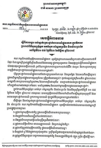 គណៈកម្មាធិការជាតិសុវត្ថិភាពចរាចរណ៍អំពាវនាវដល់បងប្អូនប្រជាពលរដ្ឋ ត្រូវចូលរួមទប់ស្កាត់គ្រោះថ្នាក់ចរាចរណ៍ក្នុងឱកាសព្រះរាជពិធីបុណ្យអុំទូកខាងមុខ