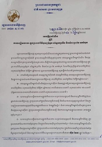 សាលារាជធានីភ្នំពេញ ប្រកាសជូនដំណឹងដល់ប្រជាពលដ្ឋស្ដីពីការបញ្ចៀសចរាចរ ក្នុងឱកាសព្រះរាជពិធីបុណ្យអុំទូកនាពេលខាងមុខ
