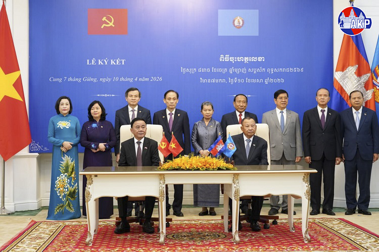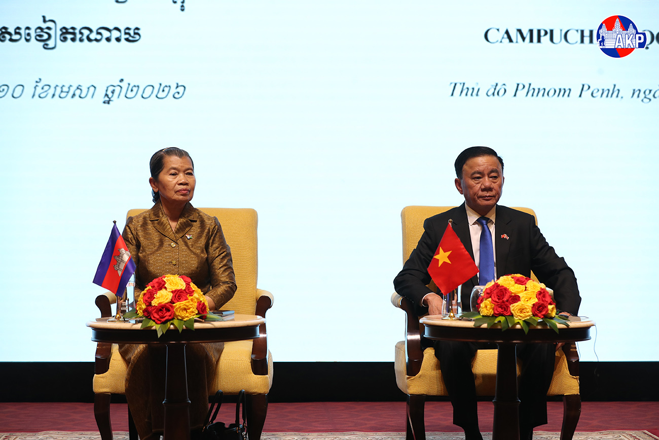 AKP Phnom Penh, April 10, 2026— Samdech Kittisangahapundit Men Sam An (L, Pic. 1), Member of the Supreme Privy Council to His Majesty the King, and H.E. Tran Cam Tu, Member of the Politburo and Permanent Member of the Secretariat of the Communist Party of Vietn...