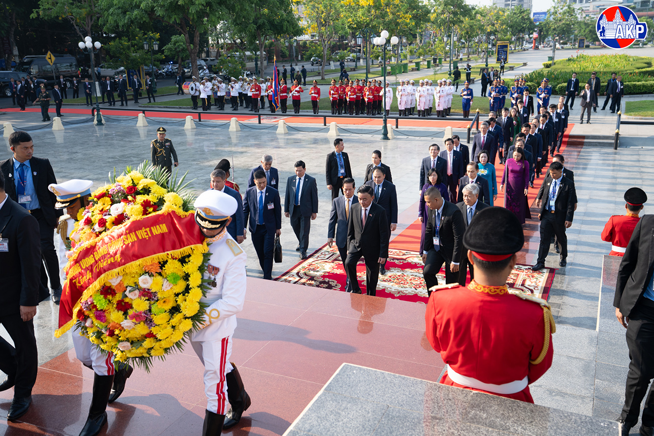 AKP Phnom Penh, April 10, 2026— Visiting H.E. Tran Cam Tu, Member of the Politburo and Permanent Member of the Secretariat of the Communist Party of Vietnam (CPV) Central Committee, lays a wreath at the Independence Monument in Phnom Penh this morning, as part of his two-d...