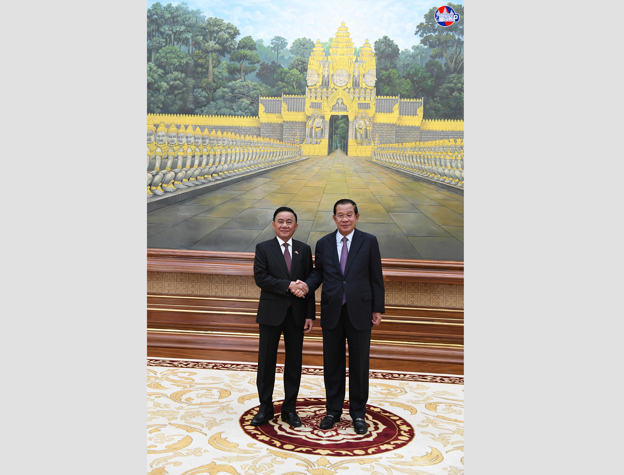AKP Phnom Penh, April 10, 2026— Prime Minister Samdech Moha Borvor Thipadei Hun Manet (R, Pic. 1) shakes hands with Mr. Song Hailiang, Chairman of China Communications Construction Company (CCCC), prior to their meeting at the Peace Palace in Phnom Penh this mo...
