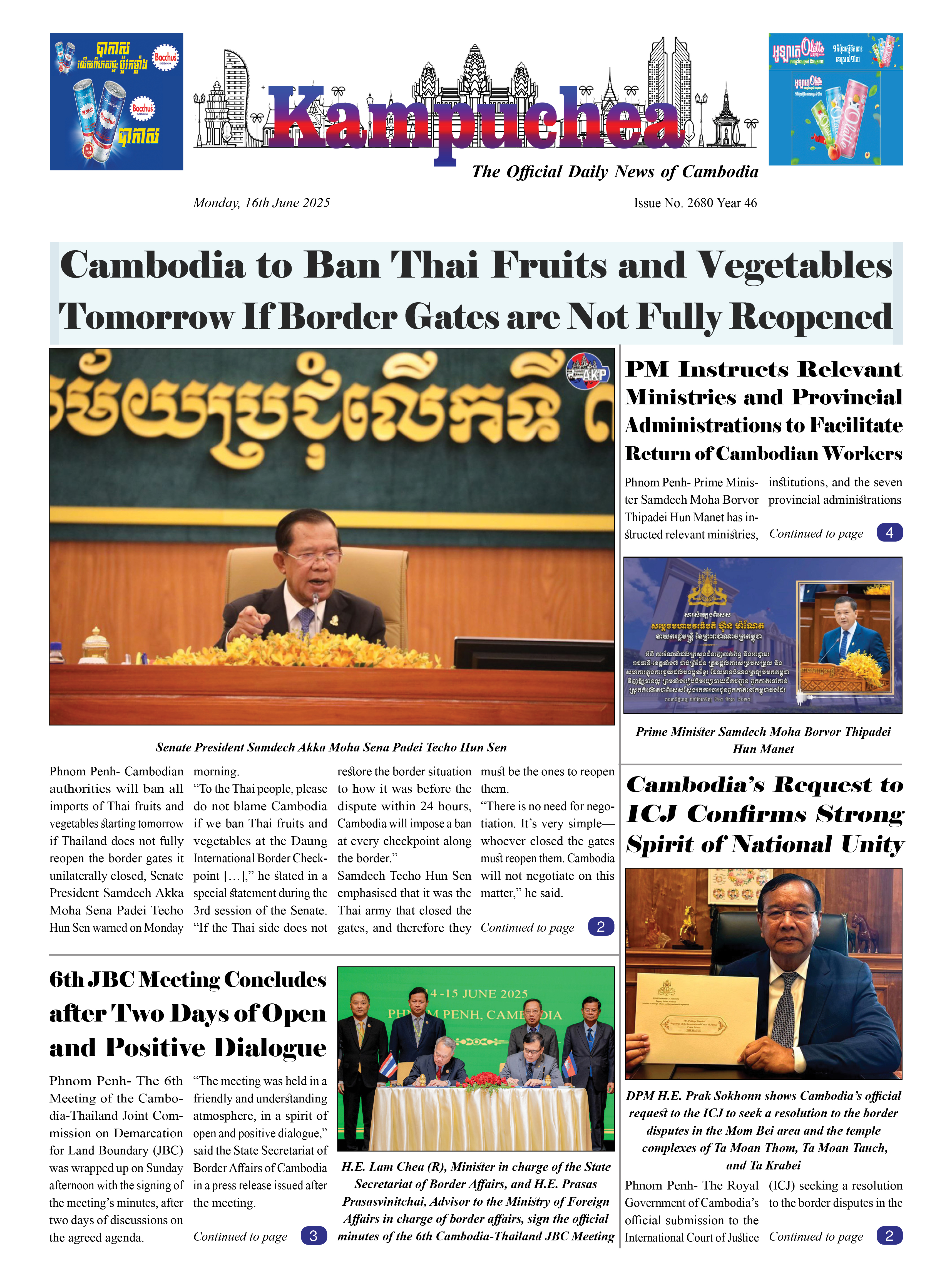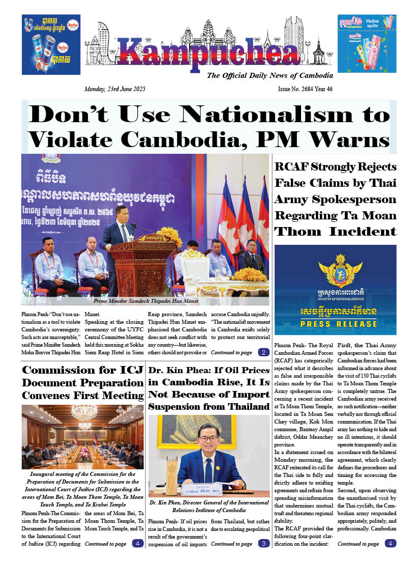 Kampuchea Newspaper on Thursday , June 12, 2025