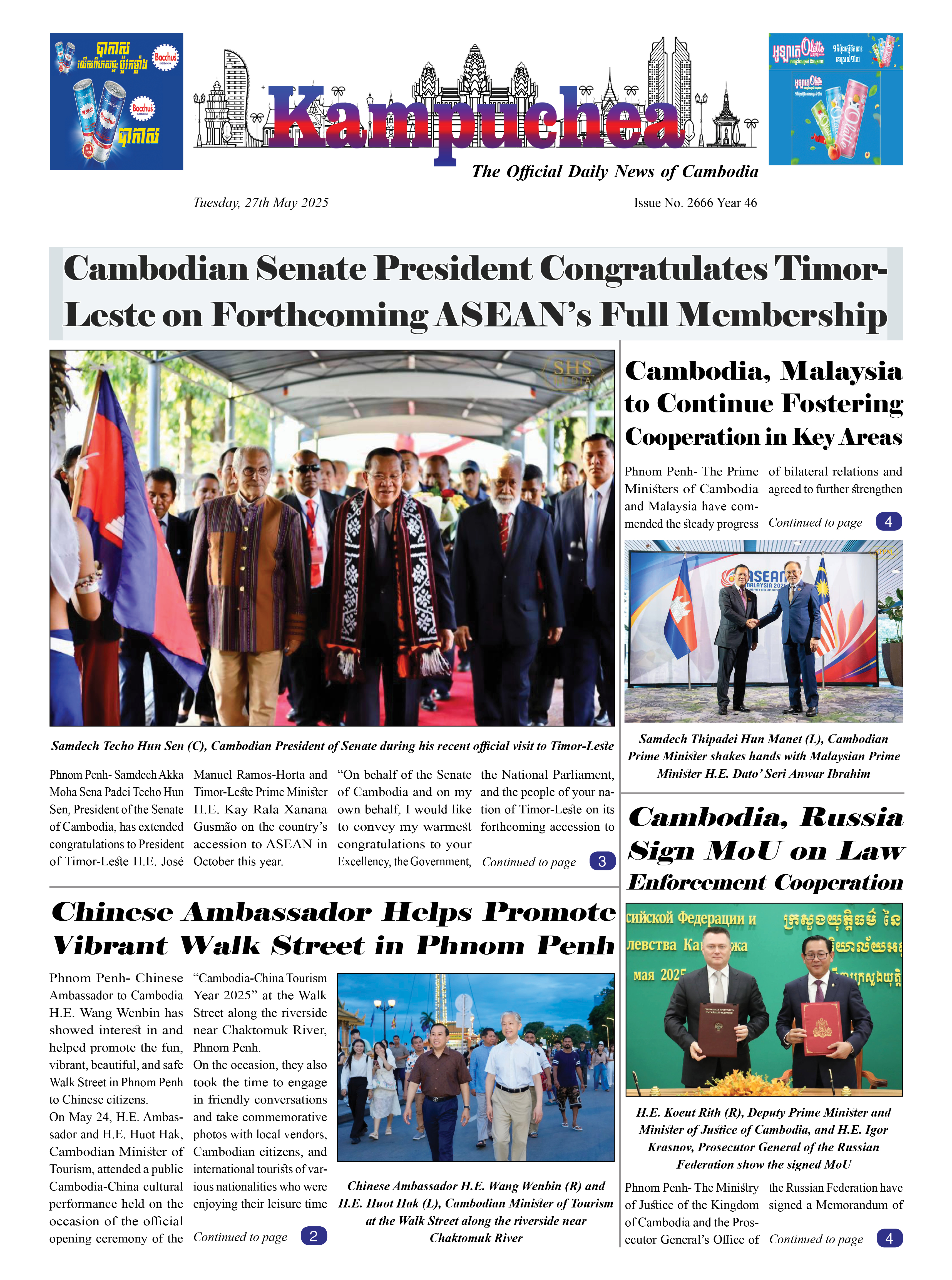 Kampuchea Newspaper on Tuesday, May 27, 2025