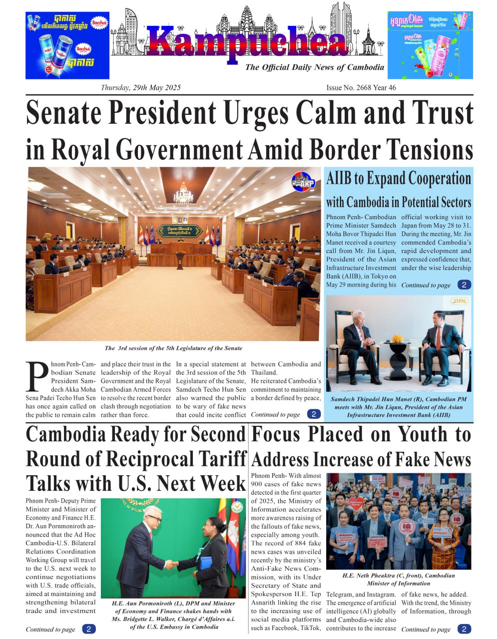 Kampuchea Newspaper on Thursday, May 29, 2025