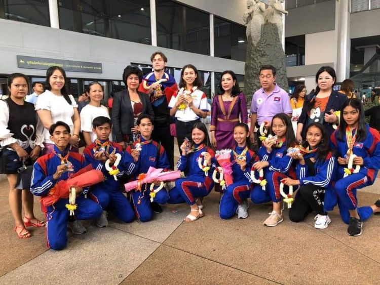 The arrival of Cambodian team was welcomed recently at Phnom Penh International Airport by H.E. Mrs. Nhem Morokot, Under Secretary of State at the Ministry of Women Affairs and President of Cambodia Dance Sport Federation (CDSF) and H.E. Ms. Chhay Chanrithy Solida, Secretary of State at the Ministry of Information and Honorary Vice President of CDSF.