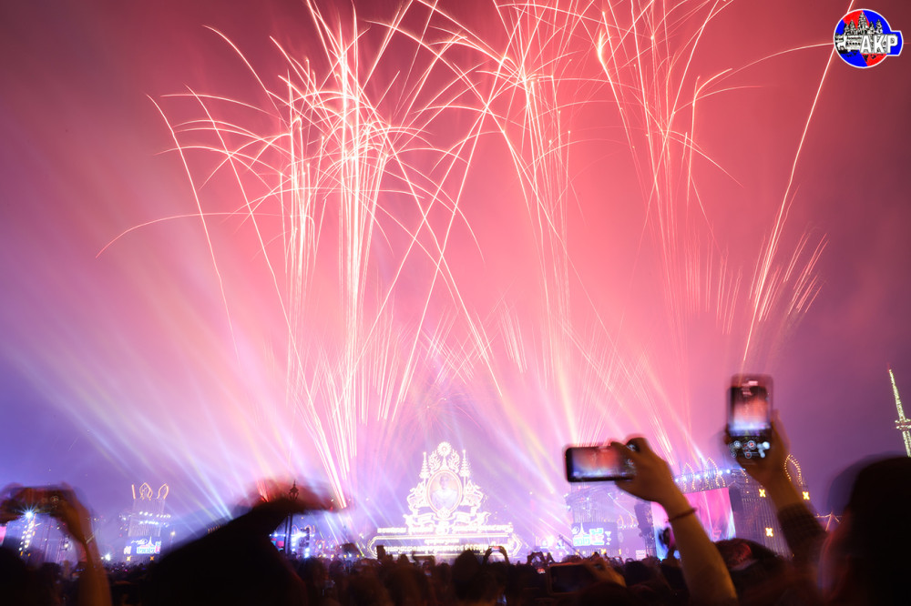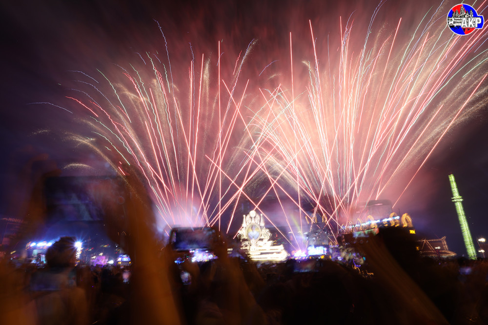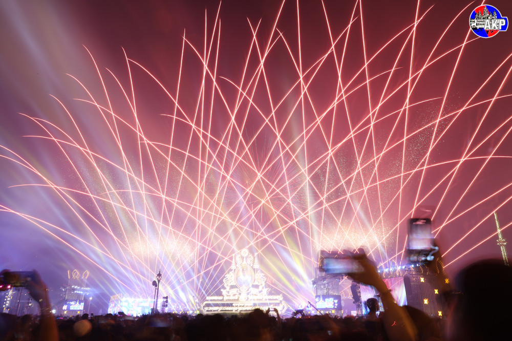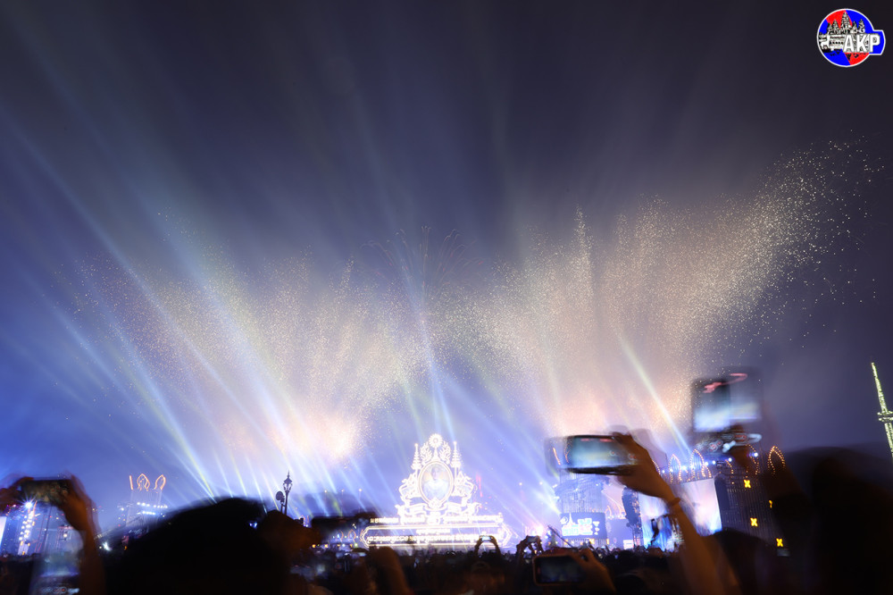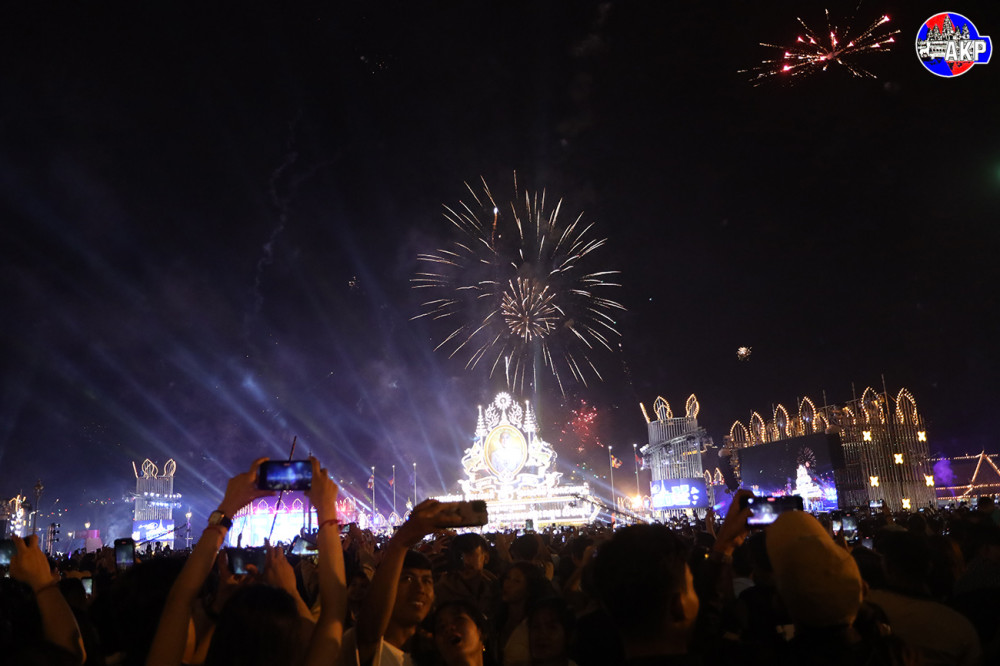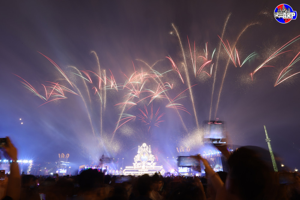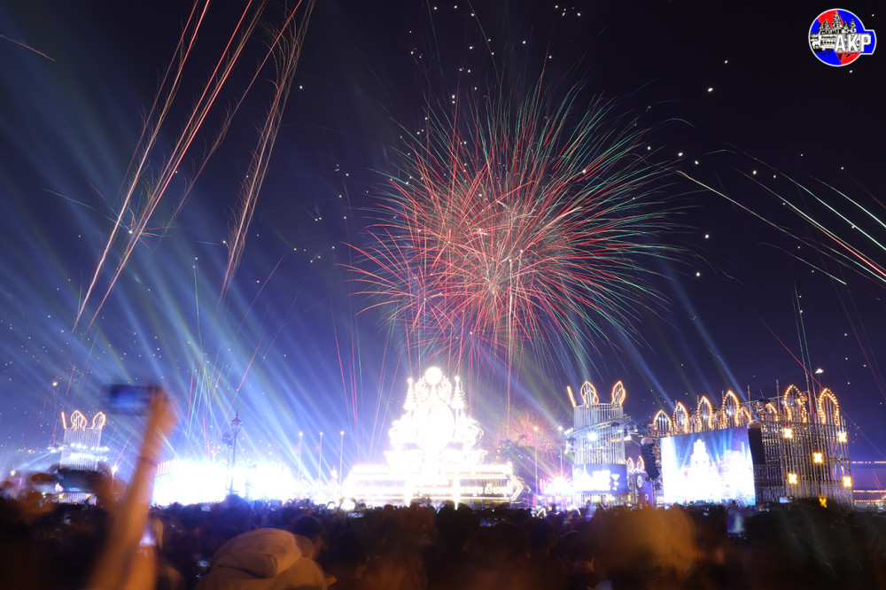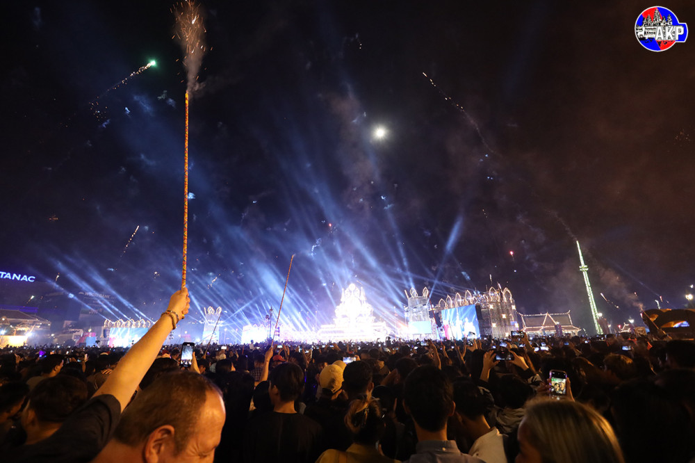 Crowds of national and international tourists as well as local residents enjoy the New Year countdown 2025 during the “Celebrating Cambodia” event in front of the Royal Palace, Phnom Penh.