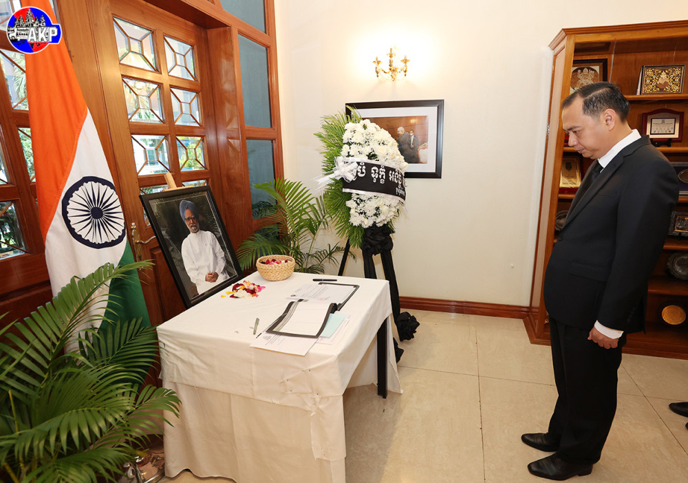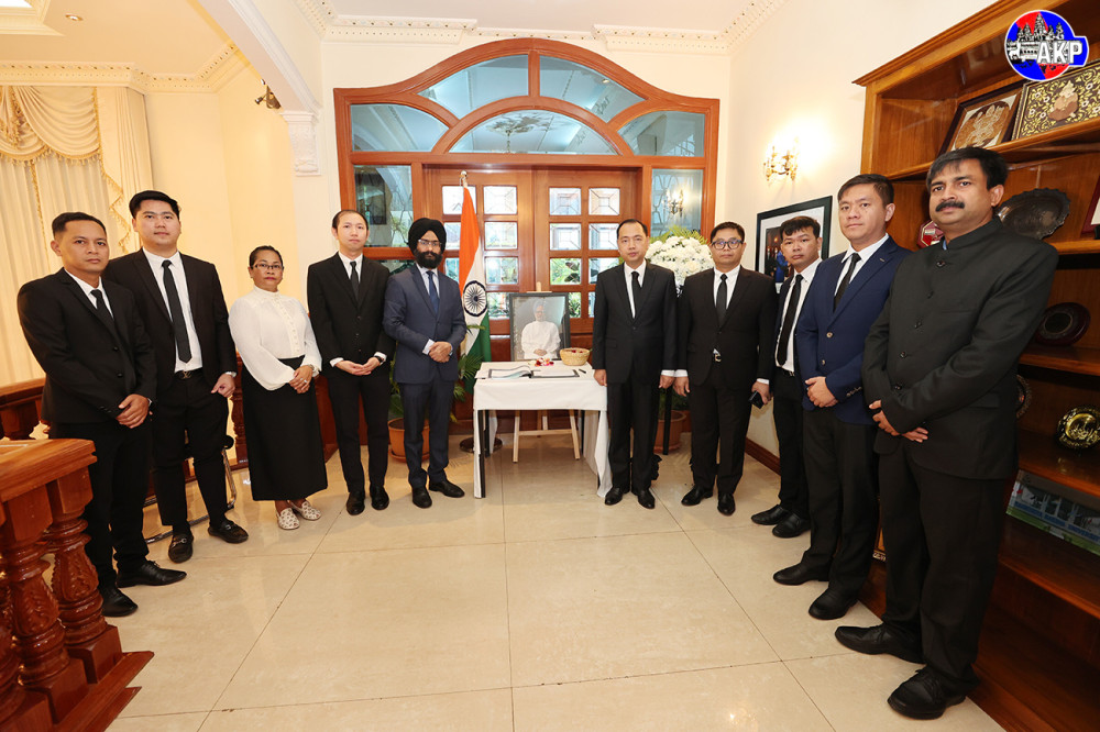 A delegation of the Ministry of Information of Cambodia, led by its Minister H.E. Neth Pheaktra (Pic. 1), lays a wreath and pays last tribute to late H.E. Dr. Manmohan Singh, former Prime Minister of the Republic of India, who passed away on Dec. 26, at the Embassy of the Republic of India in Phnom Penh this morning.