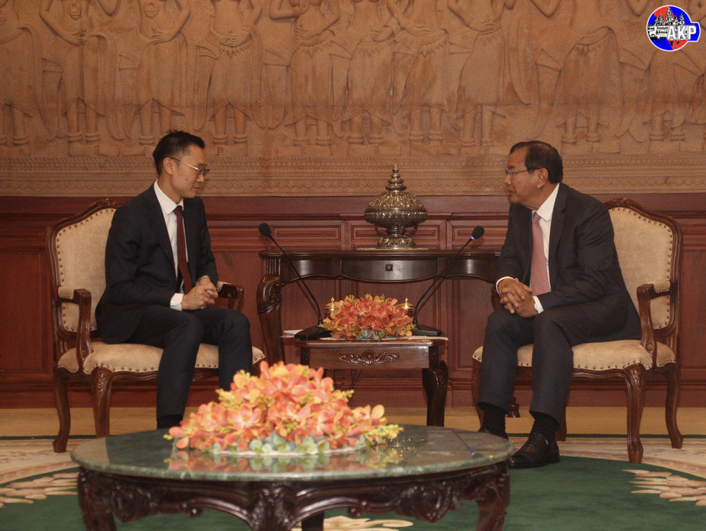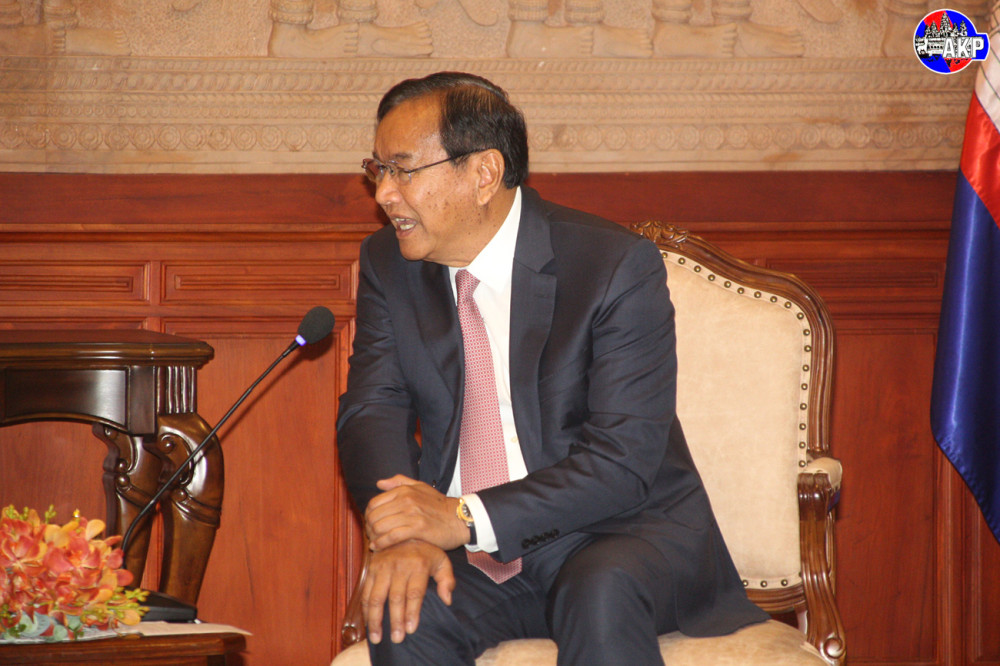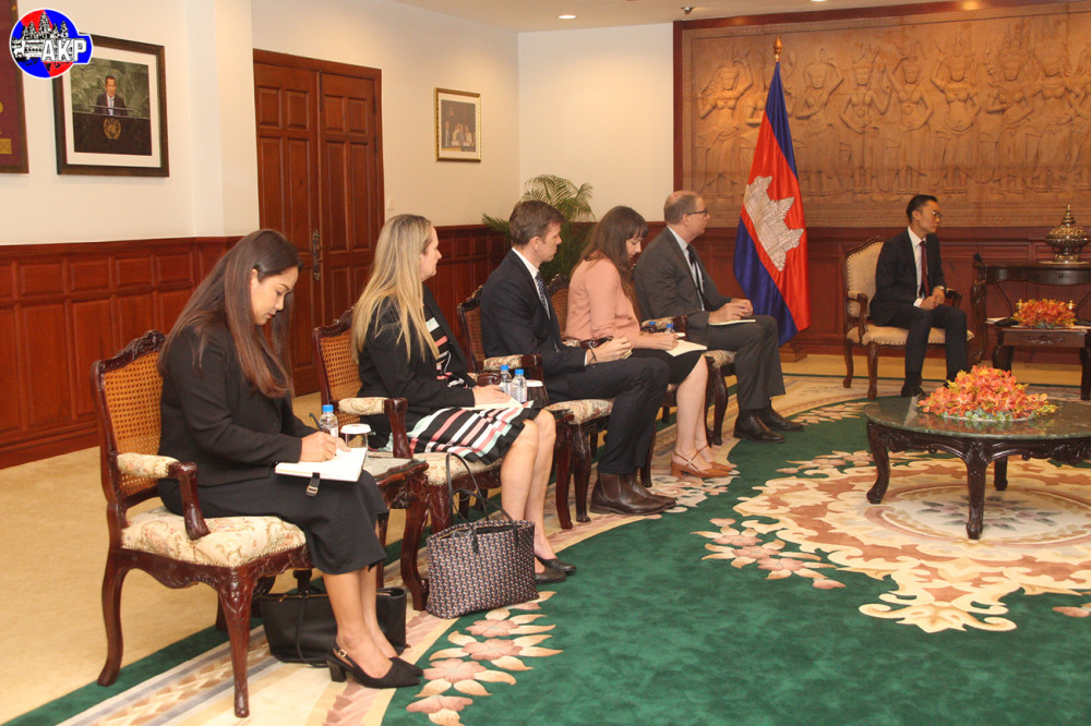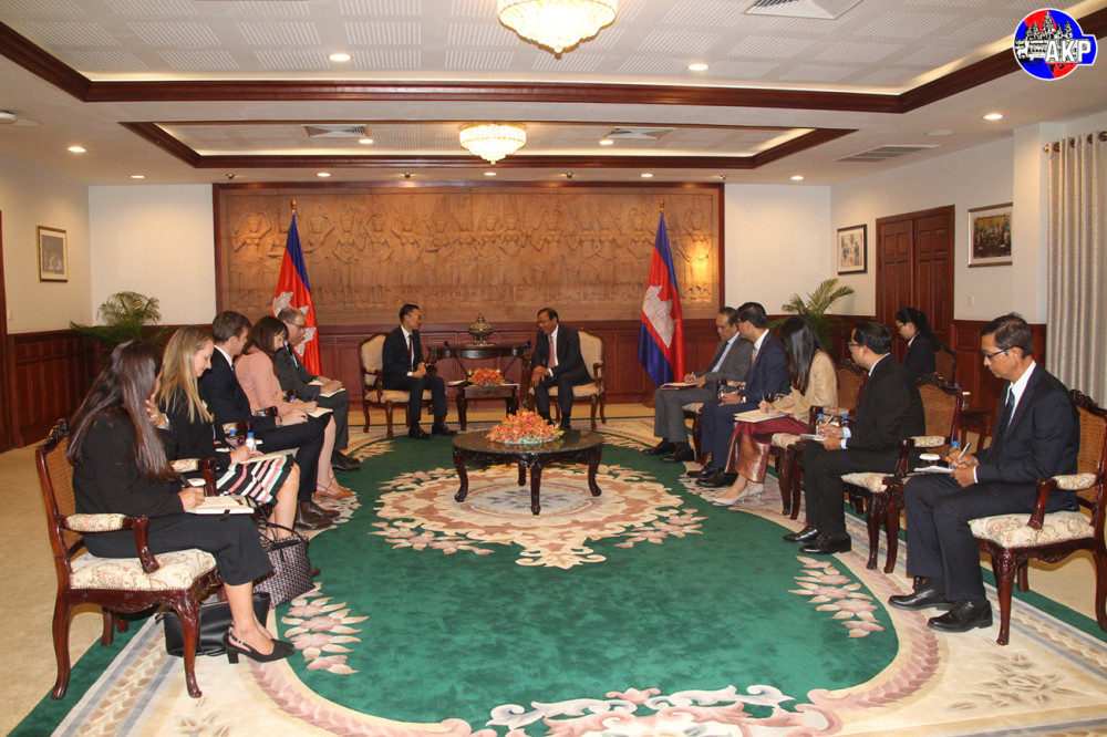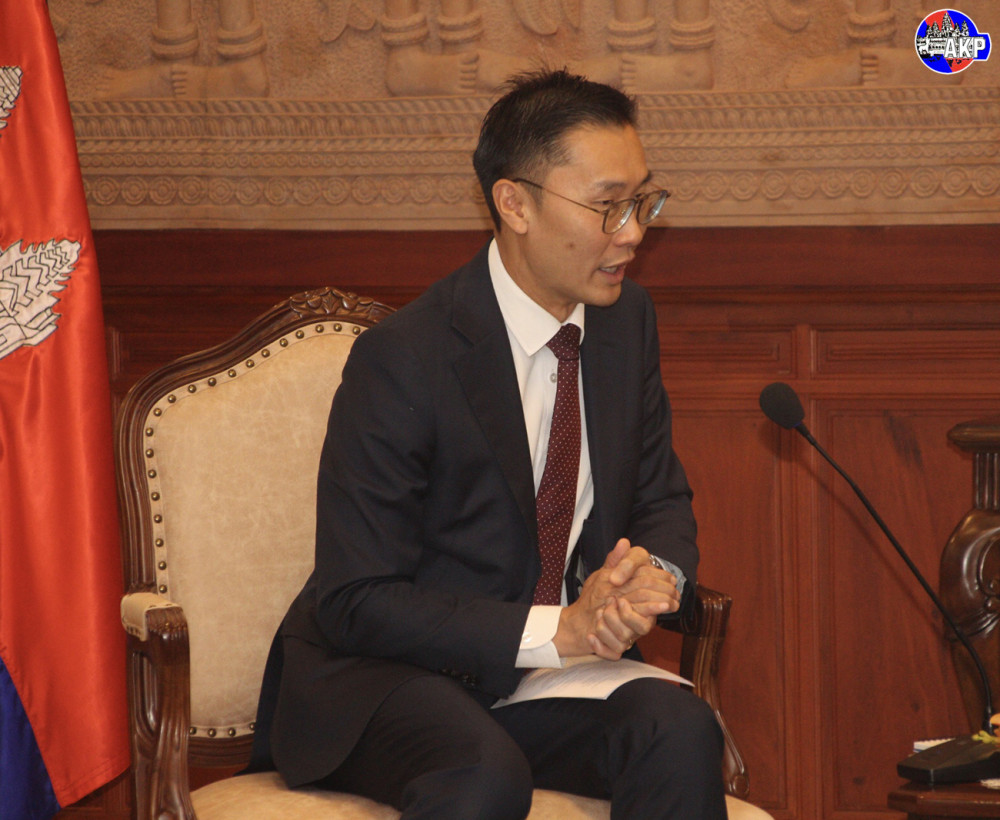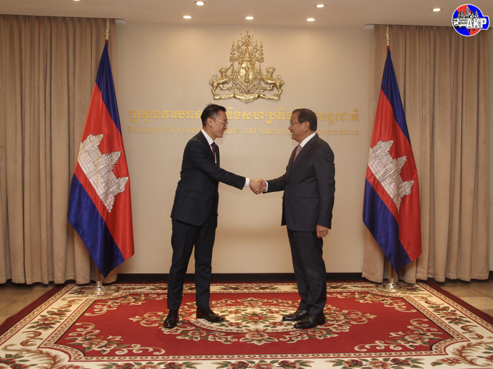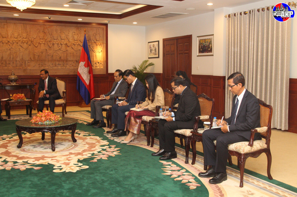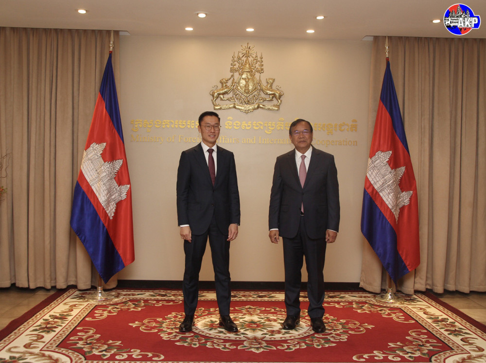 H.E. Prak Sokhonn (R, Pic. 1), Deputy Prime Minister and Minister of Foreign Affairs and International Cooperation of Cambodia, shakes hands with H.E. Derek Yip, Ambassador of Australia to the Kingdom of Cambodia, prior to their meeting at the ministry’s office here this morning.