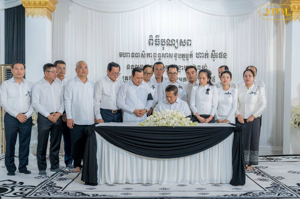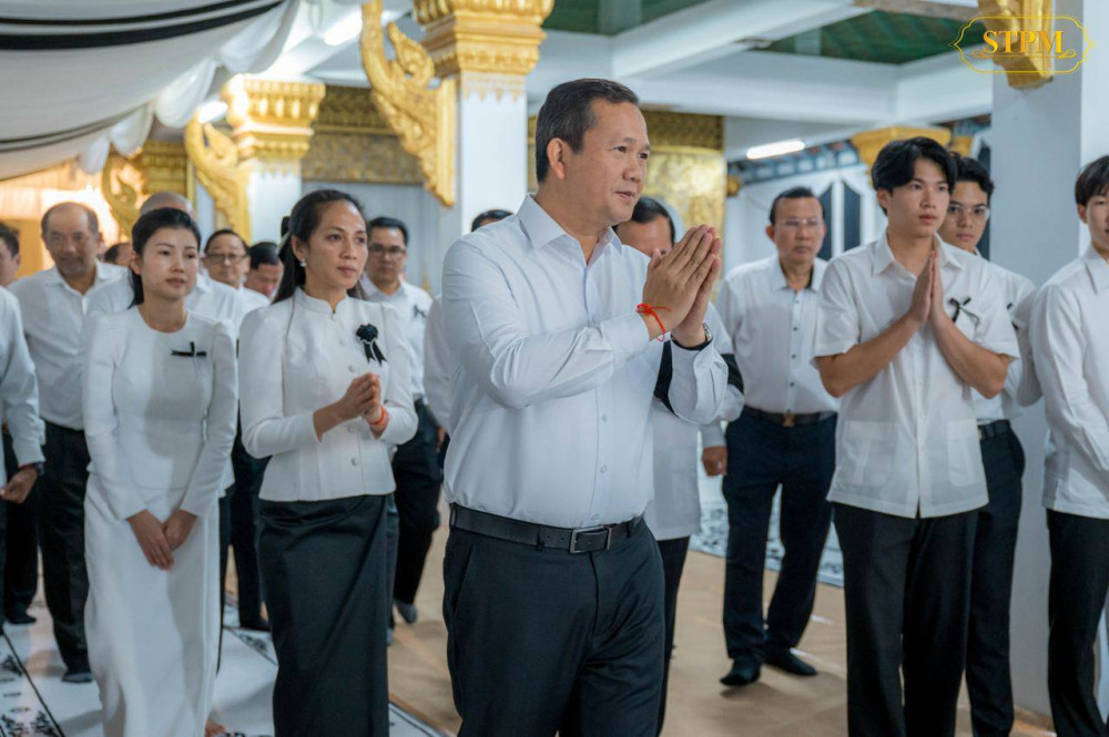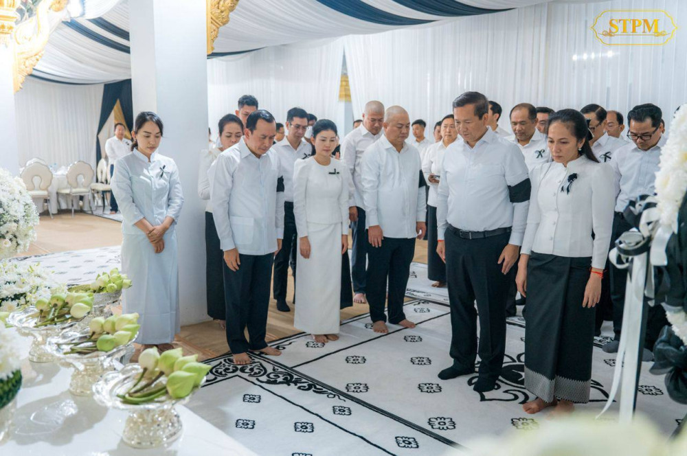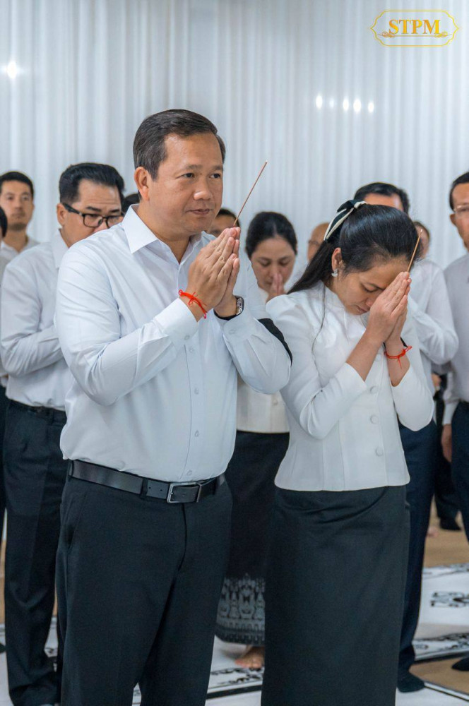 Prime Minister Samdech Moha Borvor Thipadei Hun Manet and First Lady Lok Chumteav Dr. Pich Chanmony pay their last respects to late Mrs. Hak Siphen, the mother-in-law of H.E. Huot Hak, Minister of Tourism, in Phnom Penh this afternoon.