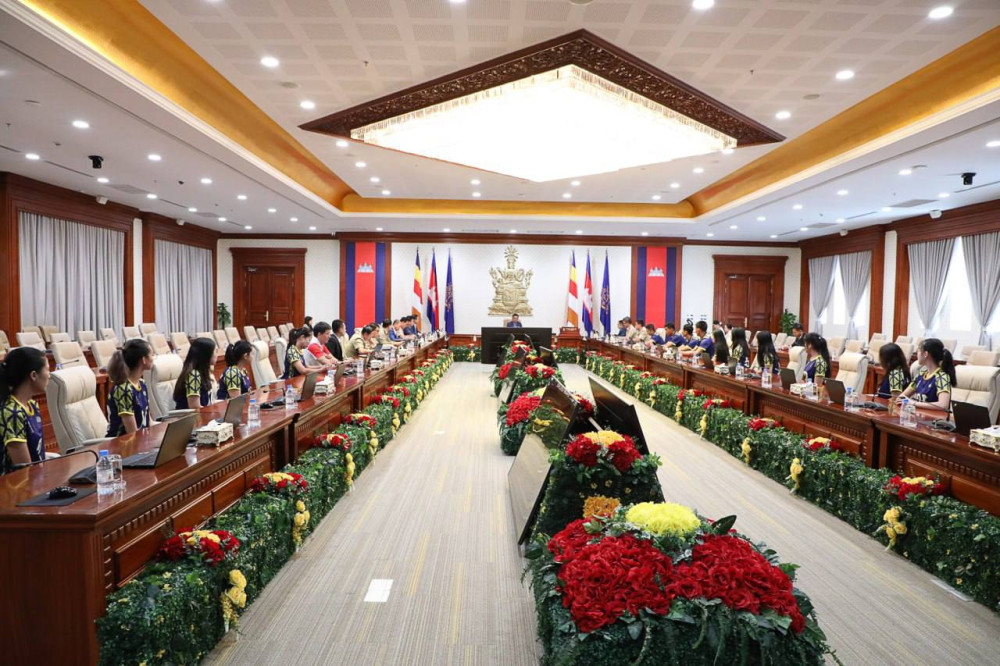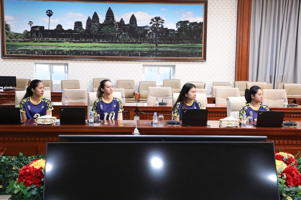 H.E. Aphi Santepundit Sar Sokha (Pic. 1), Deputy Prime Minister and Minister of Interior, meets here at the ministry this morning with delegates, volleyball coaches, assistant coaches and athletes of the Ministry of Interior.