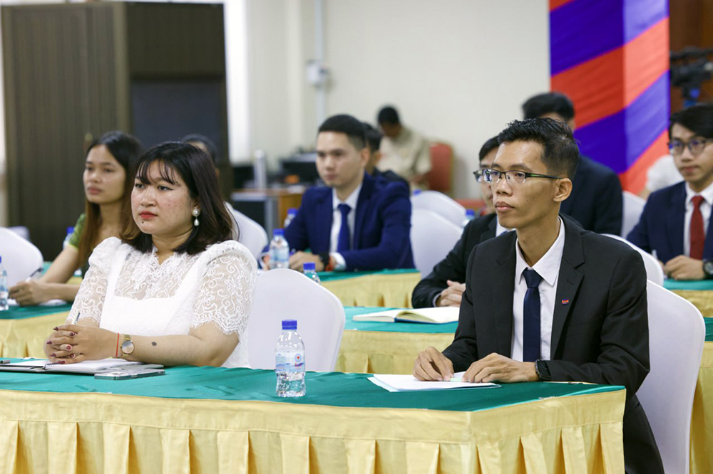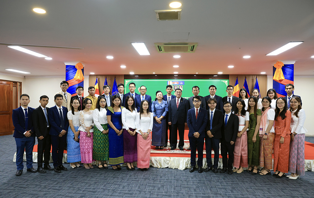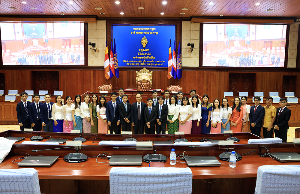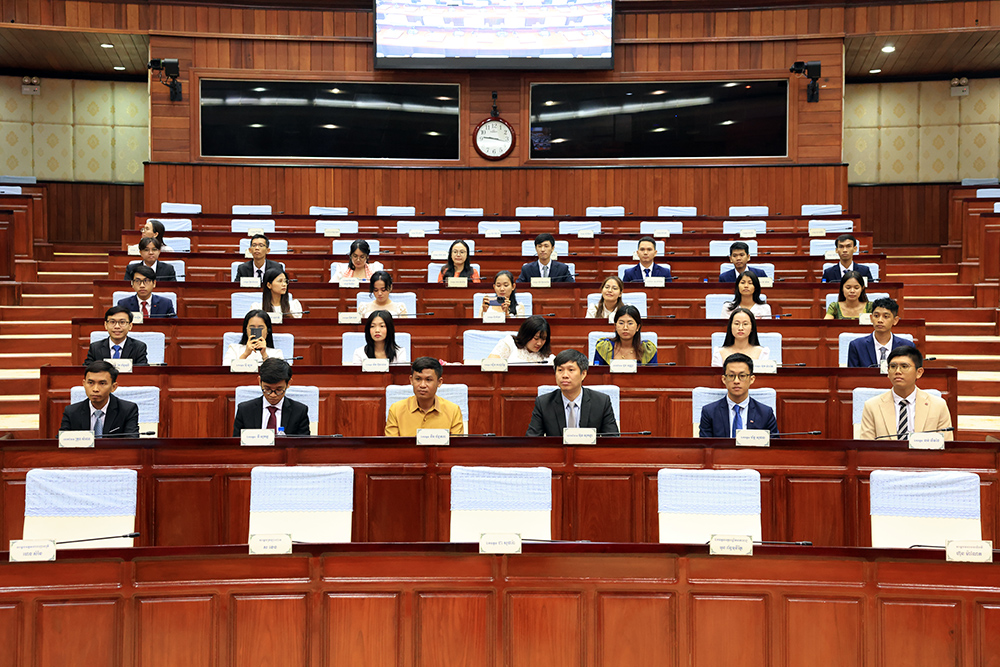 H.E. Kitti Setha Pundit Cheam Yeap (Pic. 1), First Vice President of the National Assembly of the Kingdom of Cambodia, receives a courtesy call from 37 Cambodian students who won Manaaki New Zealand Scholarships (MNZS), prior to their departure to pursue their respective studies in New Zealand at the National Assembly Palace here this morning.