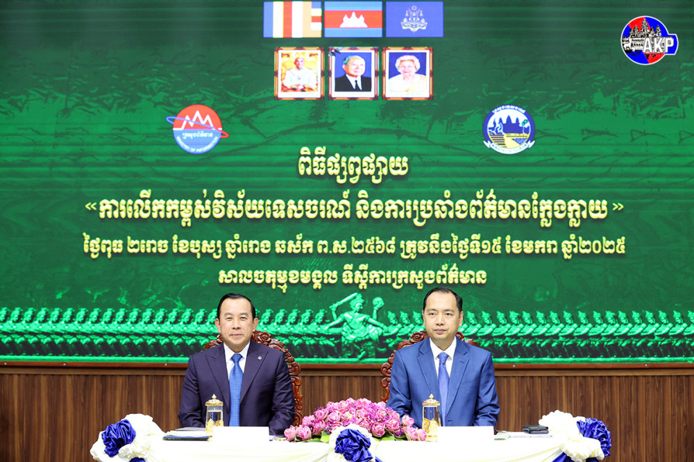 The Ministry of Information and the Ministry of Tourism jointly organise a dissemination on “Tourism Promotion and Anti-Fake News” at the Ministry of Information’s meeting hall here this morning under the auspices of Information Minister H.E. Neth Pheaktra (R, Pic. 1) and Tourism Minister H.E. Huot Hak.